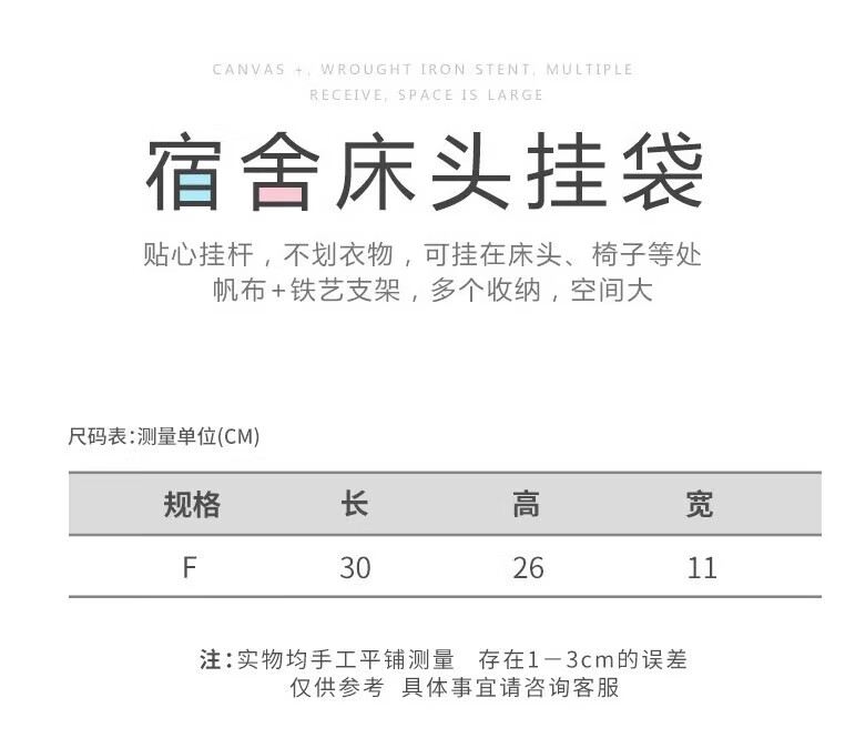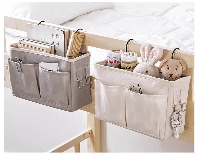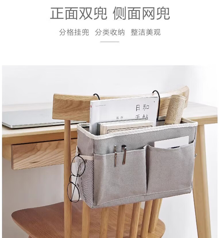 床头置物架宿舍上铺收纳神器大学生床上手机挂袋寝室床边布艺挂袋 灰色