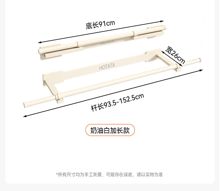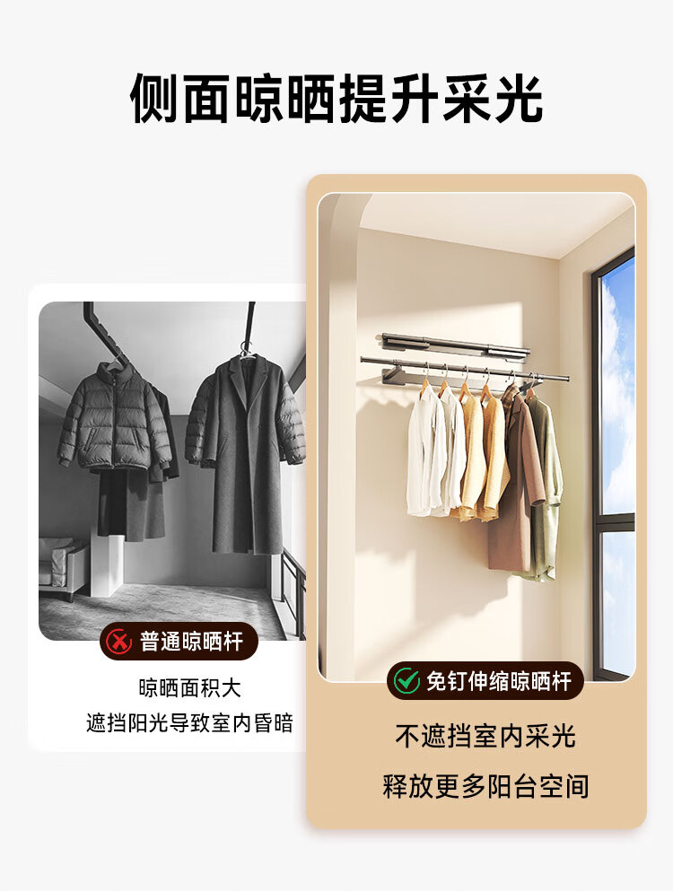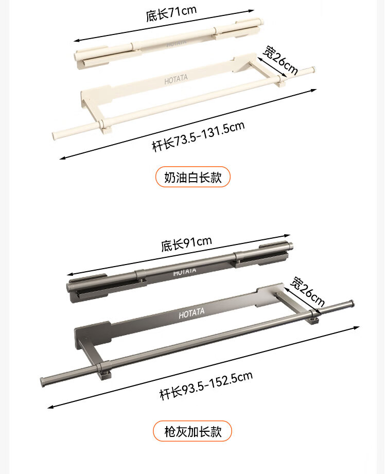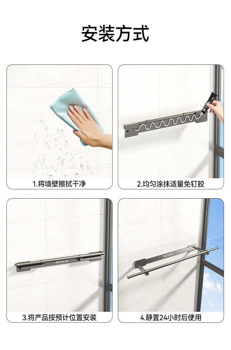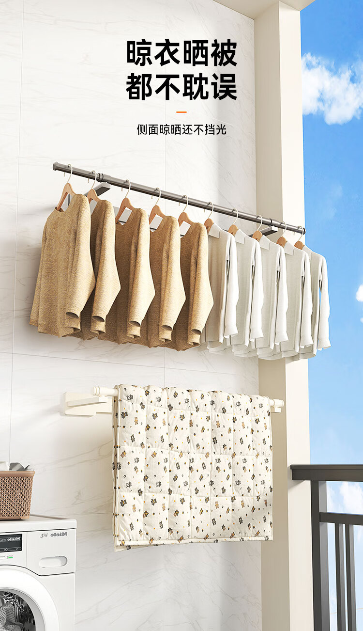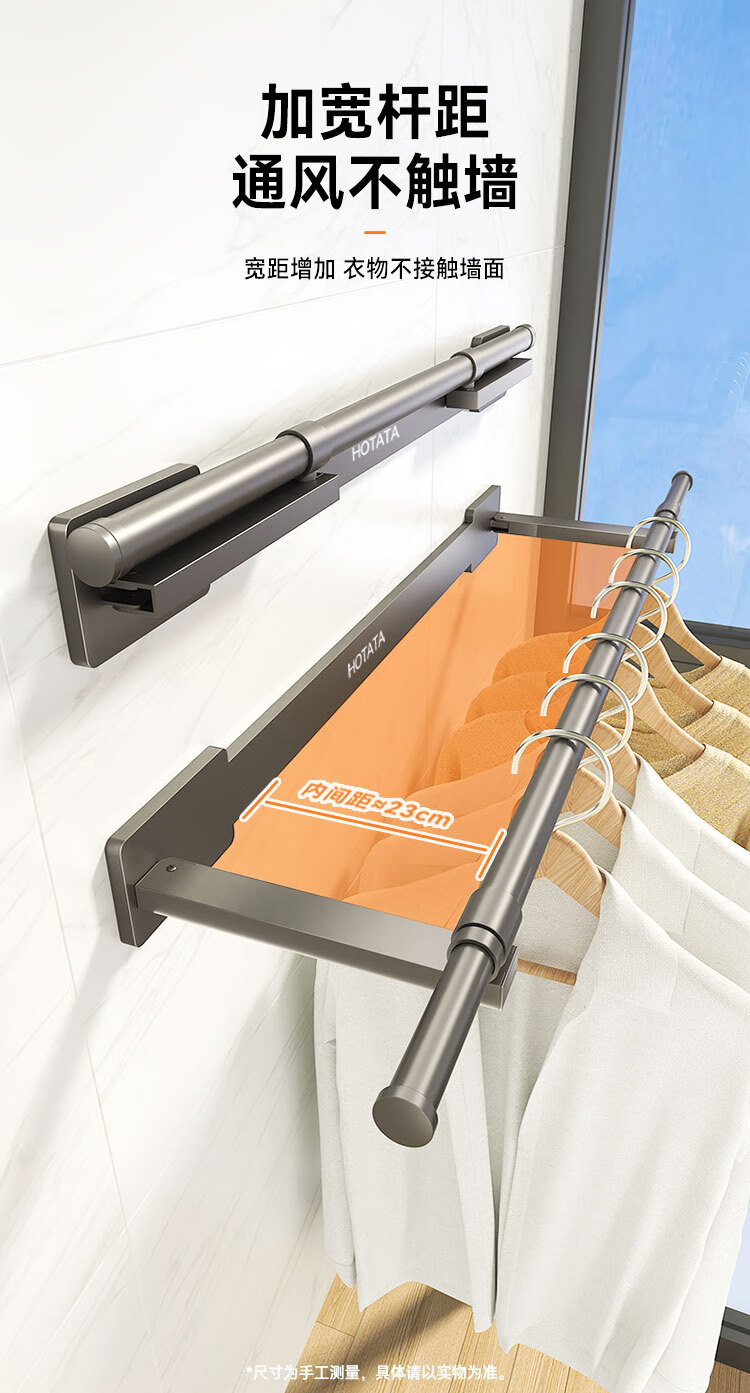 好太太(Hotata)晾衣杆免打孔家用可折叠伸缩晾晒杆衣服被子多功能晾衣架收纳方便 【枪灰-加长款】可伸缩93.5cm-152.5cm