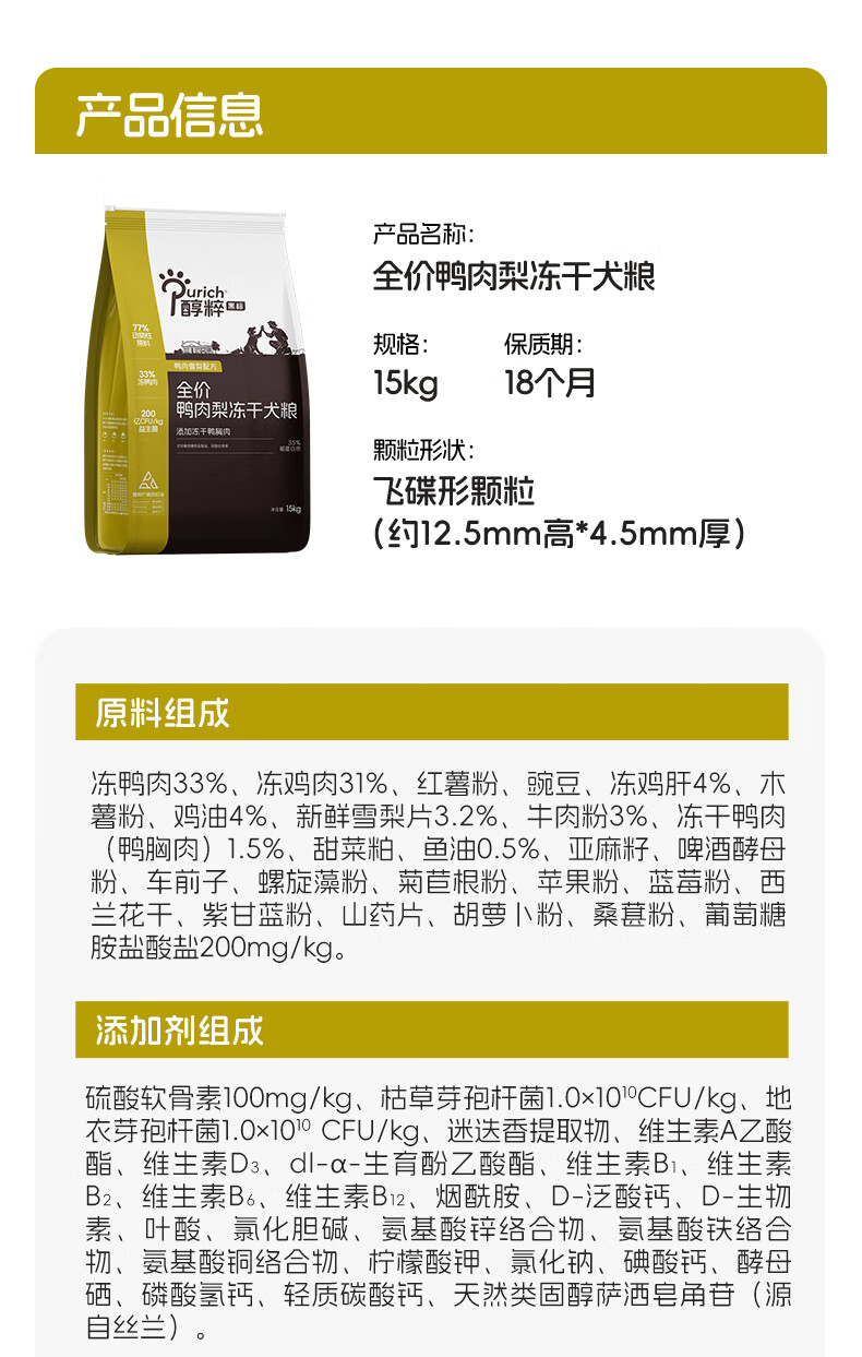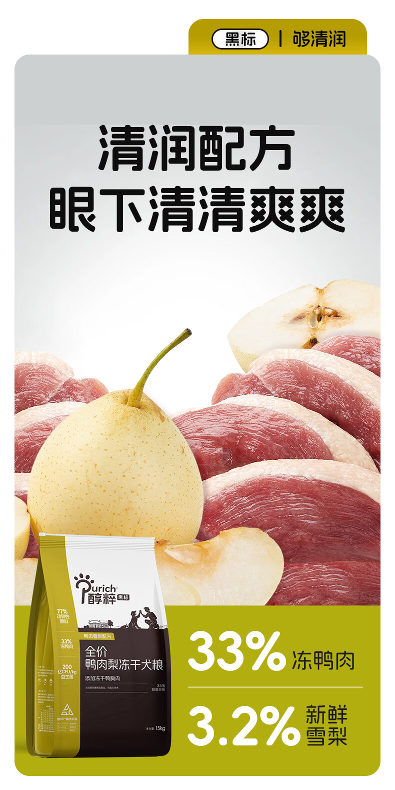 醇粹黑标鸭肉梨狗粮全价中大型犬狗粮金毛拉布拉多阿拉斯加专用粮30斤