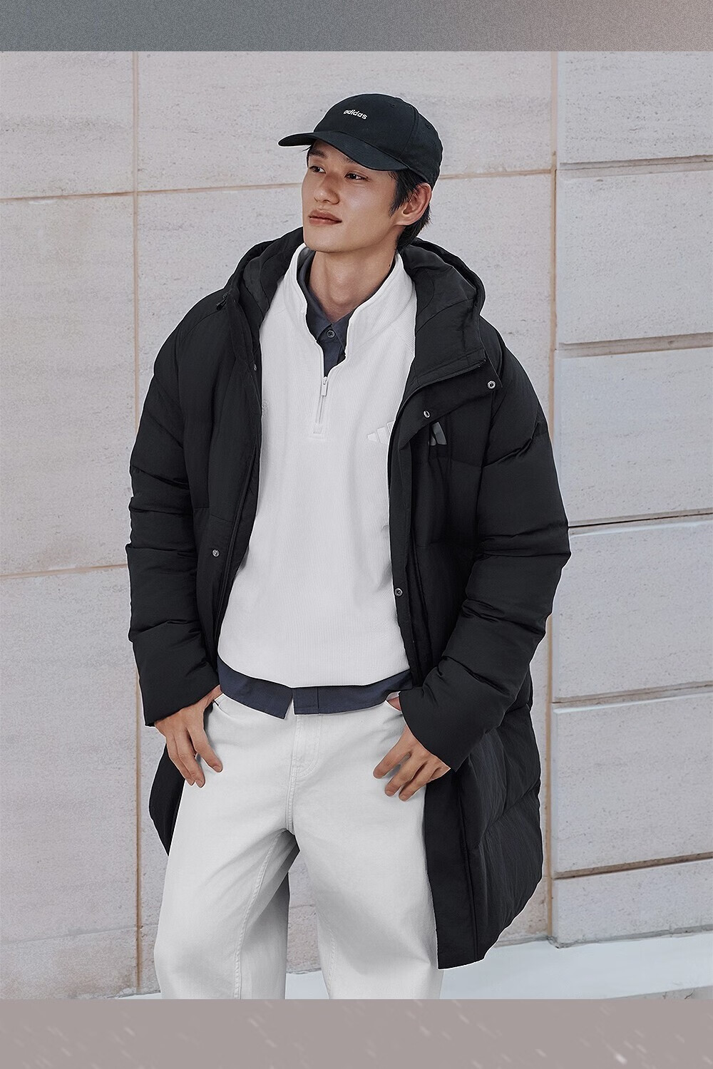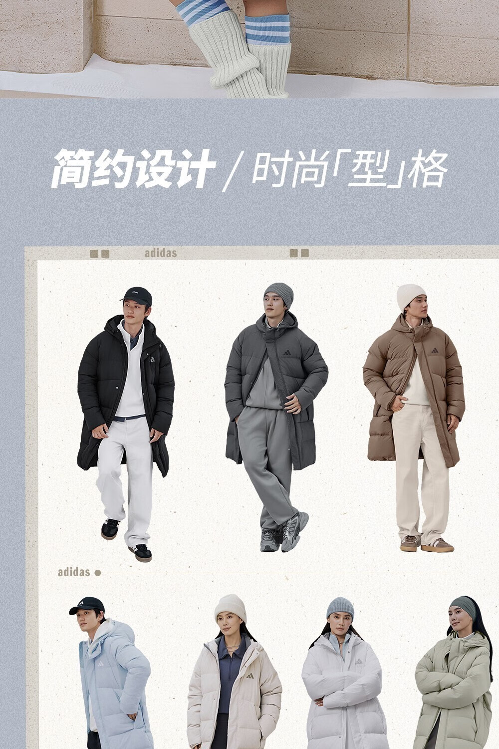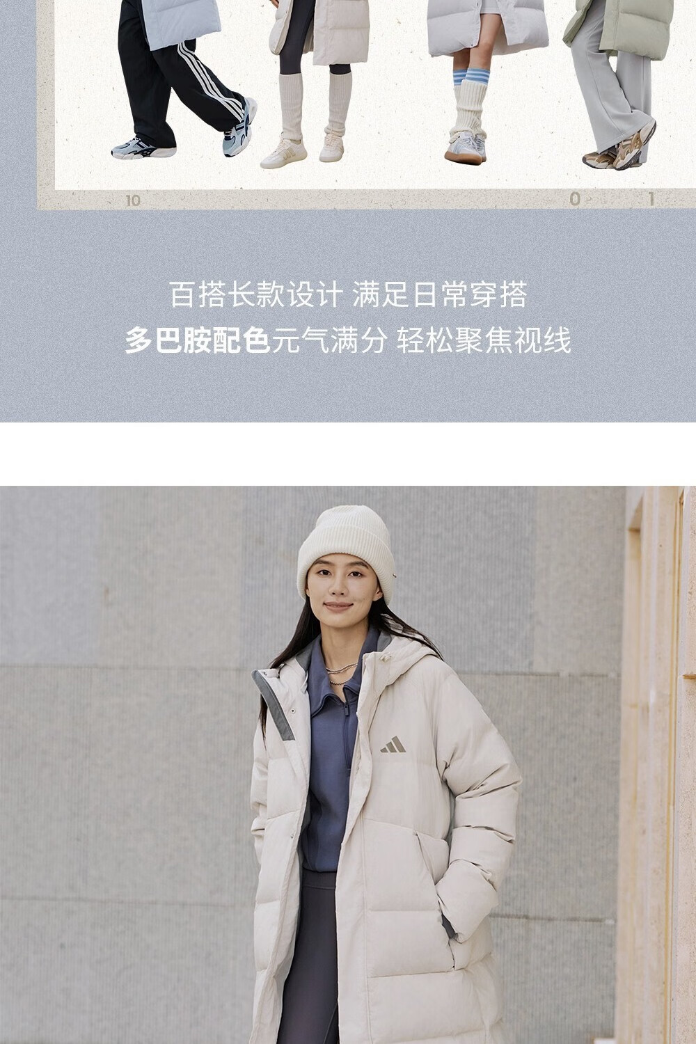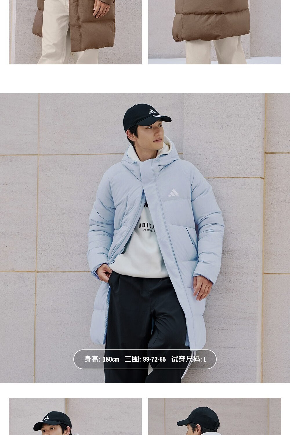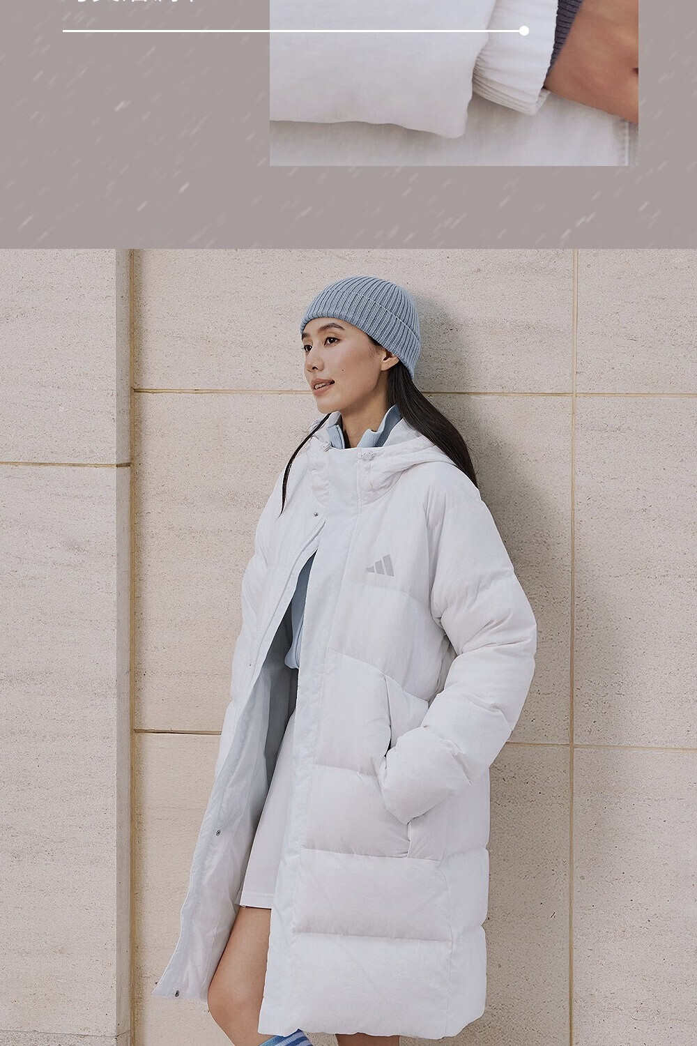 adidas 拒水暖「芯」科技长款保暖鸭绒连帽羽绒服男女阿迪达斯 黑色 M