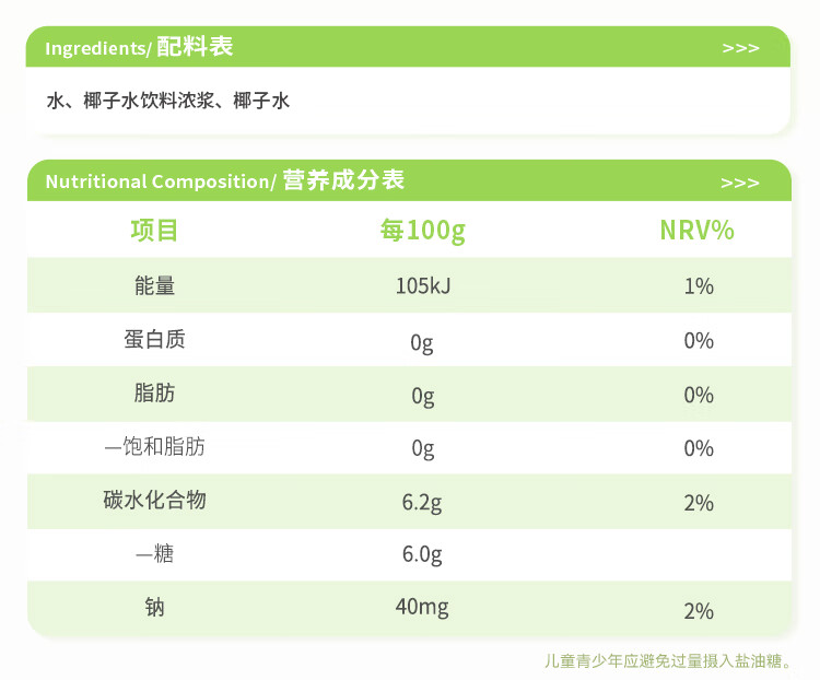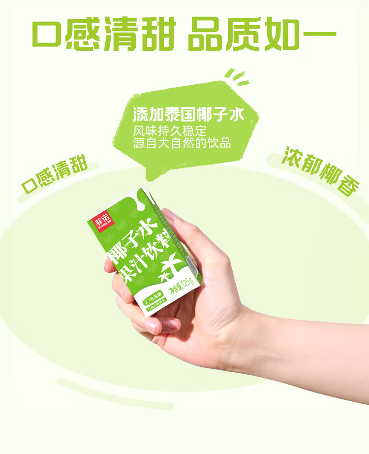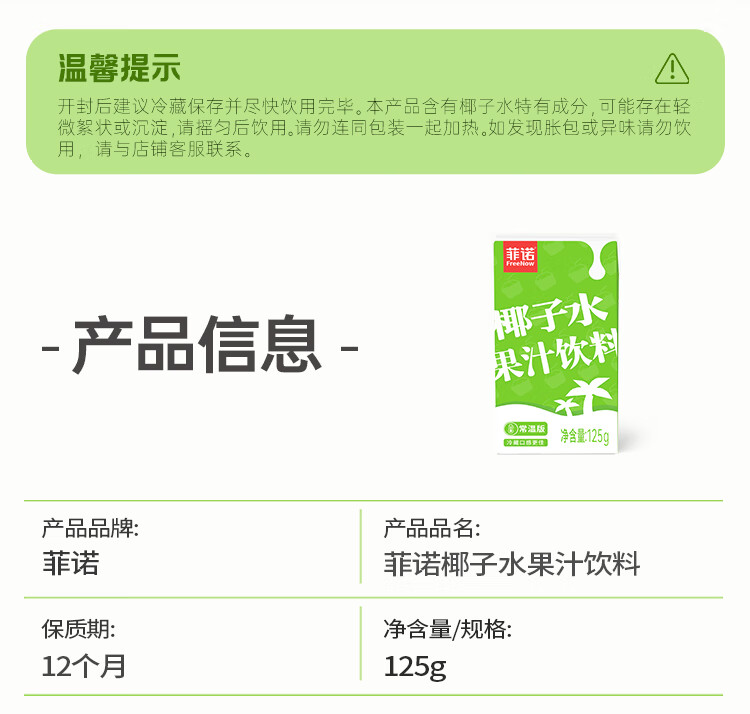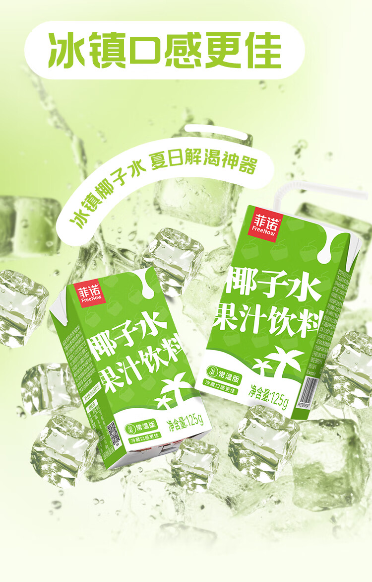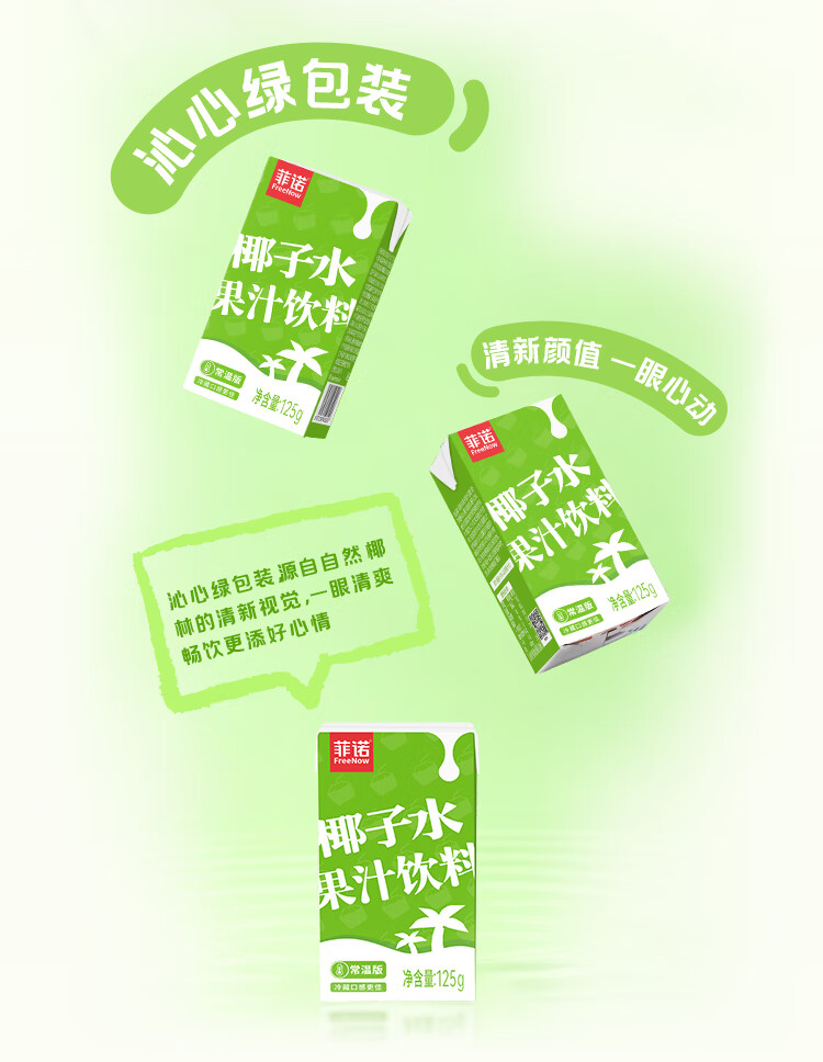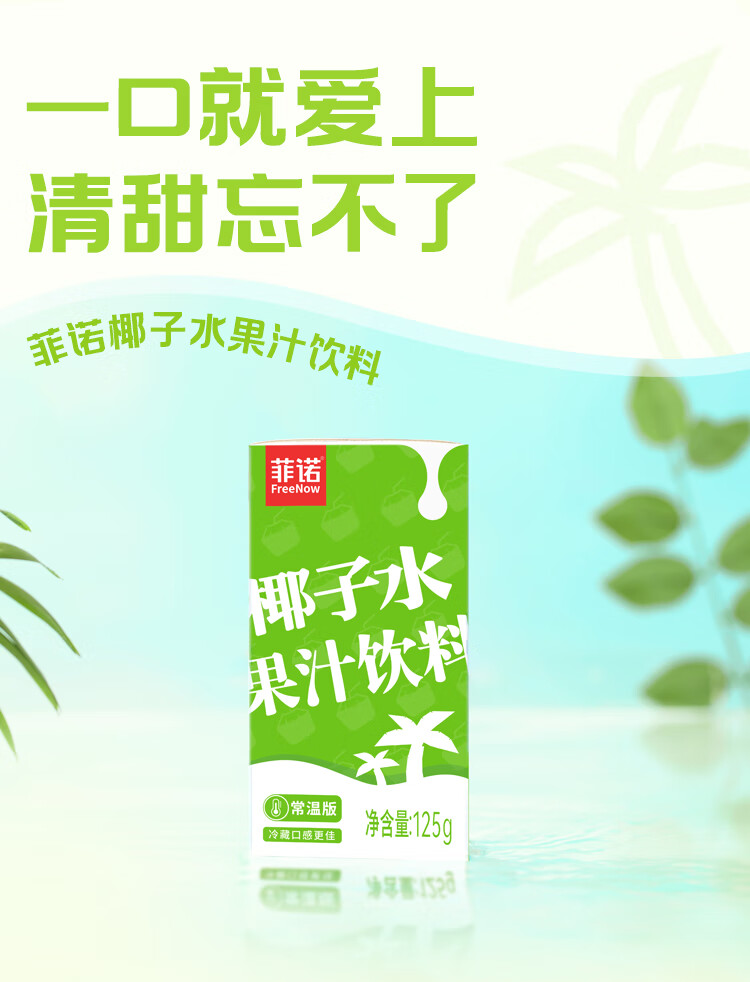 菲诺椰子水果汁饮料 0脂椰青椰子网红电解质果汁饮料 125g*18盒 箱装