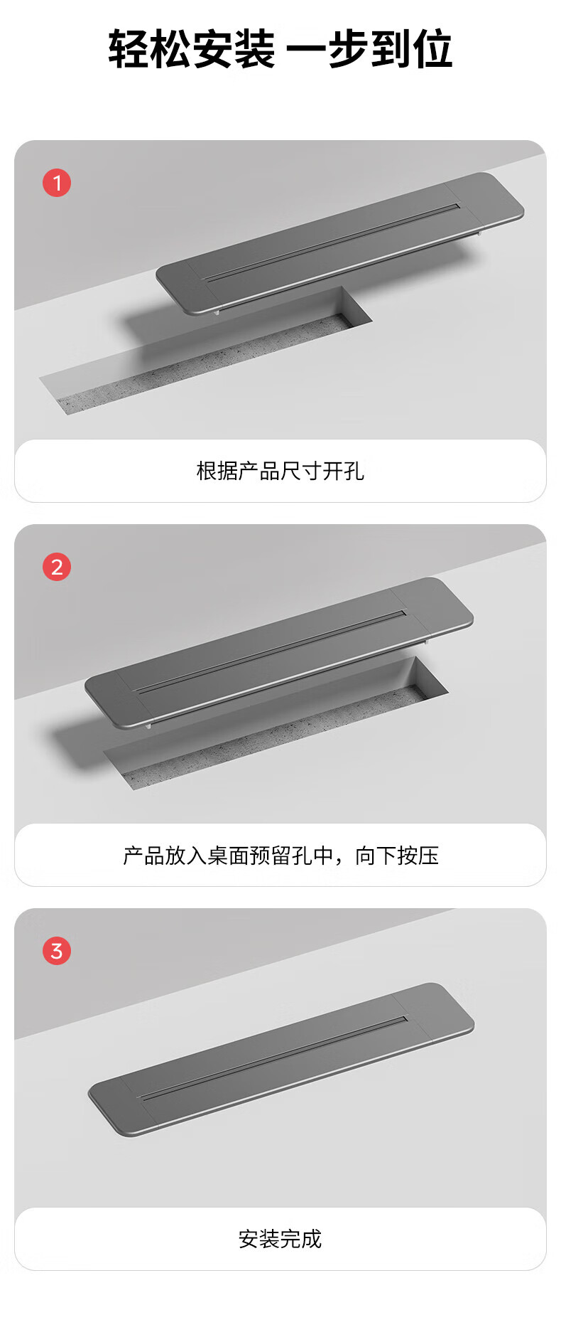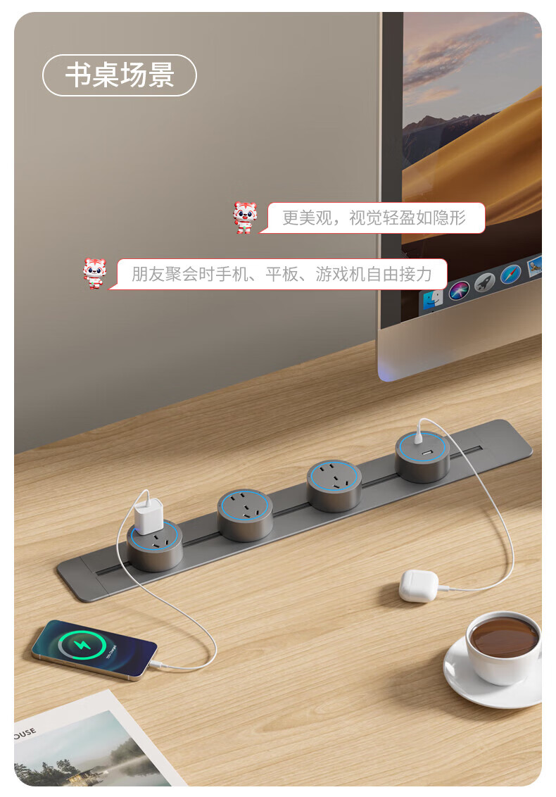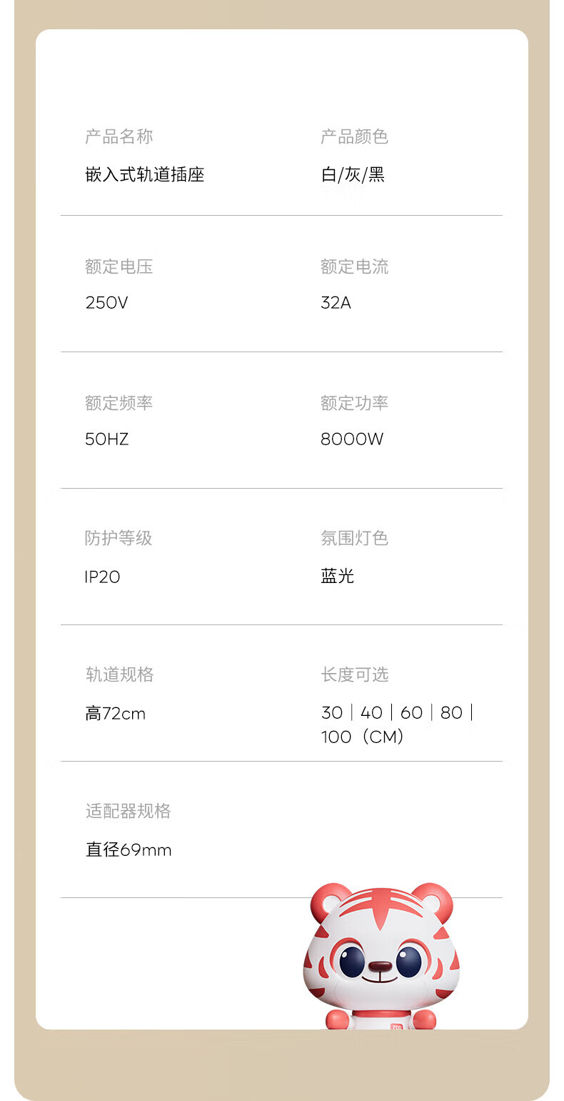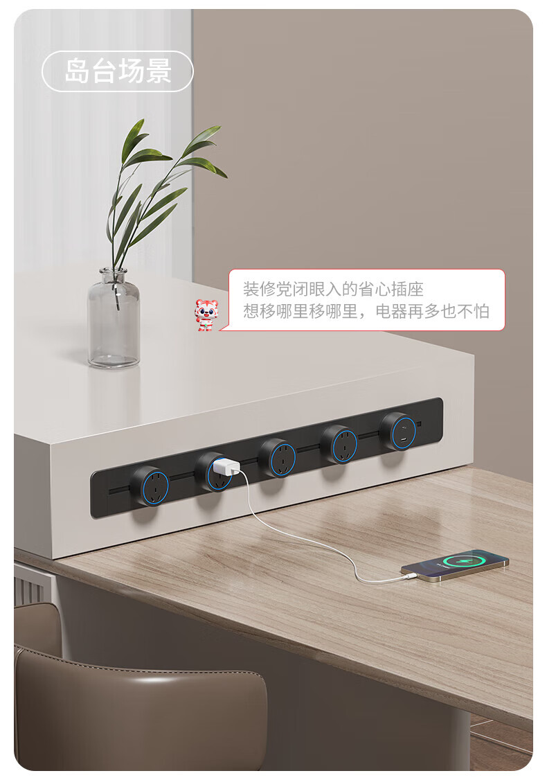 国际电工可移动超薄轨道插座嵌入式暗装内嵌电源排插厨房专用滑轨餐边柜 嵌入式黑色轨道30cm+3个大五孔-蓝灯