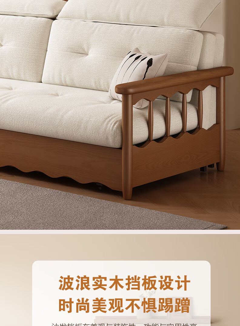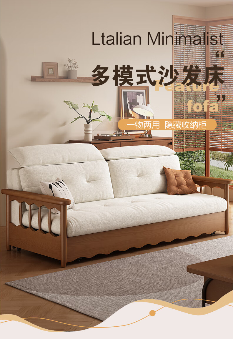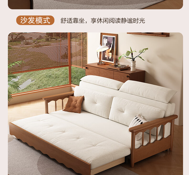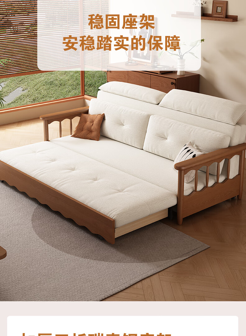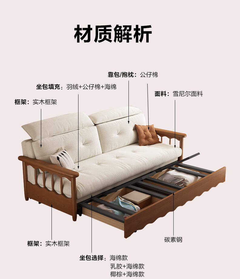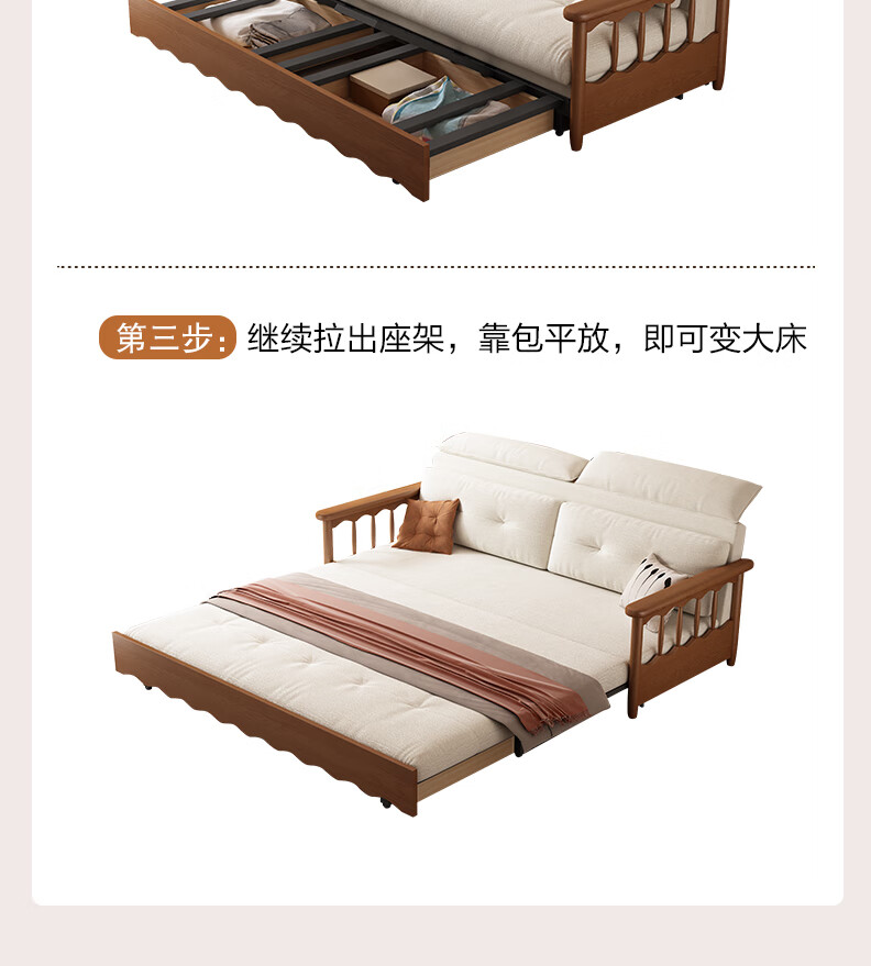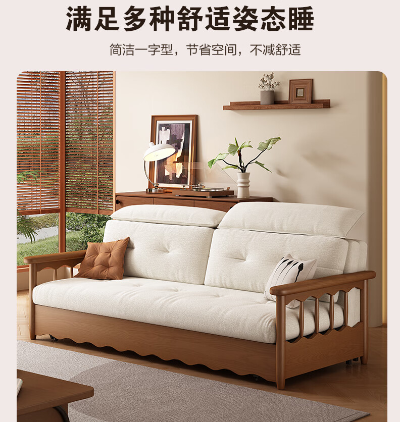 莘联可折叠实木沙发床一体两用新款小户型客厅中古风多功能雪尼尔沙发 外径:1.2m(无储物)白蜡木沙发床 高弹海绵款(加厚雪尼尔)