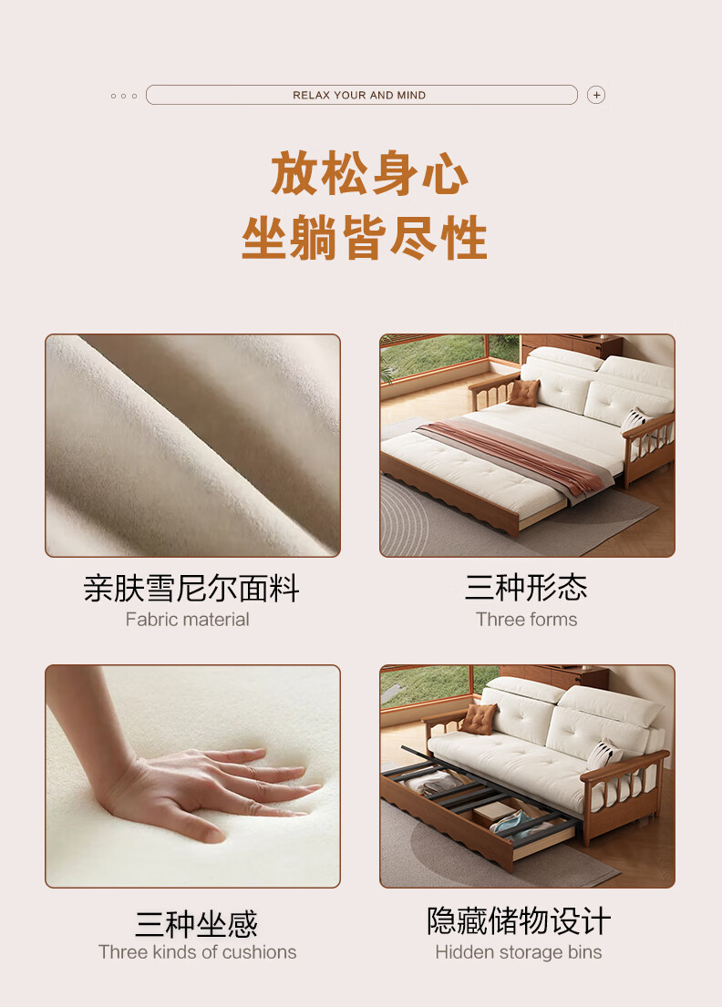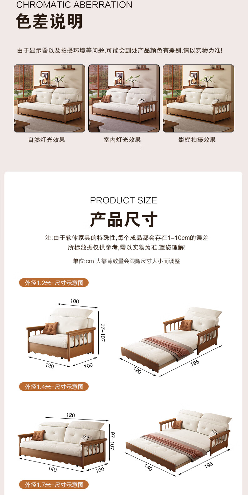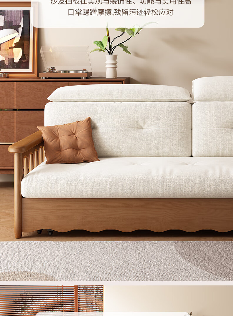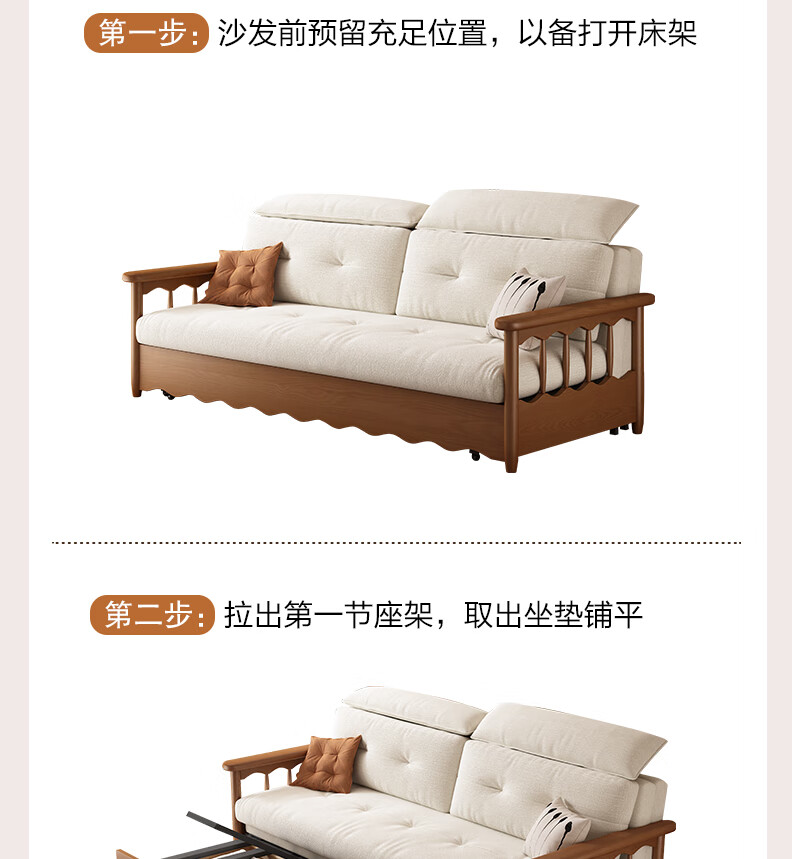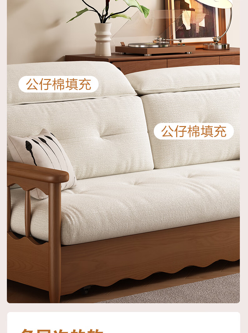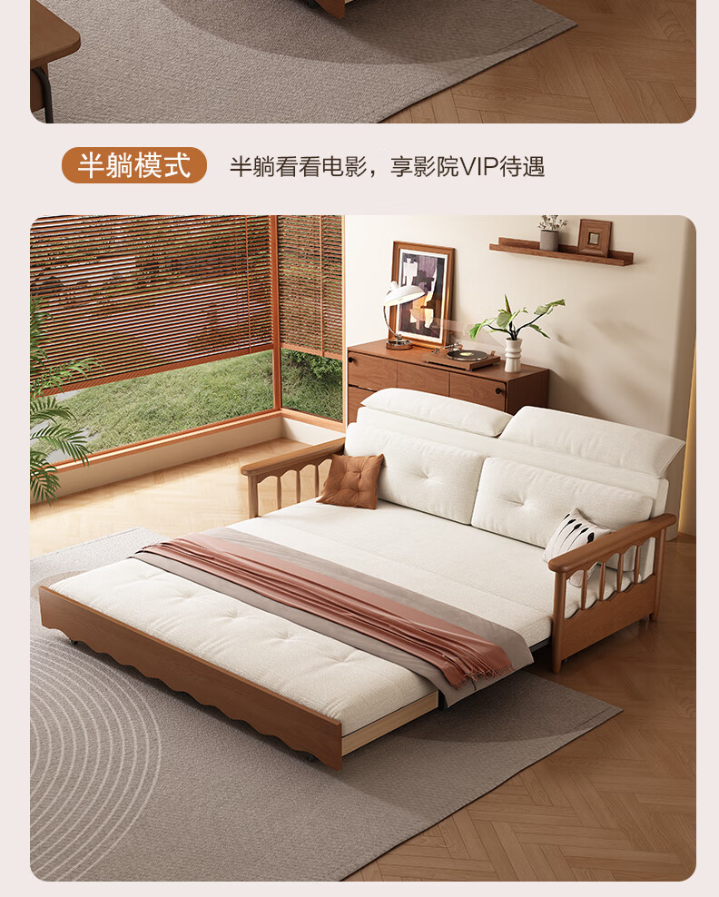 莘联可折叠实木沙发床一体两用新款小户型客厅中古风多功能雪尼尔沙发 外径:1.2m(无储物)白蜡木沙发床 高弹海绵款(加厚雪尼尔)
