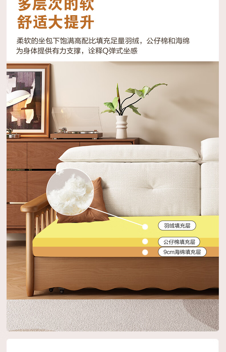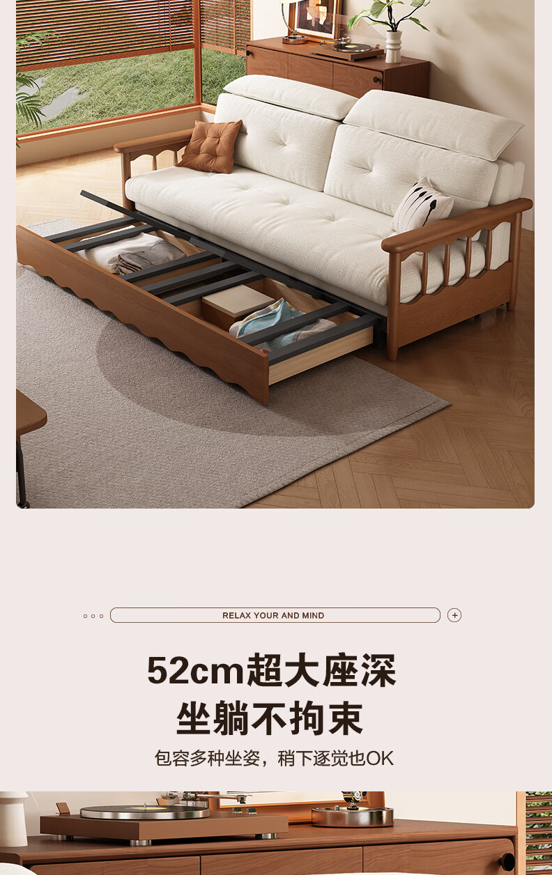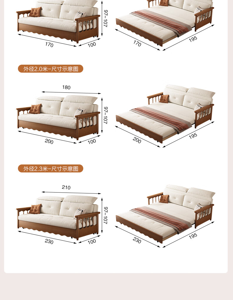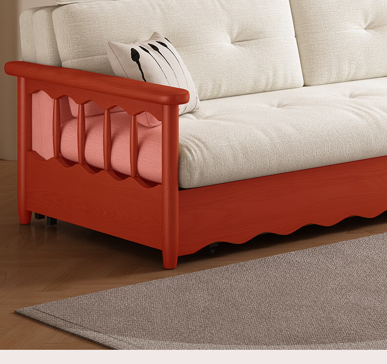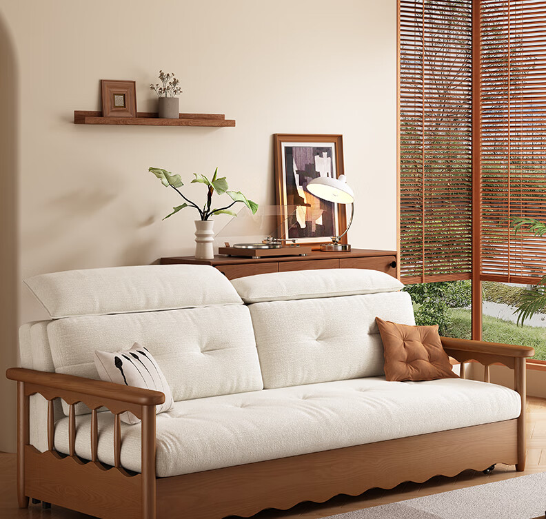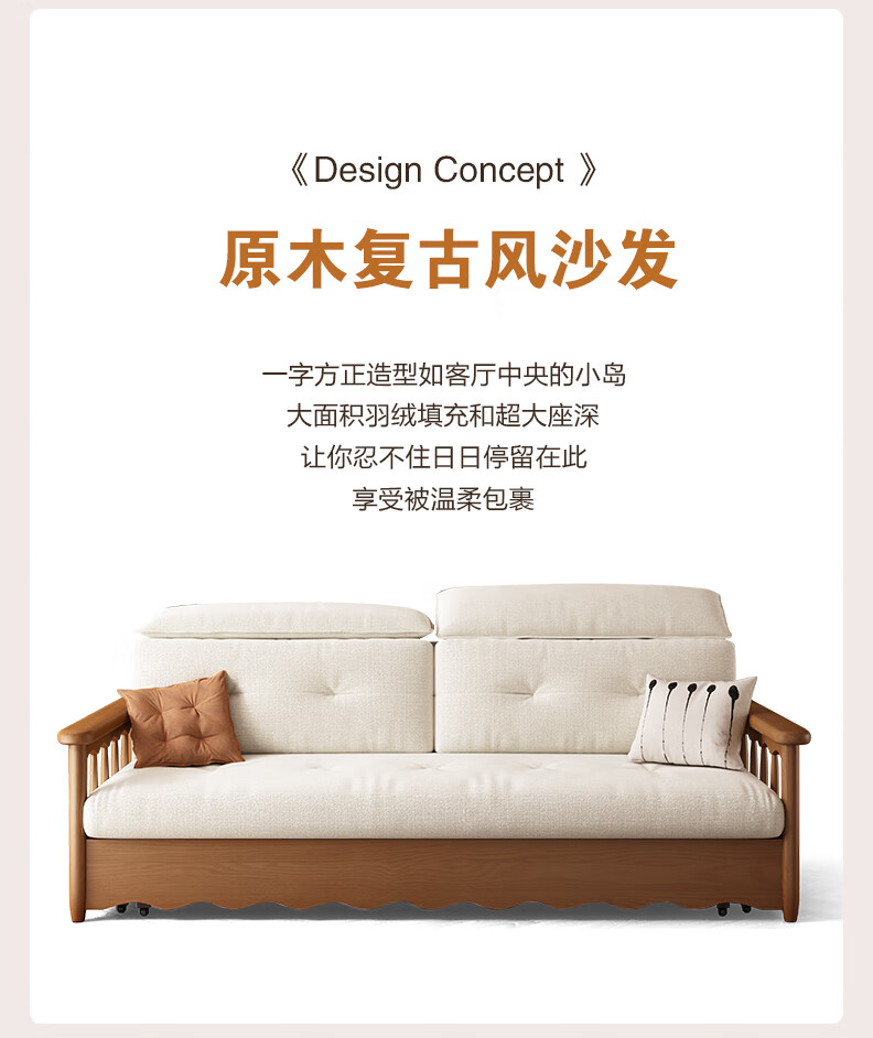 莘联可折叠实木沙发床一体两用新款小户型客厅中古风多功能雪尼尔沙发 外径:1.2m(无储物)白蜡木沙发床 高弹海绵款(加厚雪尼尔)