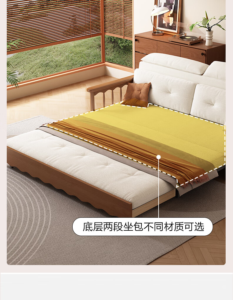 泽贤阁2025新款现代简约多功能折叠沙发一体两用客厅小户型懒人沙发 【新款猫抓皮+实木脚】米黄 【抑菌乳胶款】2*1.2米(2腰枕2扶手)