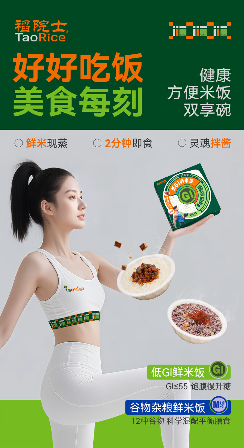 稻院士低GI方便米饭双碗装 微波加热配酱料包 免煮杂粮1盒 180g*2碗