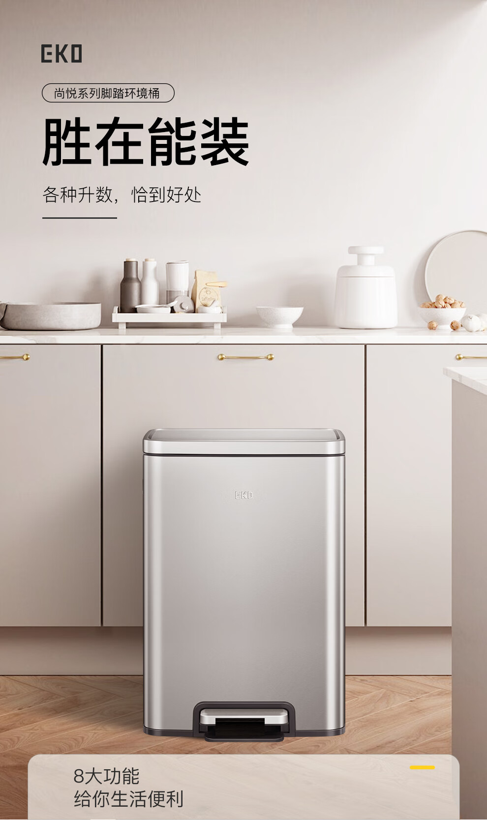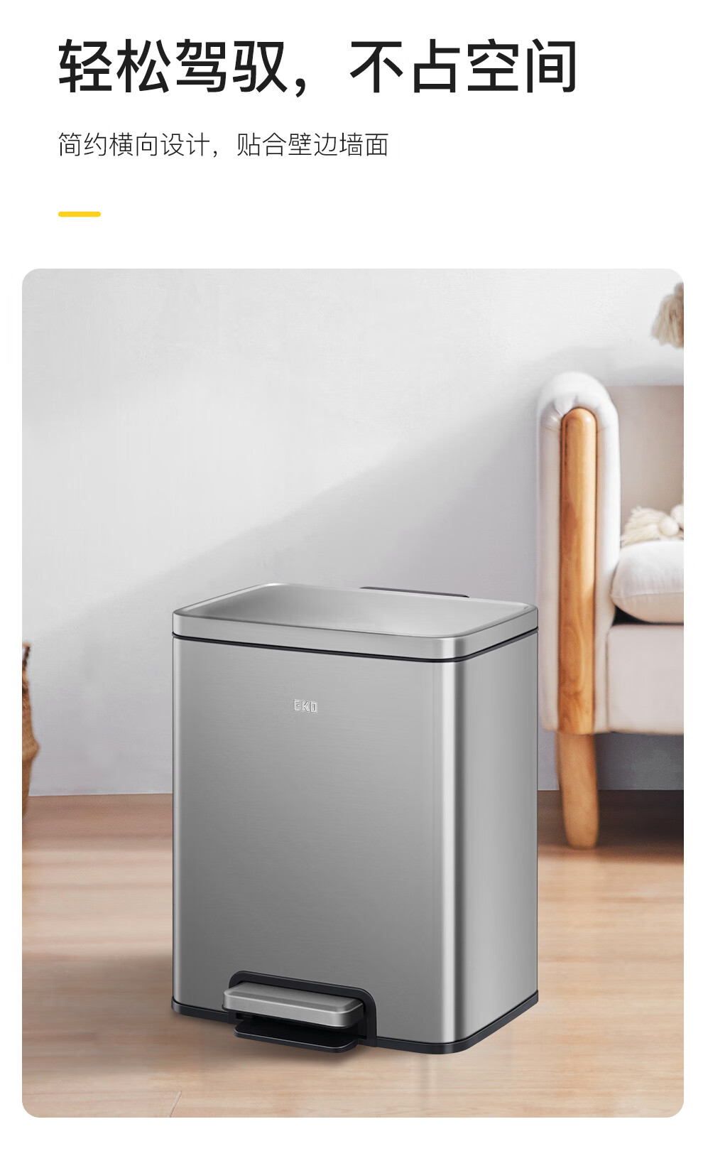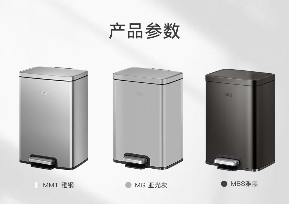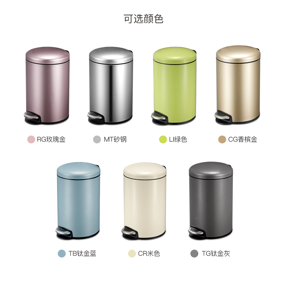 EKO垃圾桶 家用脚踩开盖厨房客厅卫生间带盖大号不锈钢 9118【奶油白】 12L