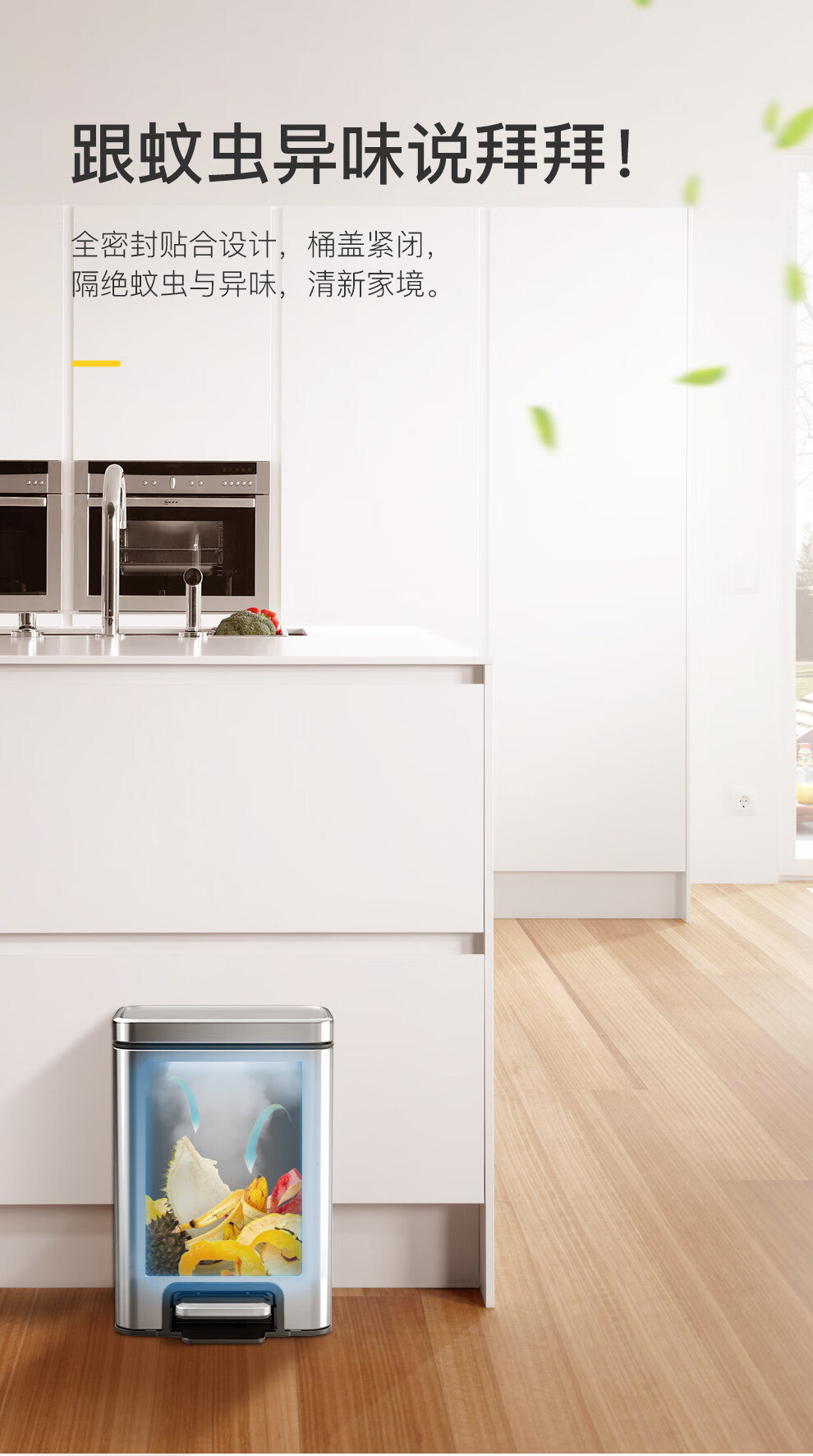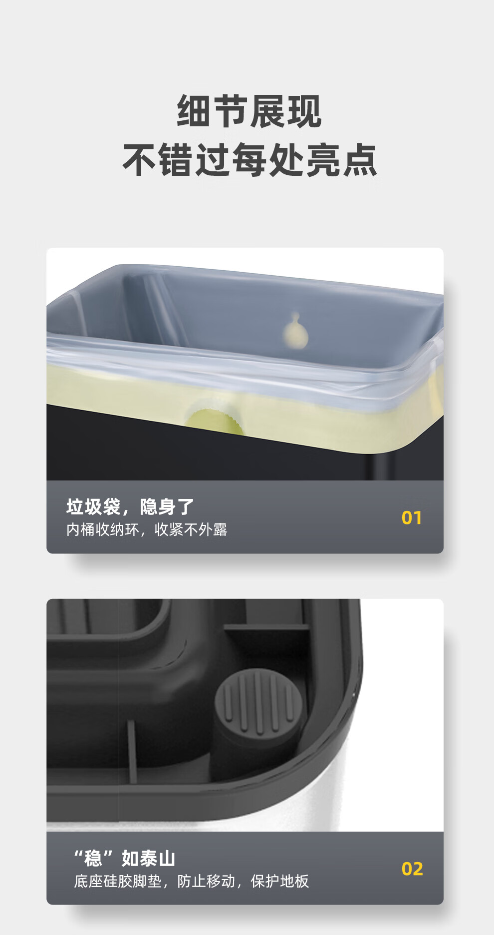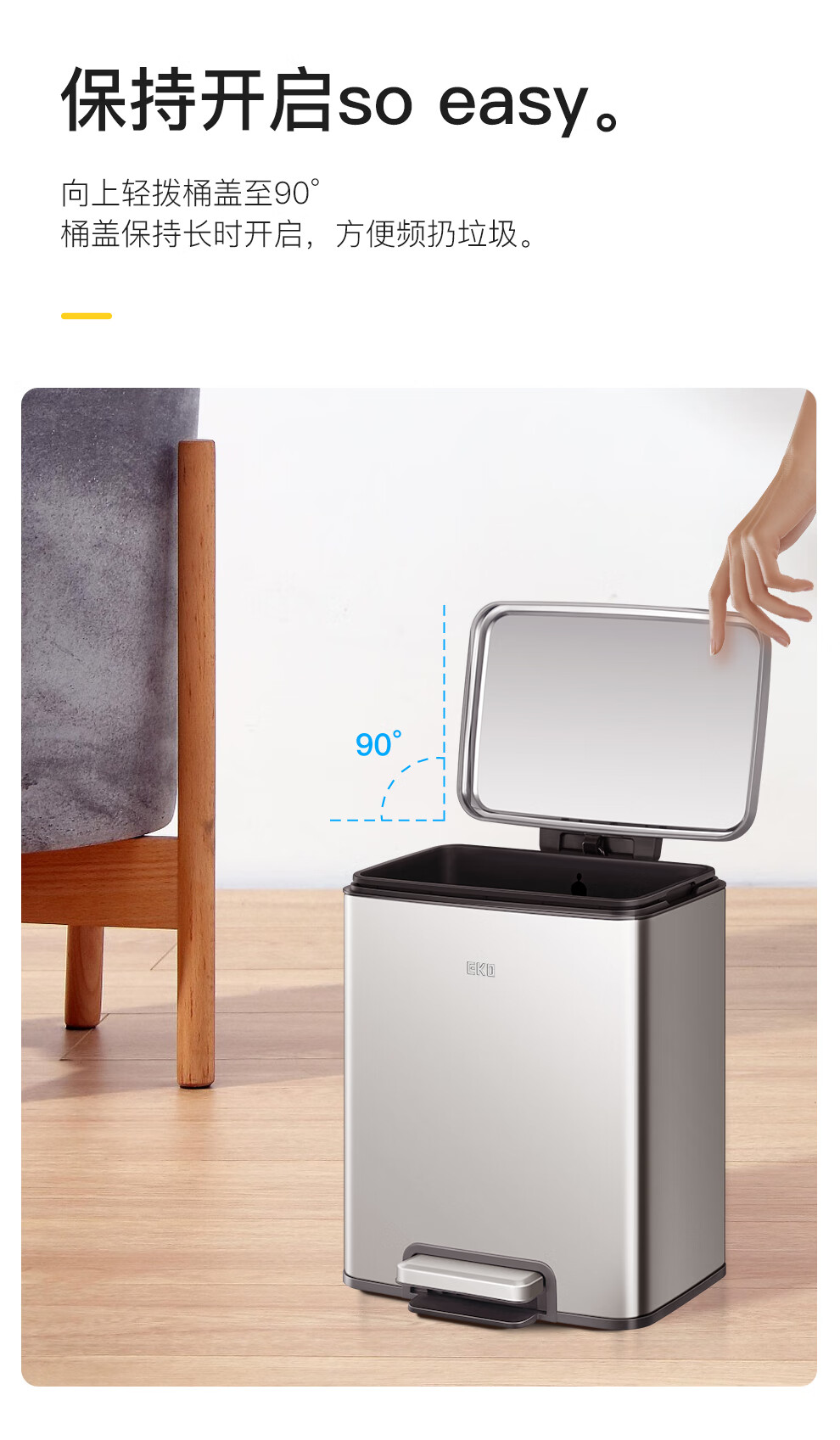 EKO垃圾桶 家用脚踩开盖厨房客厅卫生间带盖大号不锈钢 9118【奶油白】 12L