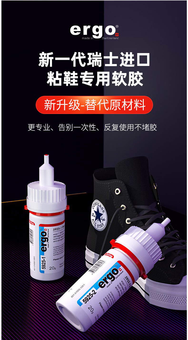 ergo【瑞士进口】补鞋胶水软性树脂胶防水粘鞋专用胶水强力胶鞋胶粘皮鞋运动鞋修鞋底胶粘鞋胶 补鞋胶
