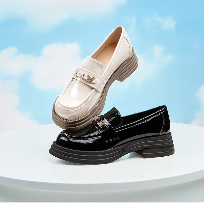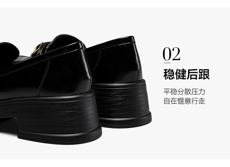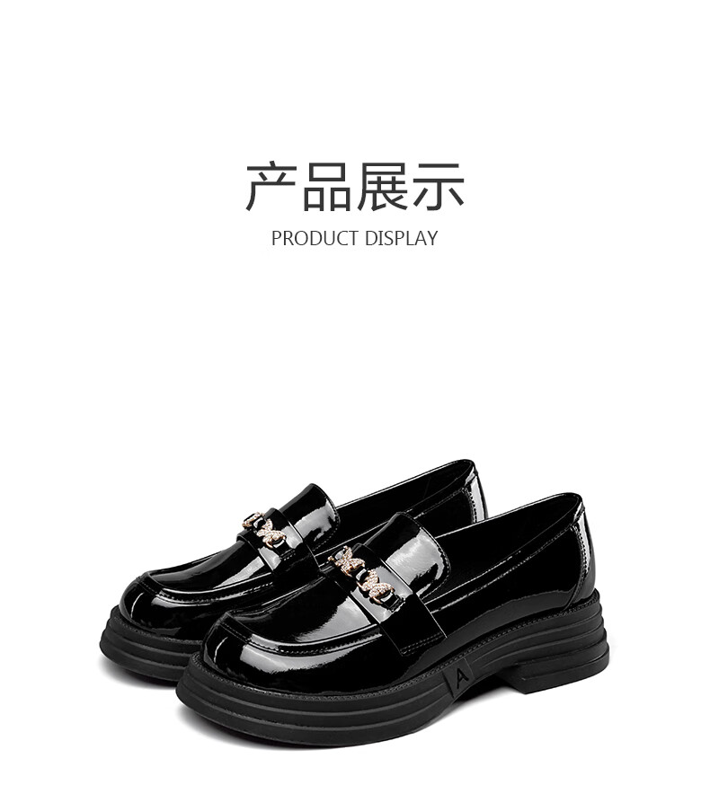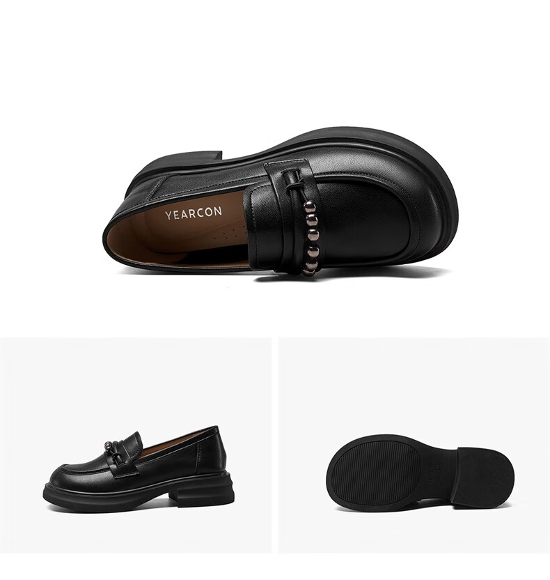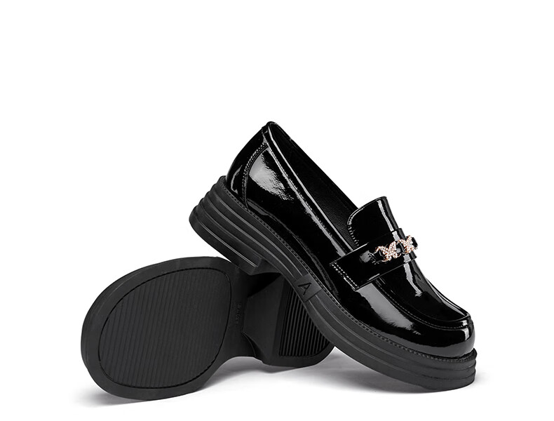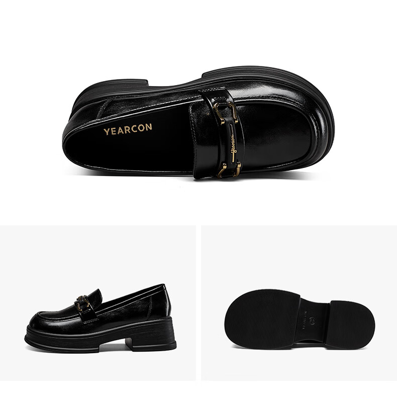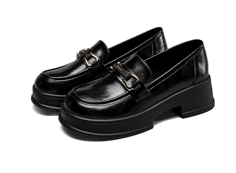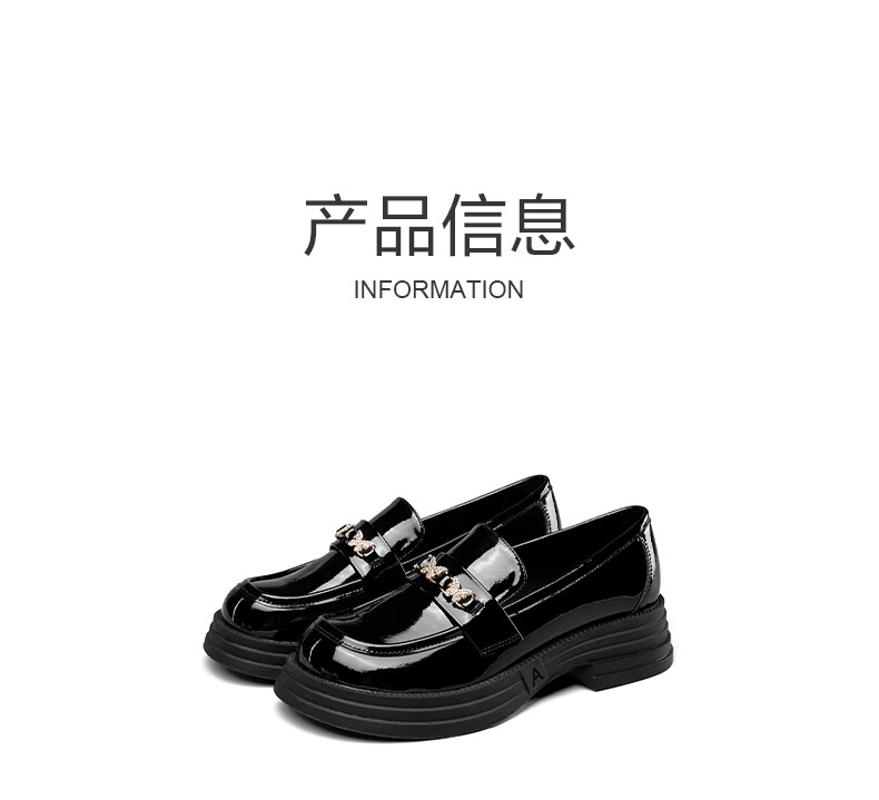 意尔康小皮鞋女英伦风厚底增高舒适乐福鞋25春款 49861W 黑色3 37