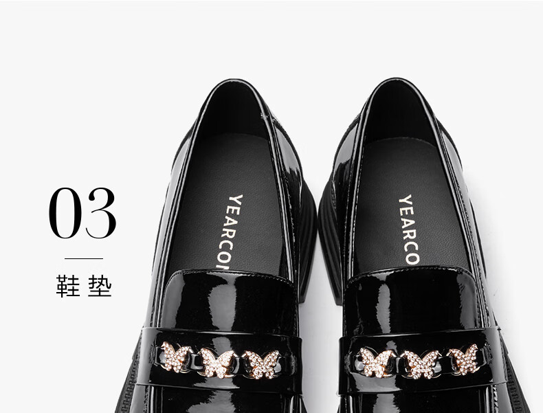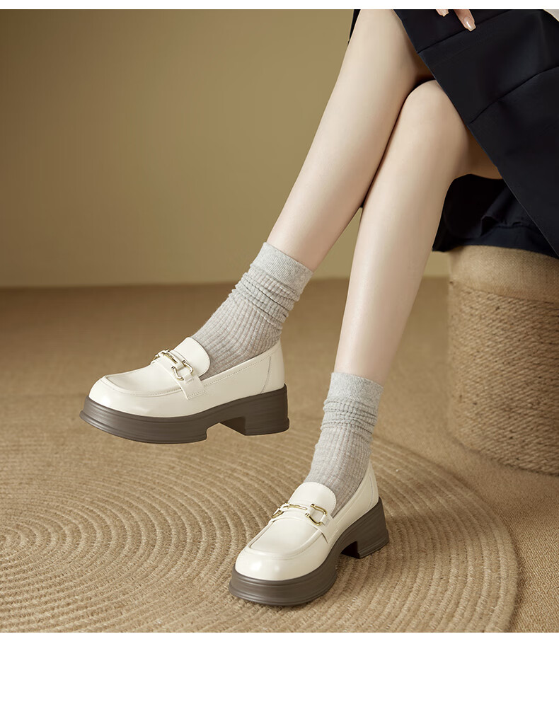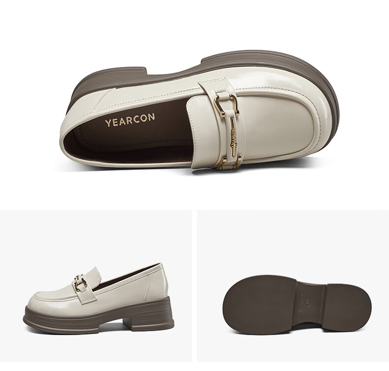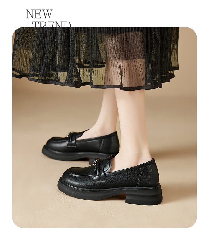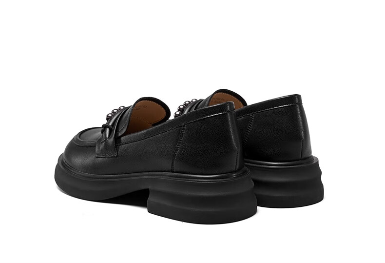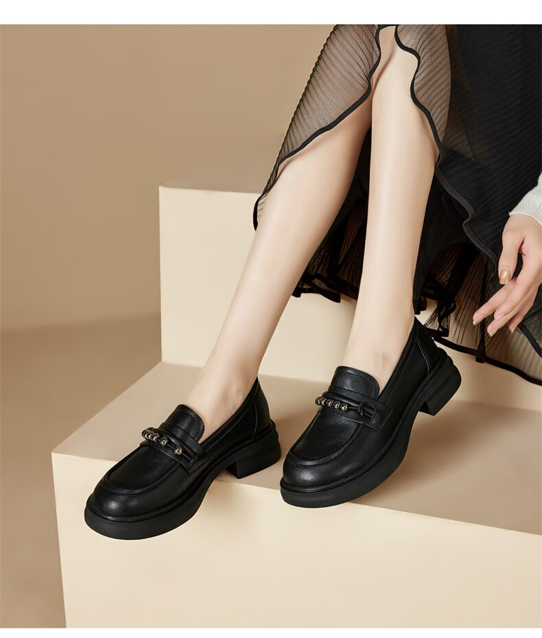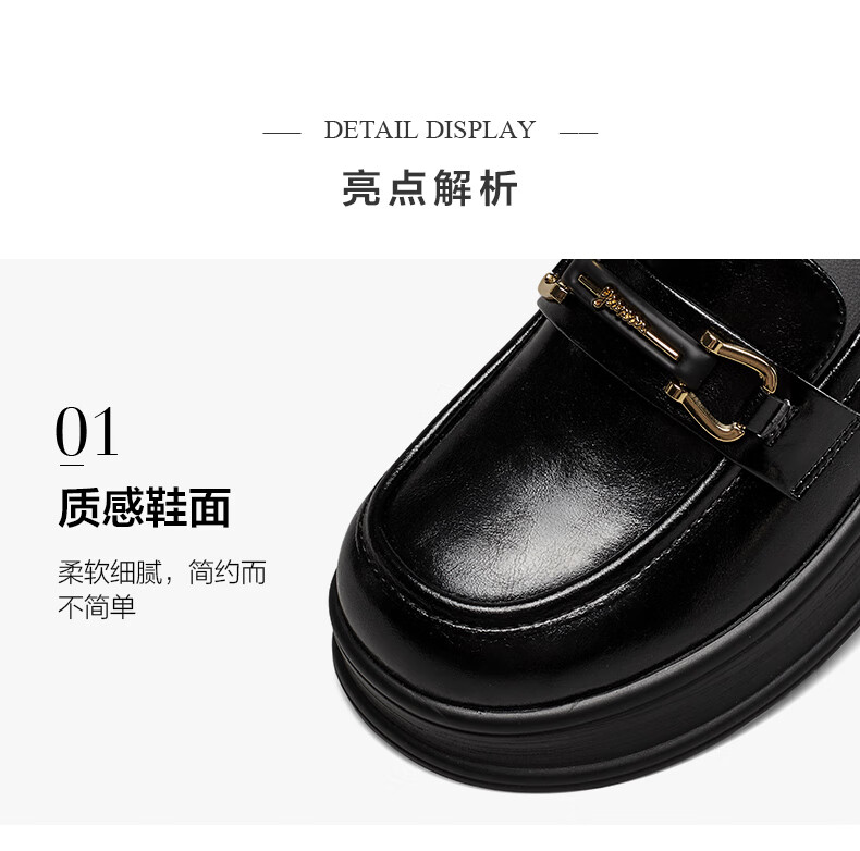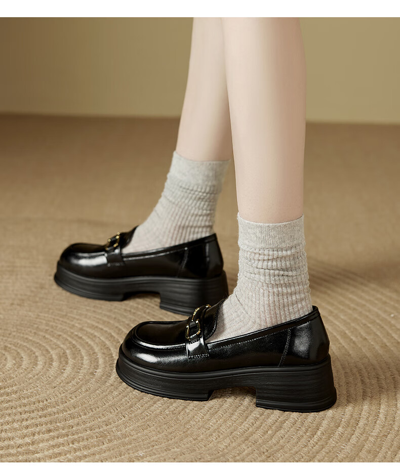 意尔康小皮鞋女英伦风厚底增高舒适乐福鞋25春款 49861W 黑色3 37
