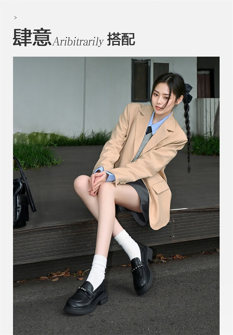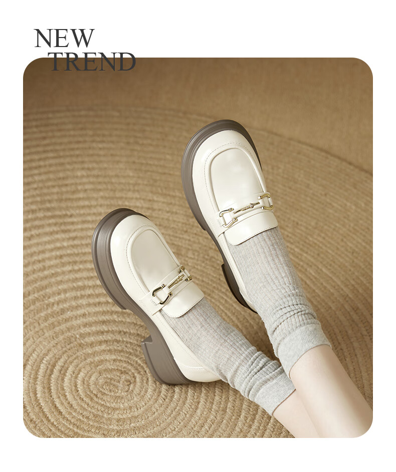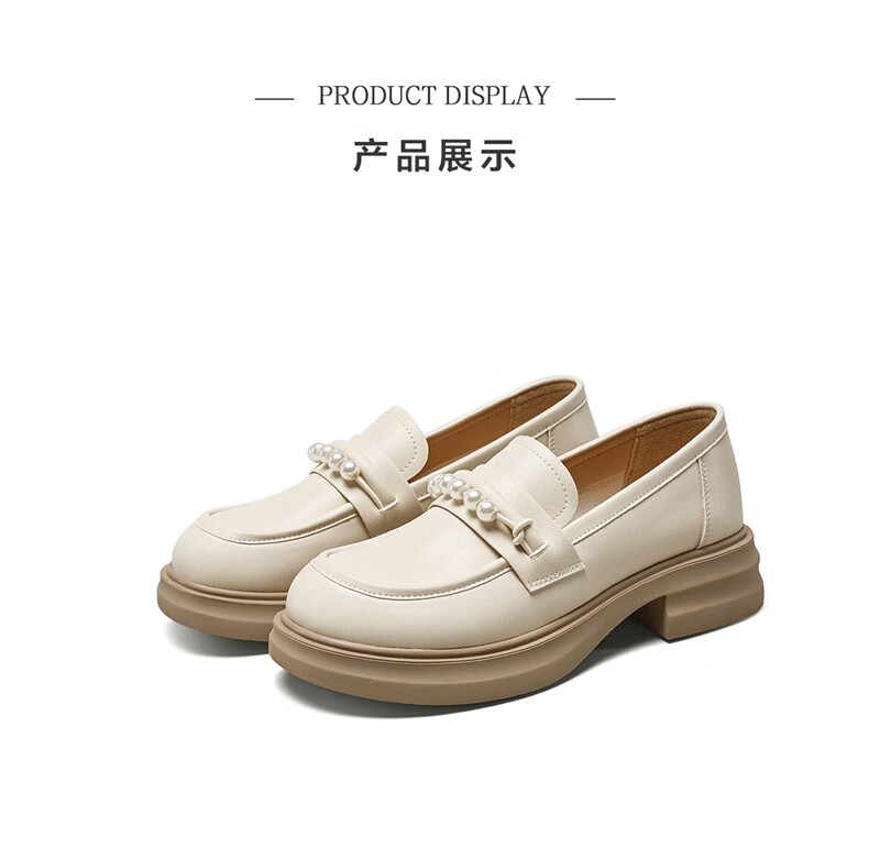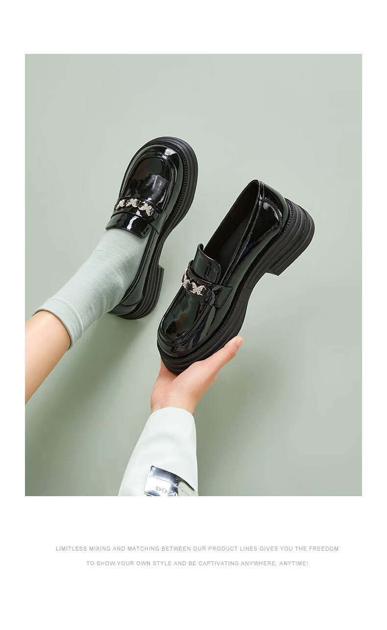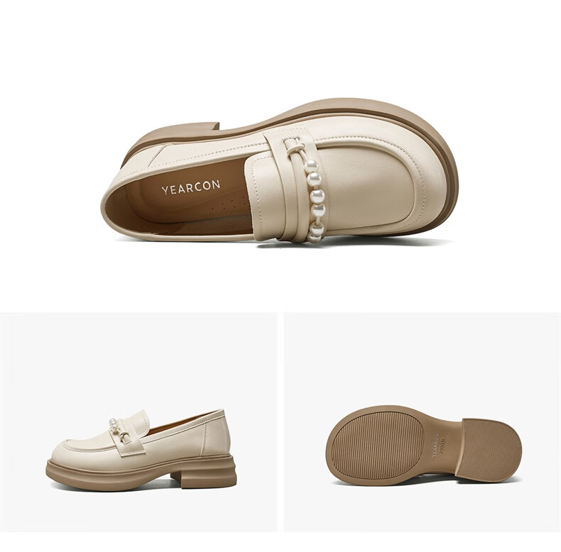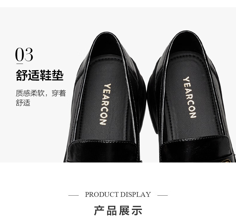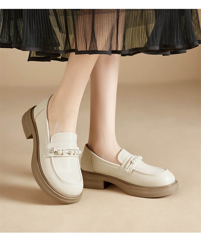 意尔康小皮鞋女英伦风厚底增高舒适乐福鞋25春款 49861W 黑色3 37