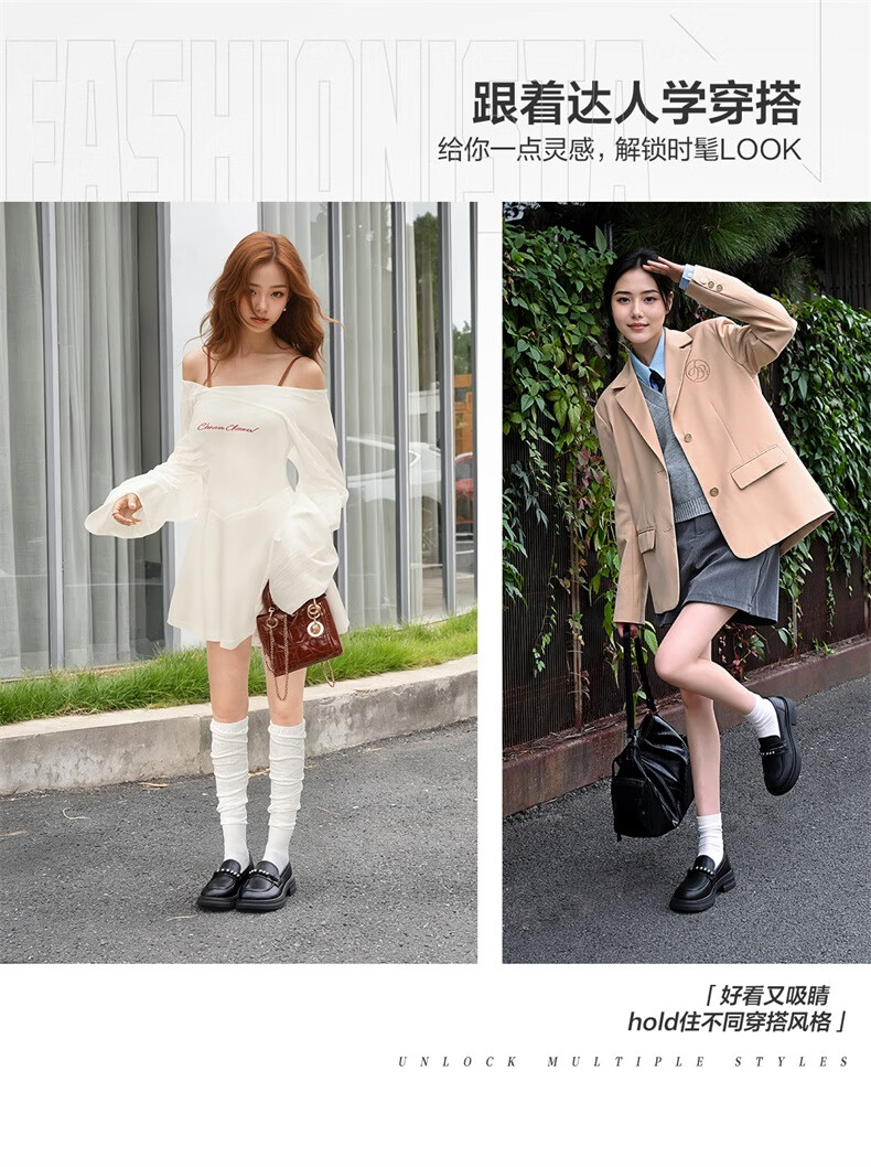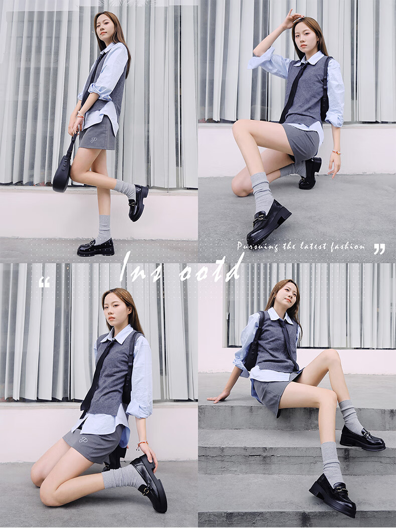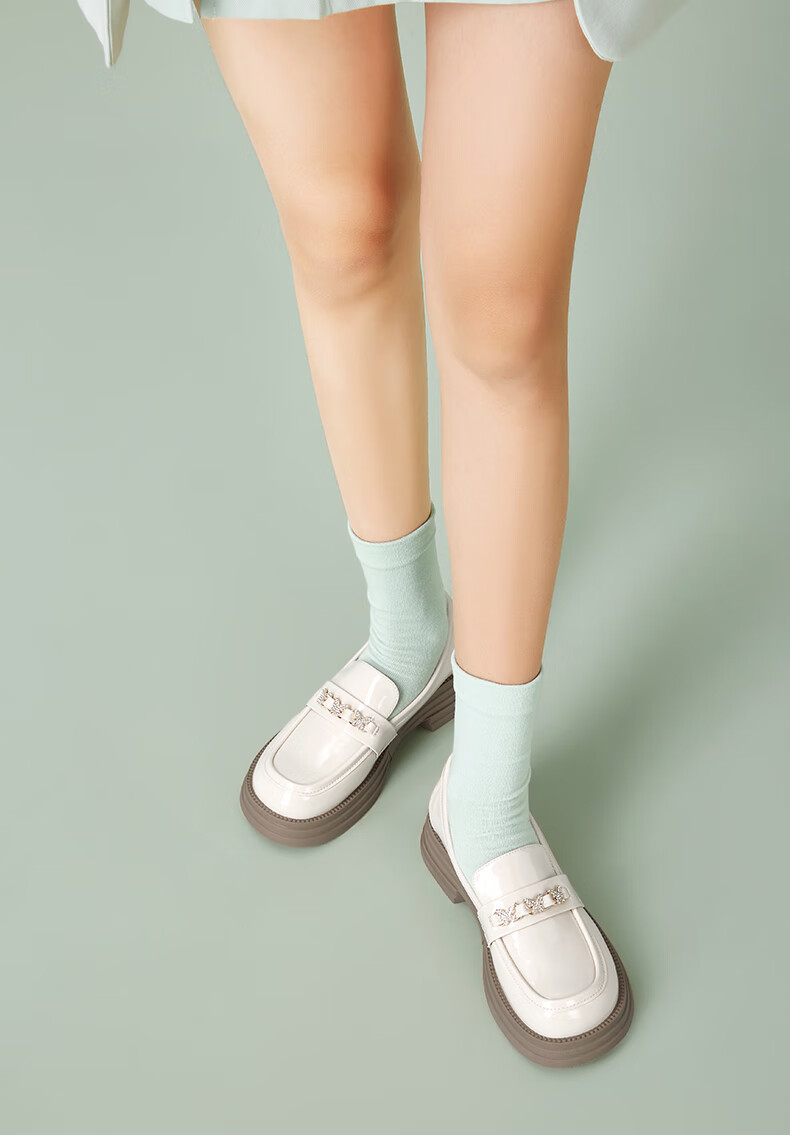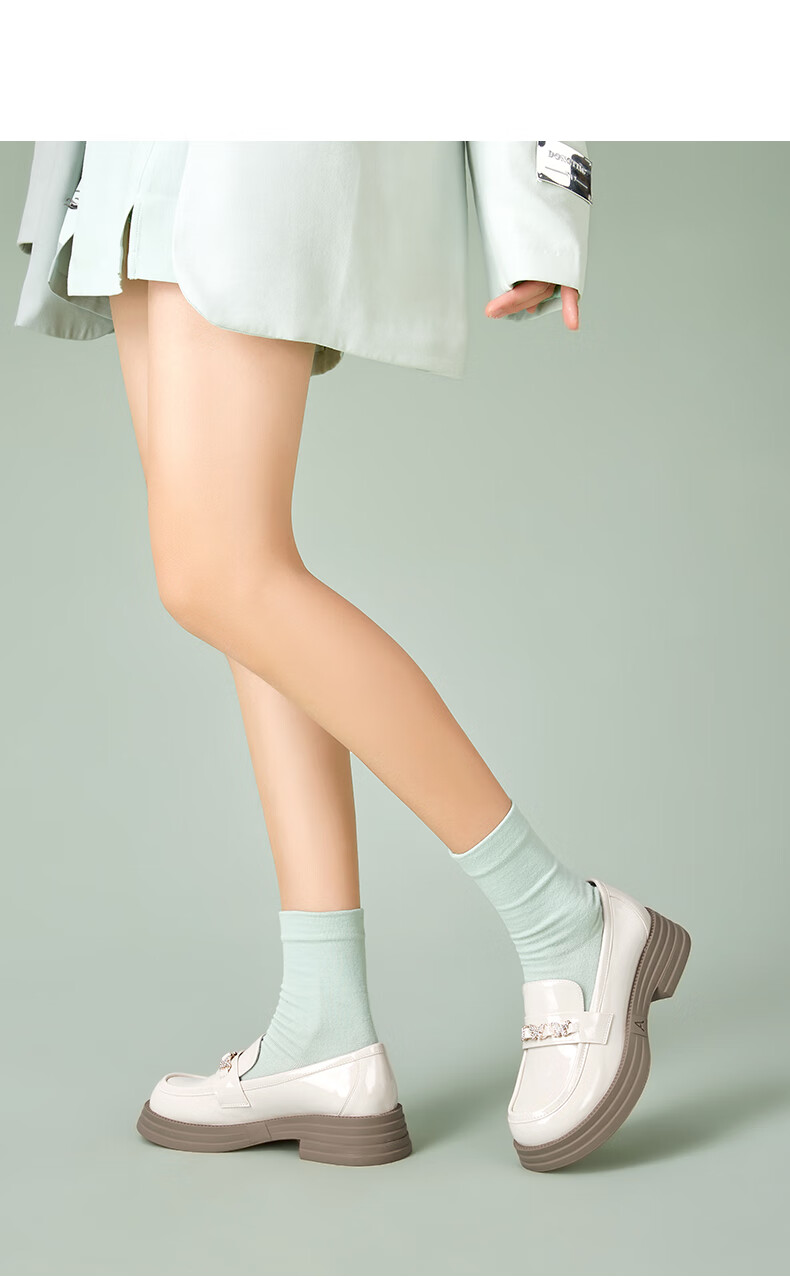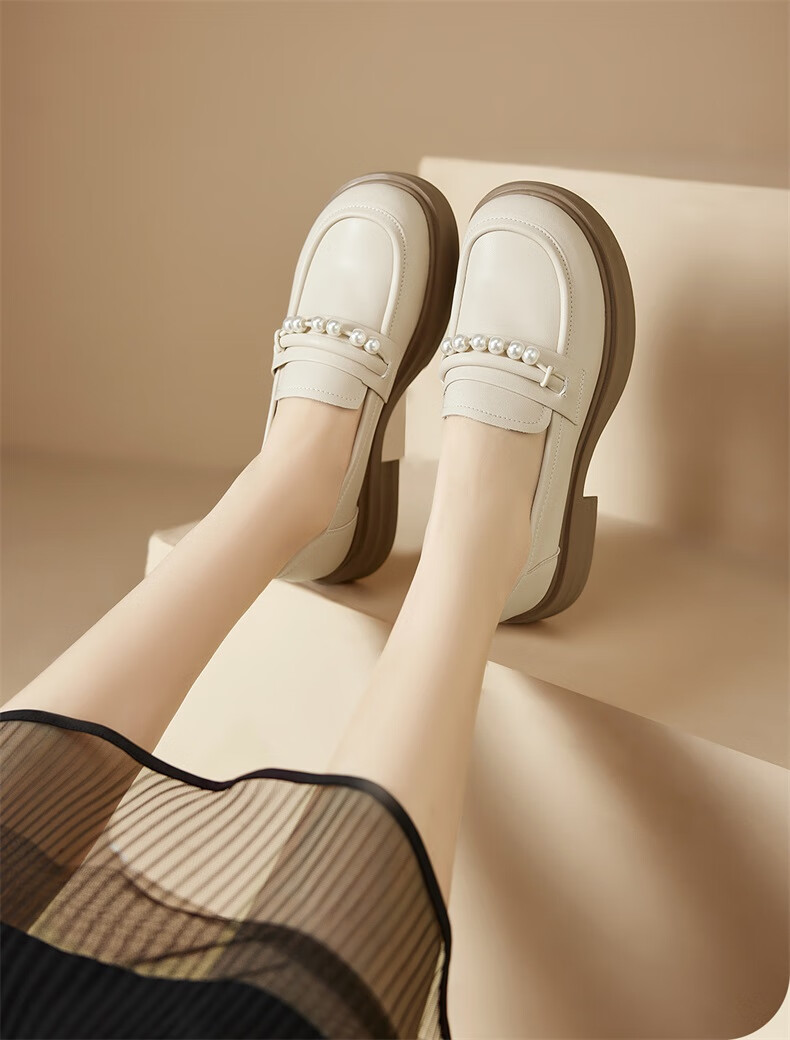 意尔康小皮鞋女英伦风厚底增高舒适乐福鞋25春款 49861W 黑色3 37