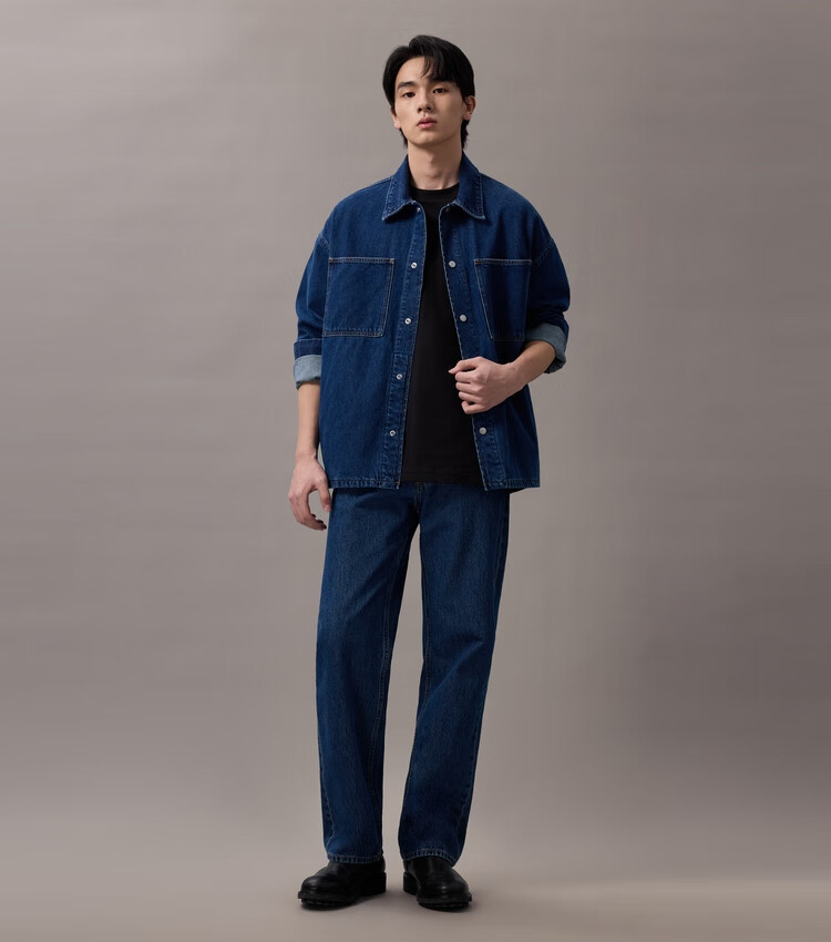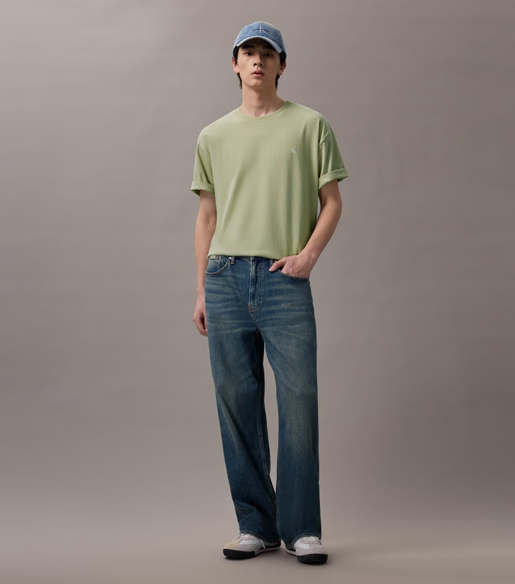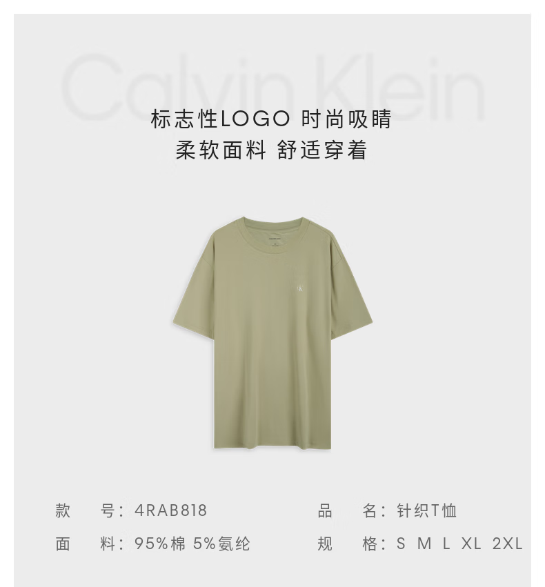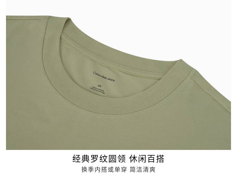 Calvin KleinJeans25夏季男士休闲简约字母ck净色宽松针织短袖T恤4RAB818 UB1-太空黑 M