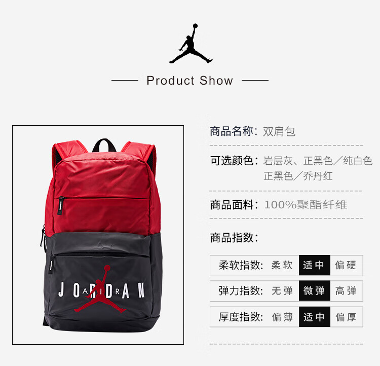 Jordan耐克AJ乔丹双肩学生书包 大容量隔层 拼接系列双肩包背包