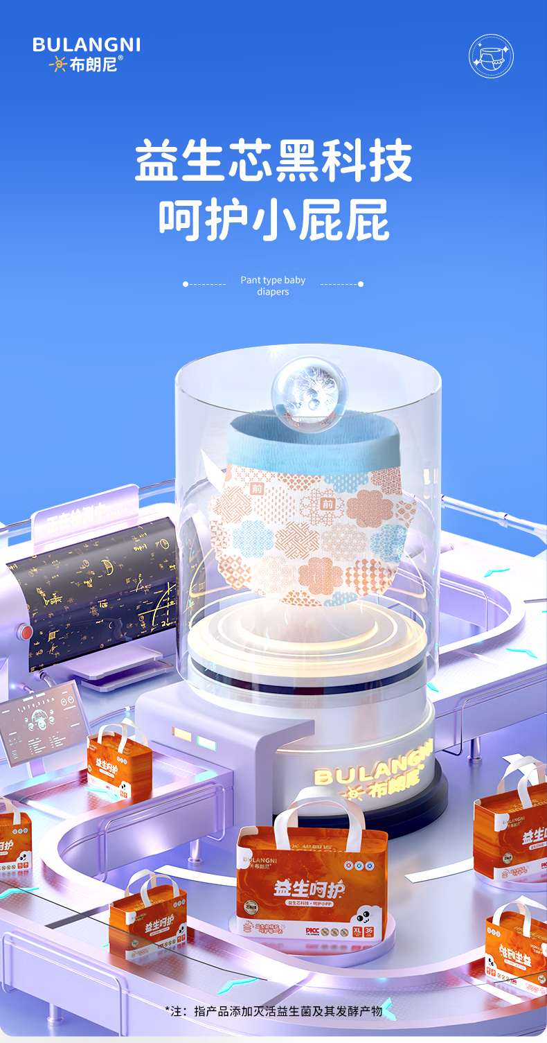 布朗尼益生呵护系列婴儿纸尿裤柔软透气宝宝尿不湿 两包纸尿裤S码84片6-9斤