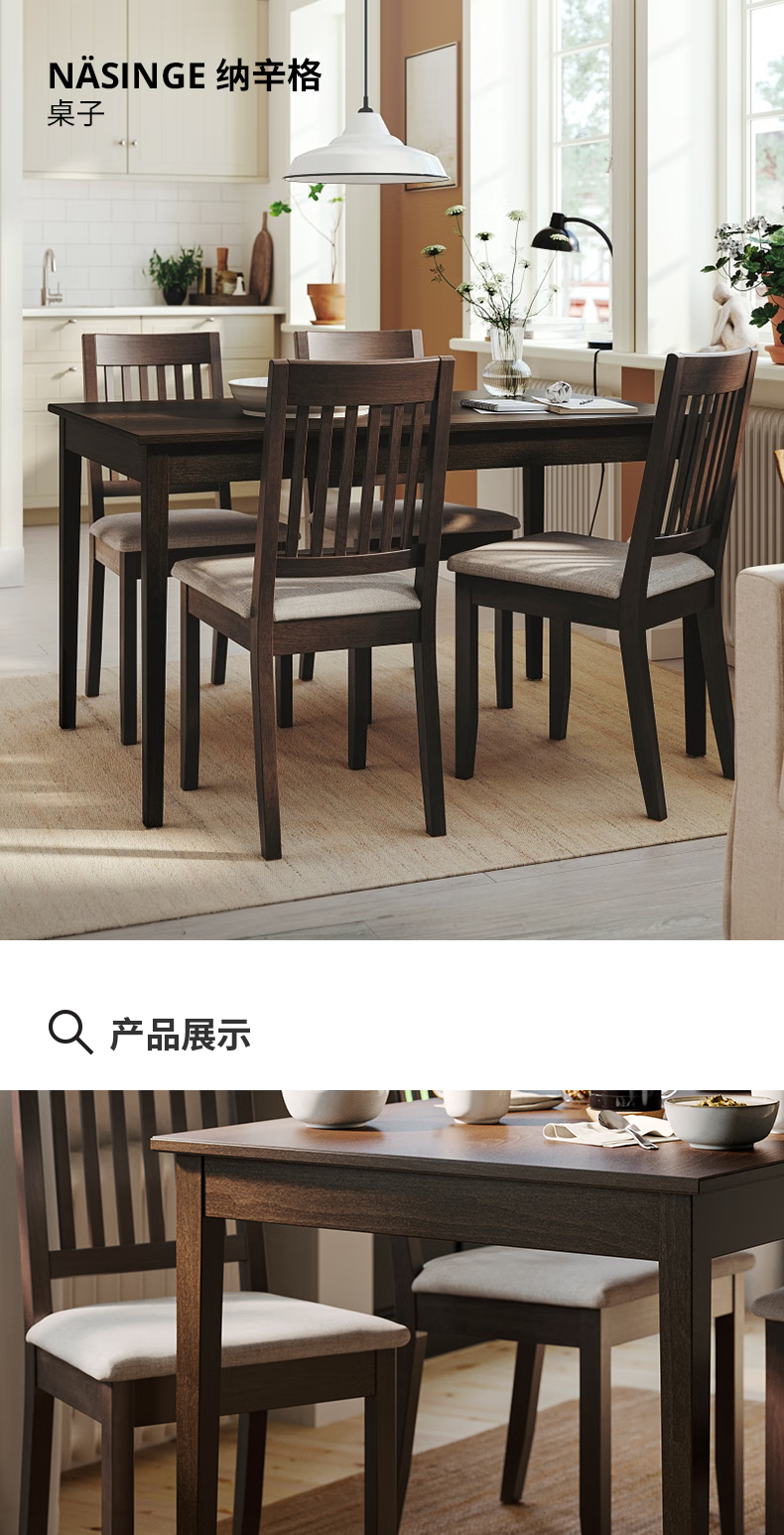 宜家(IKEA)NASINGE纳辛格桌子多人餐桌简约大长桌客厅家用桌 深褐色桌子130x80cm