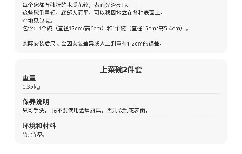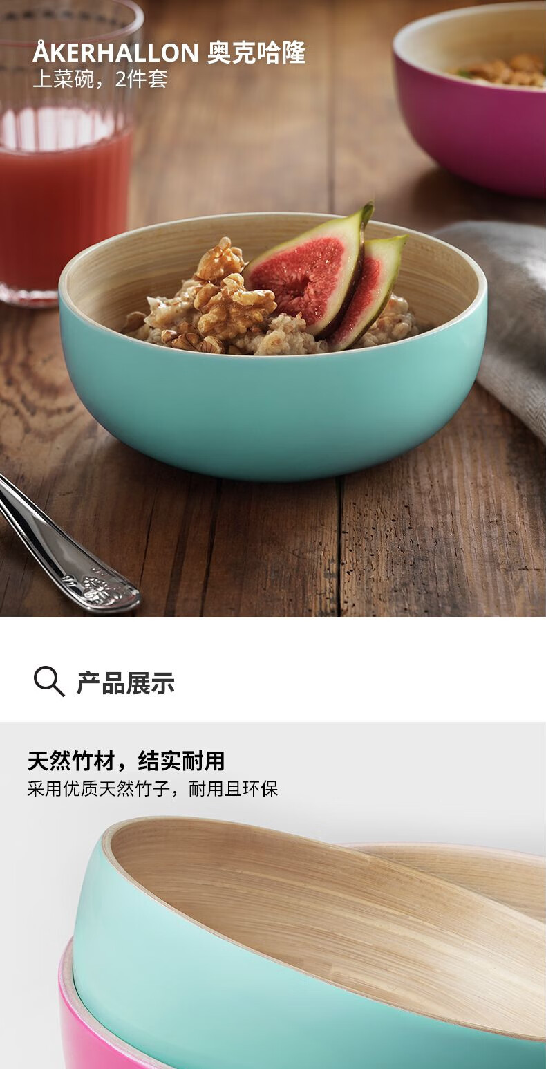 宜家(IKEA)【新品】AKERHALLON奥克哈隆上菜碗沙拉碗零食碗家用 竹上菜碗2件套