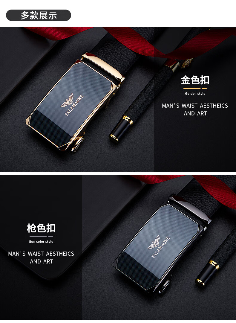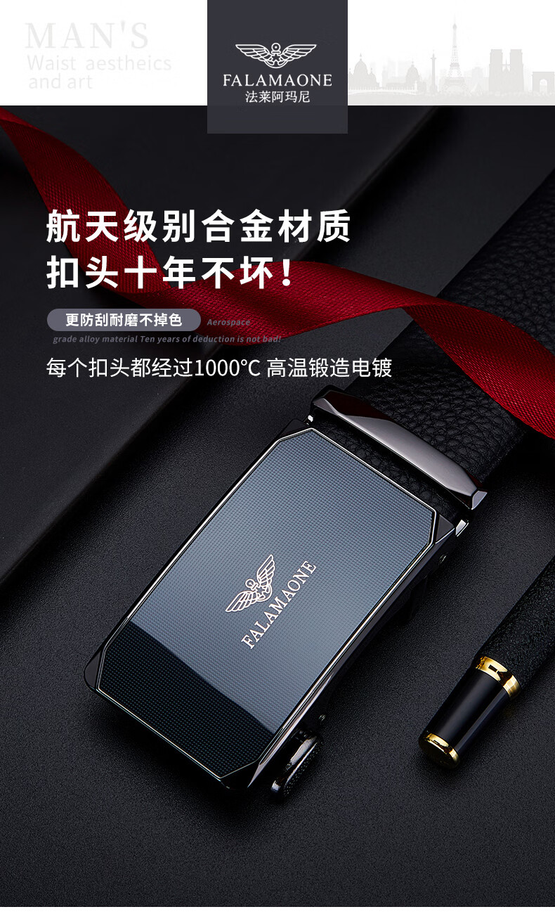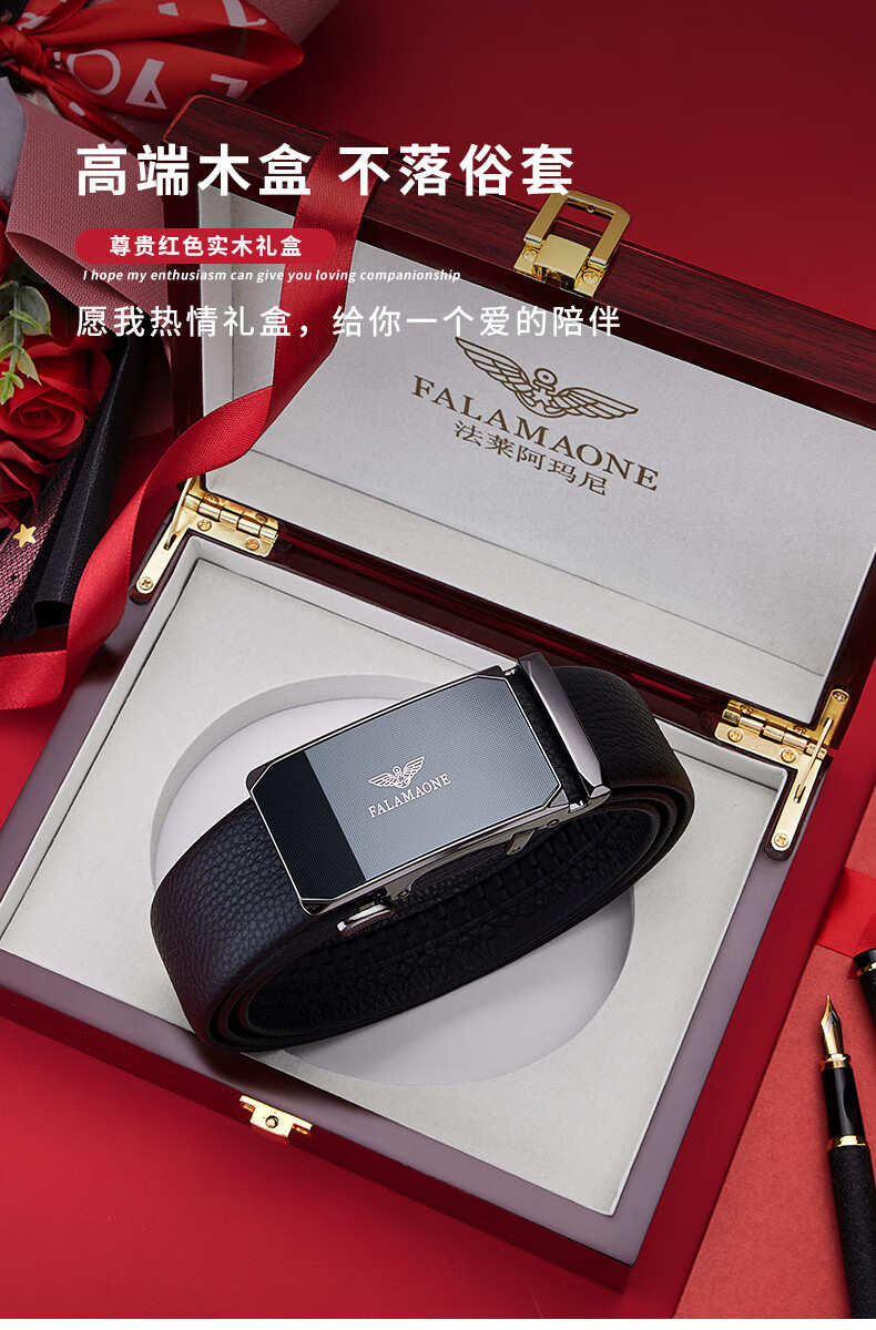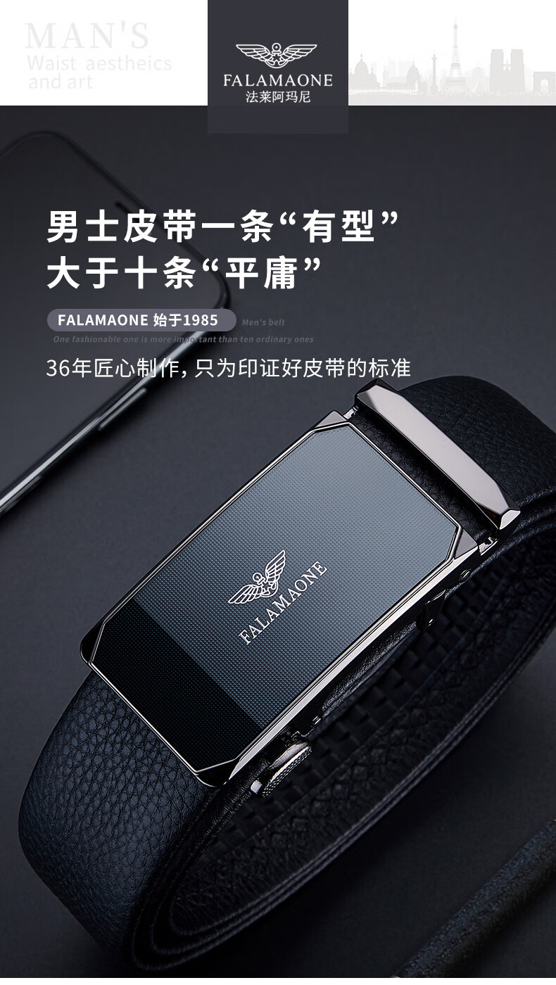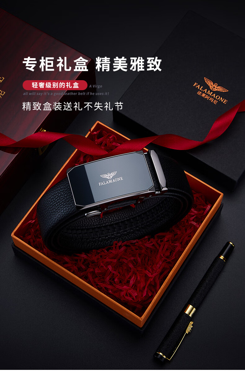 法莱阿玛尼(FALAMAONE)皮带内穿真皮自动扣腰带高端内扣不露尾裤带生日礼物送男友老公 内扣式/PD809Q黑色【专柜礼盒】 110cm -140cm默认随机(可修剪)