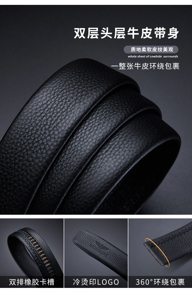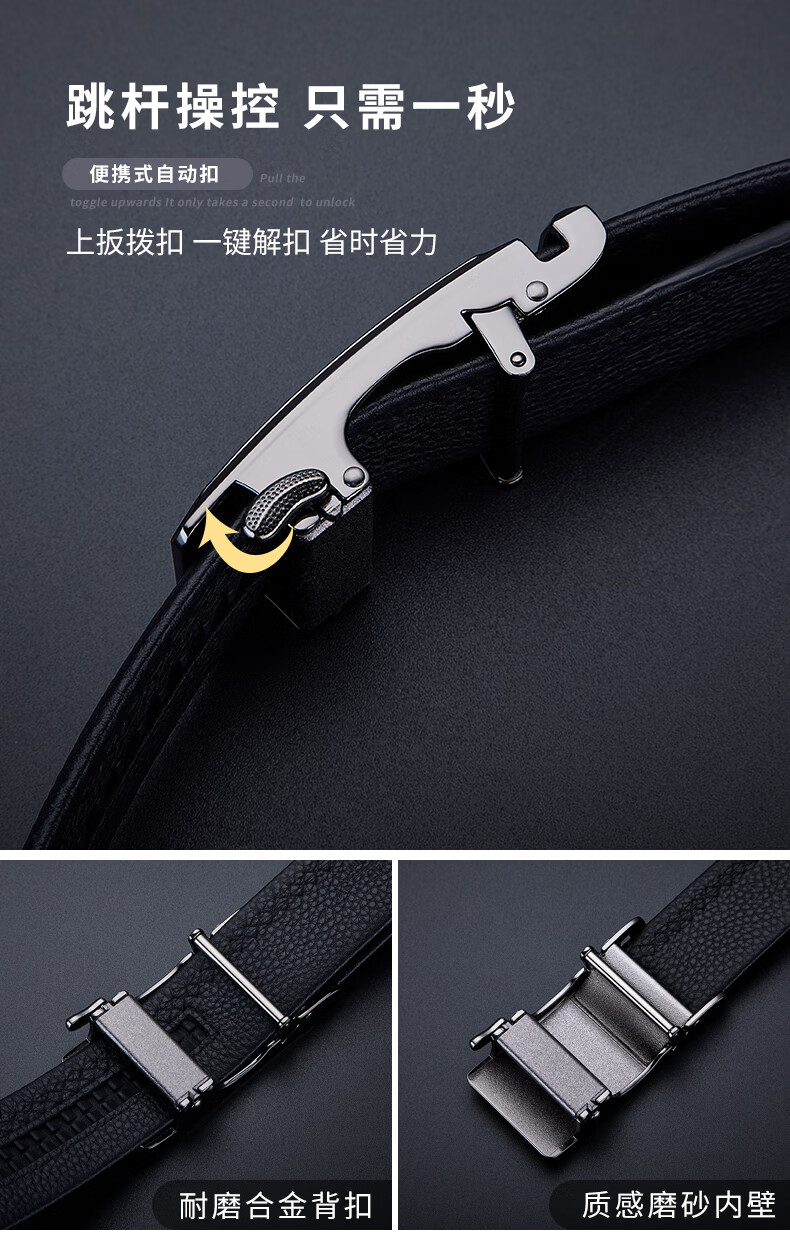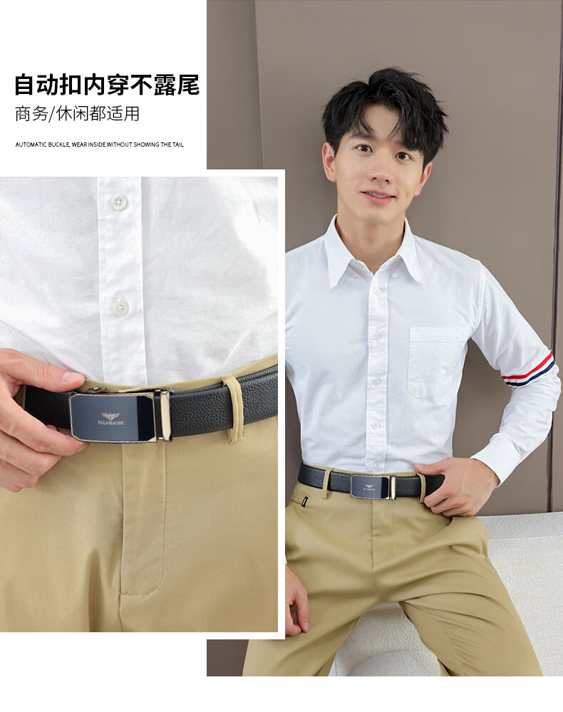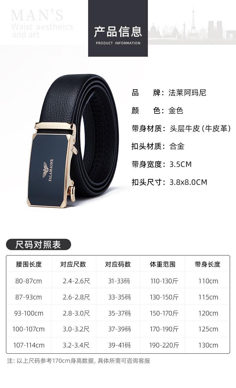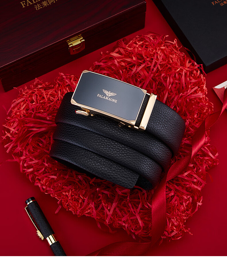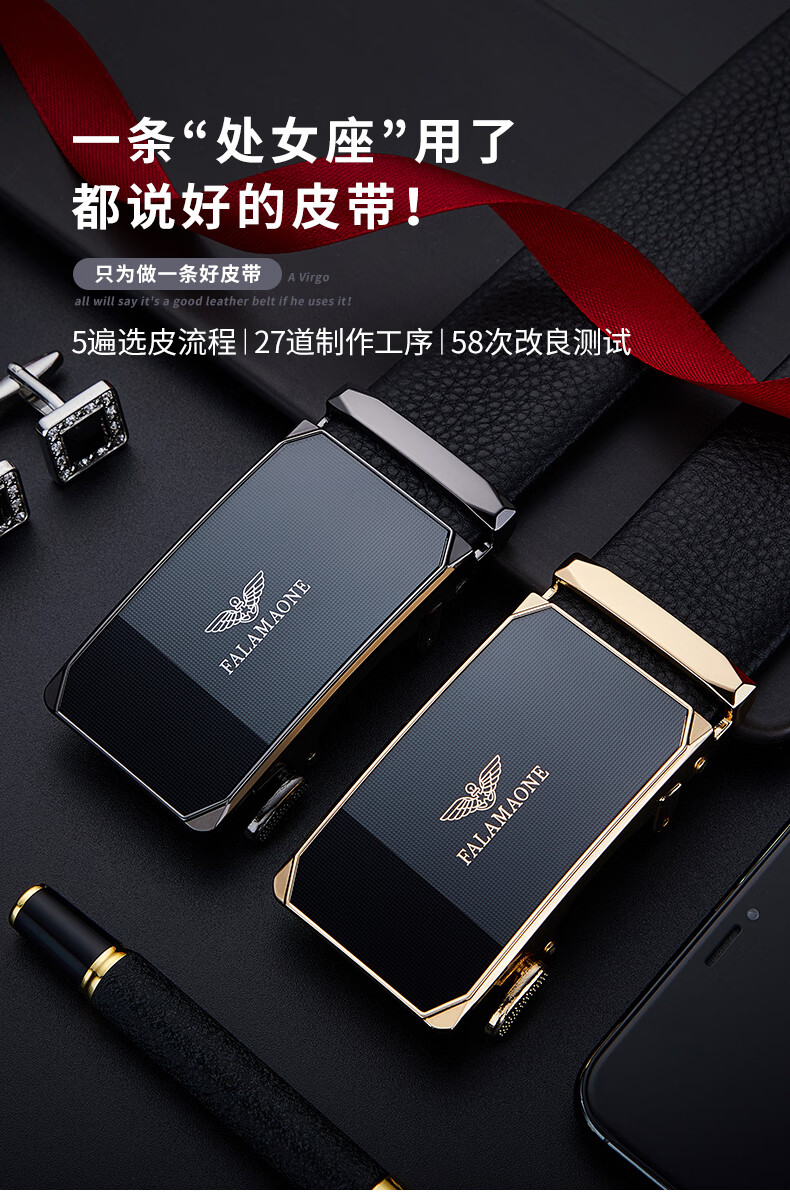 法莱阿玛尼(FALAMAONE)皮带内穿真皮自动扣腰带高端内扣不露尾裤带生日礼物送男友老公 内扣式/PD809Q黑色【专柜礼盒】 110cm -140cm默认随机(可修剪)