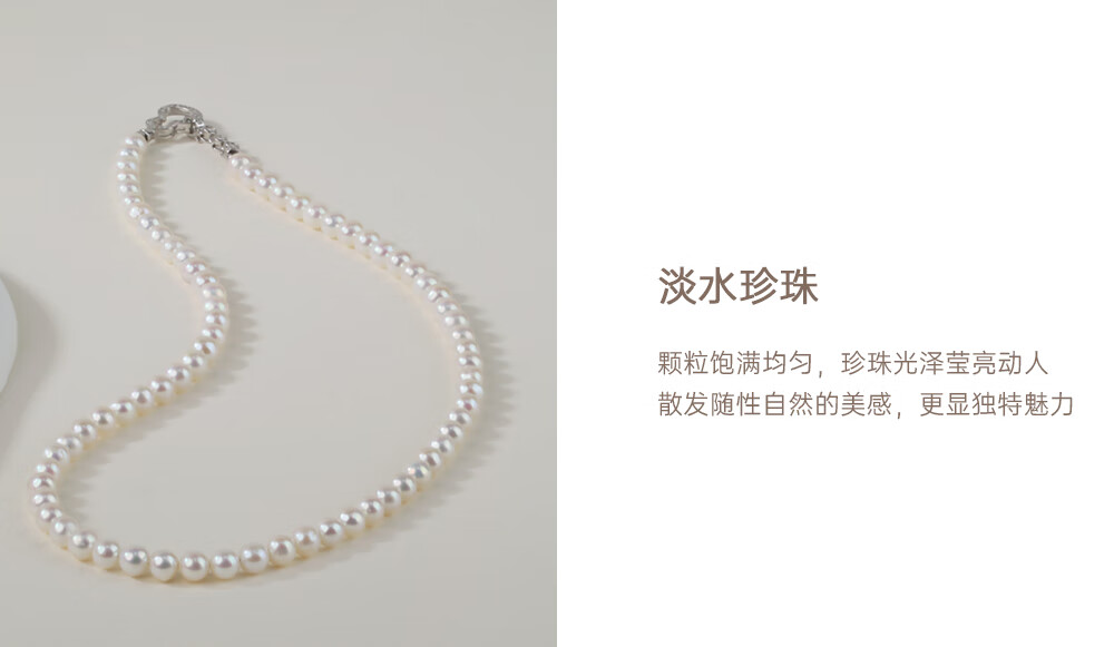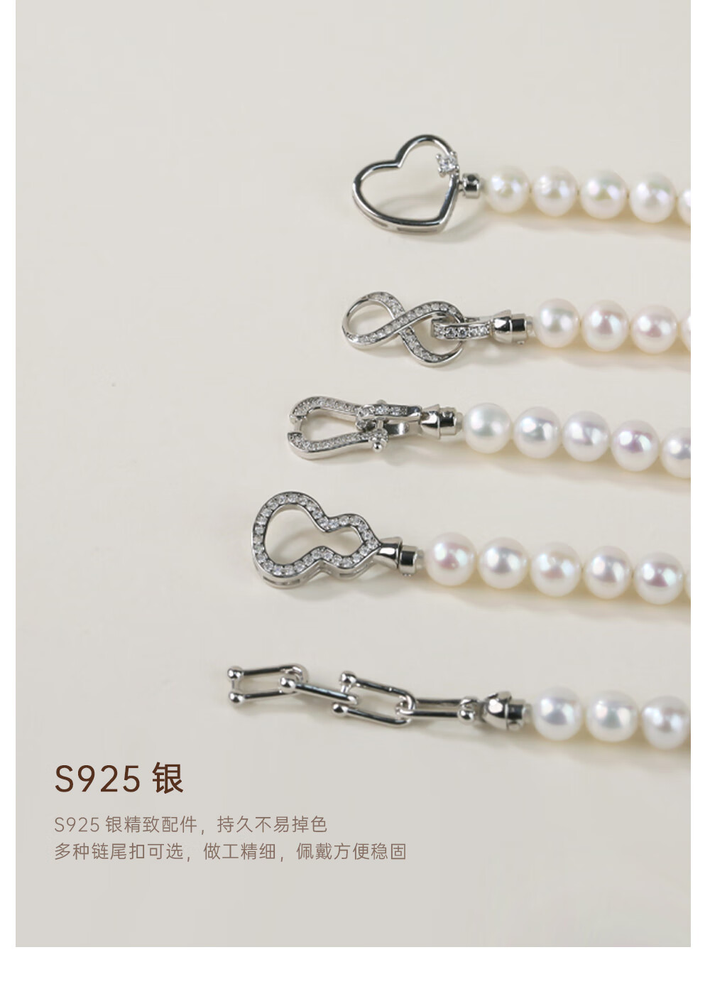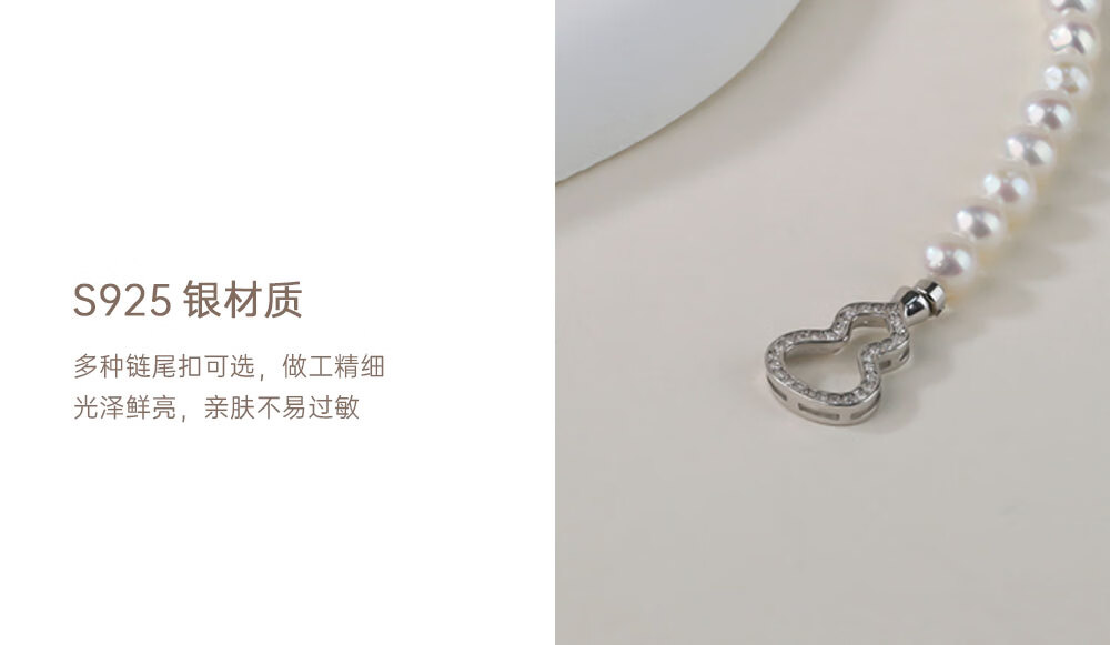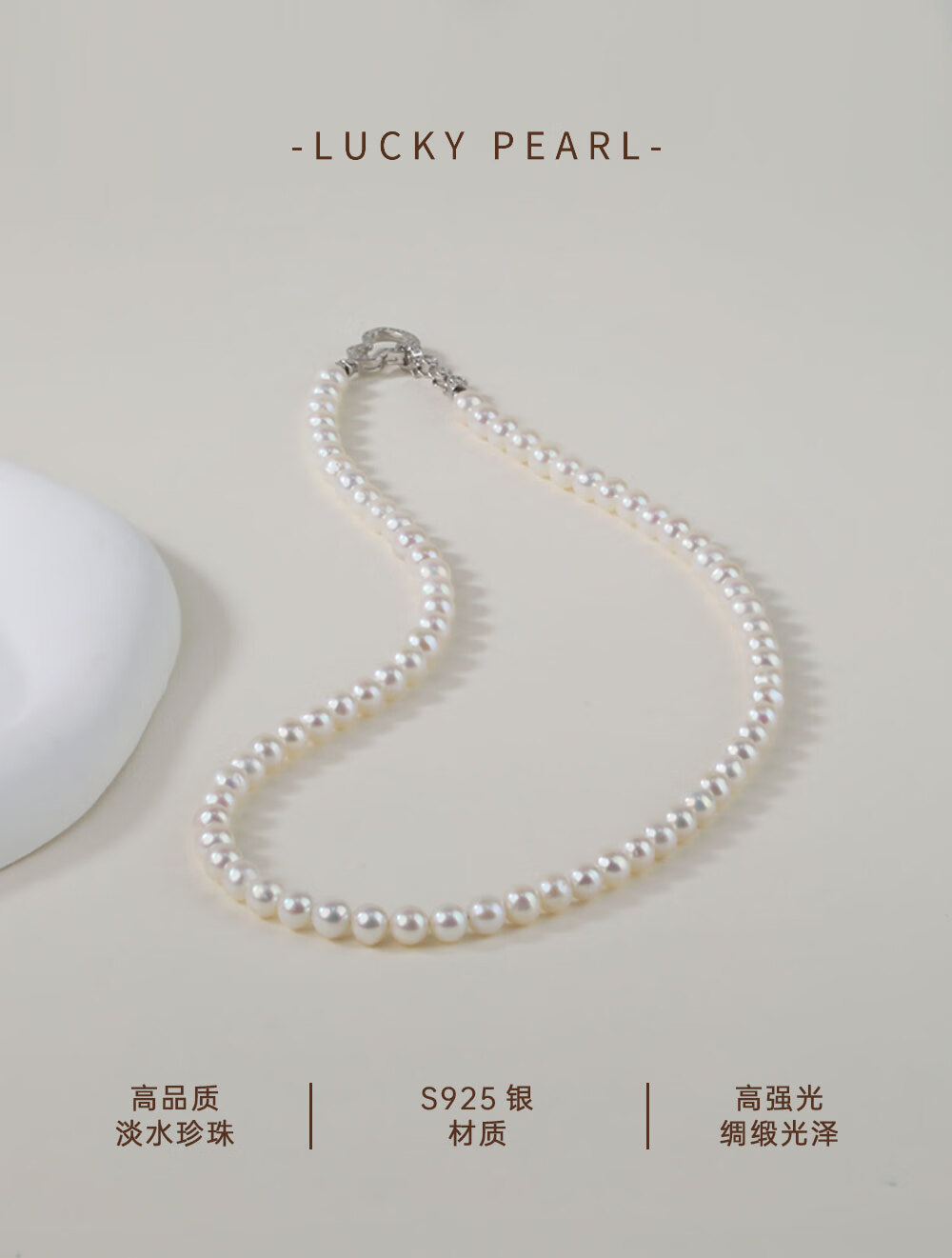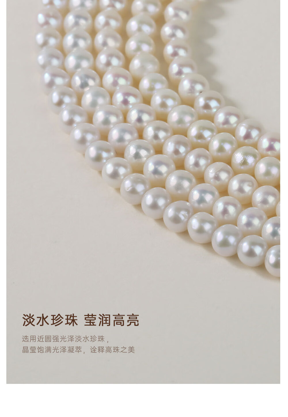 有幸珍珠项链 925银淡水珍珠项链近圆强光泽全珠链送长辈妈妈礼物 5.5-6mm 近圆/强光 【葫芦扣】