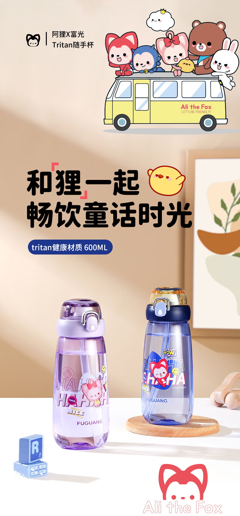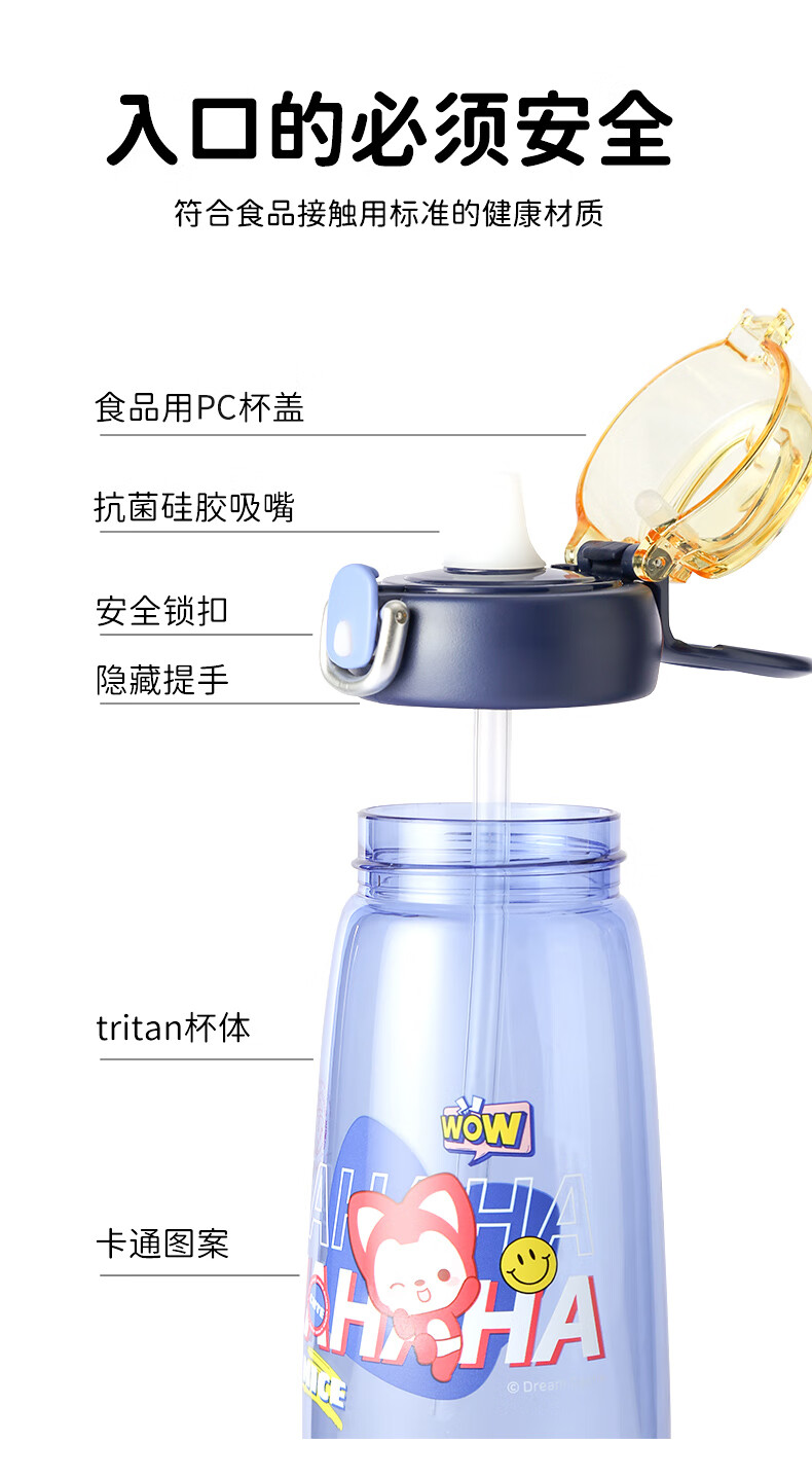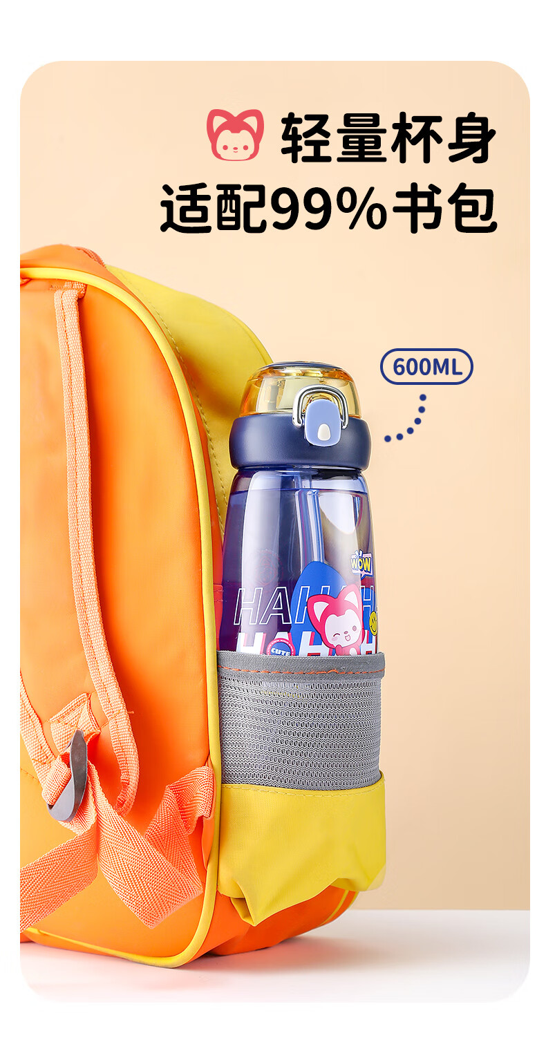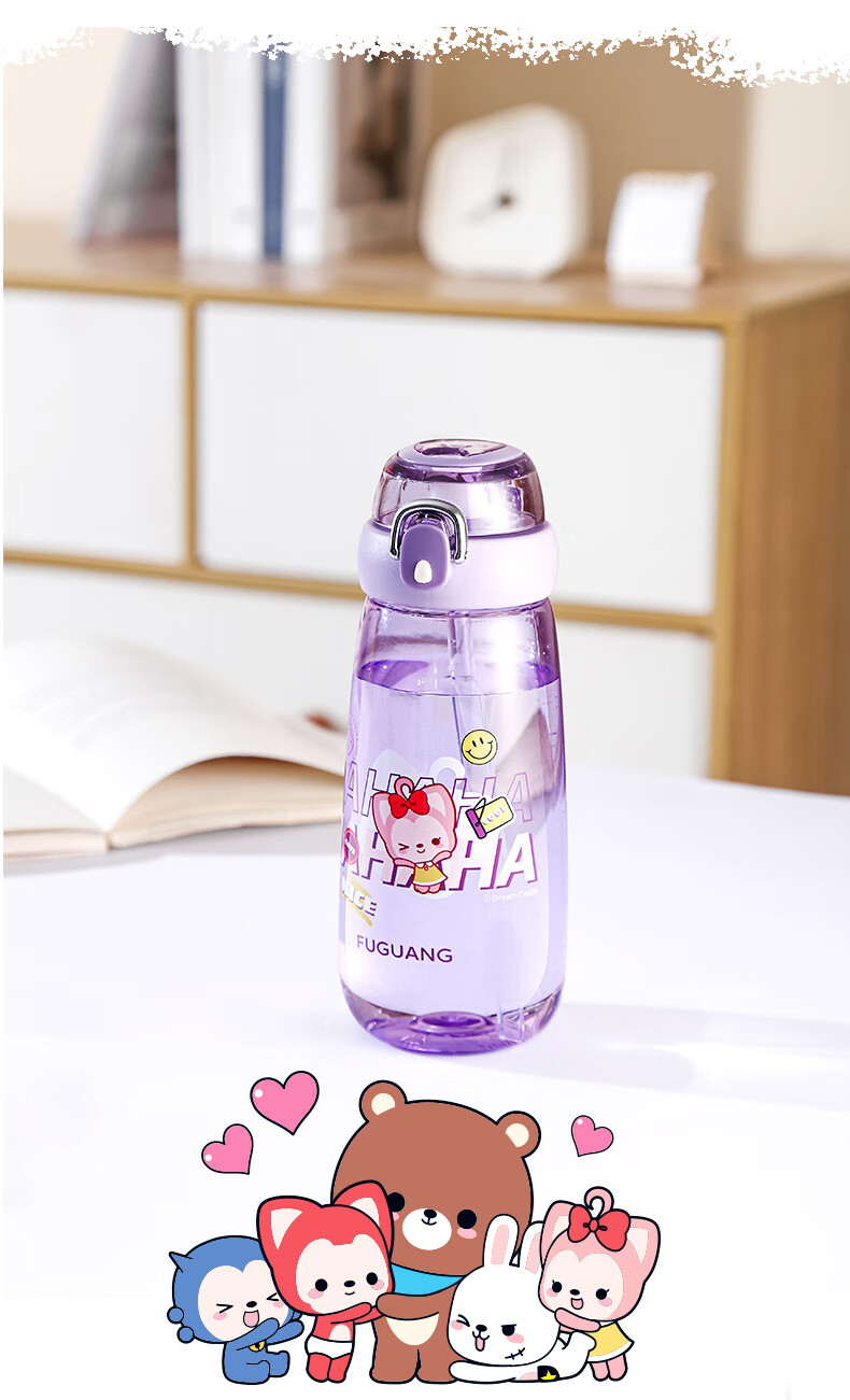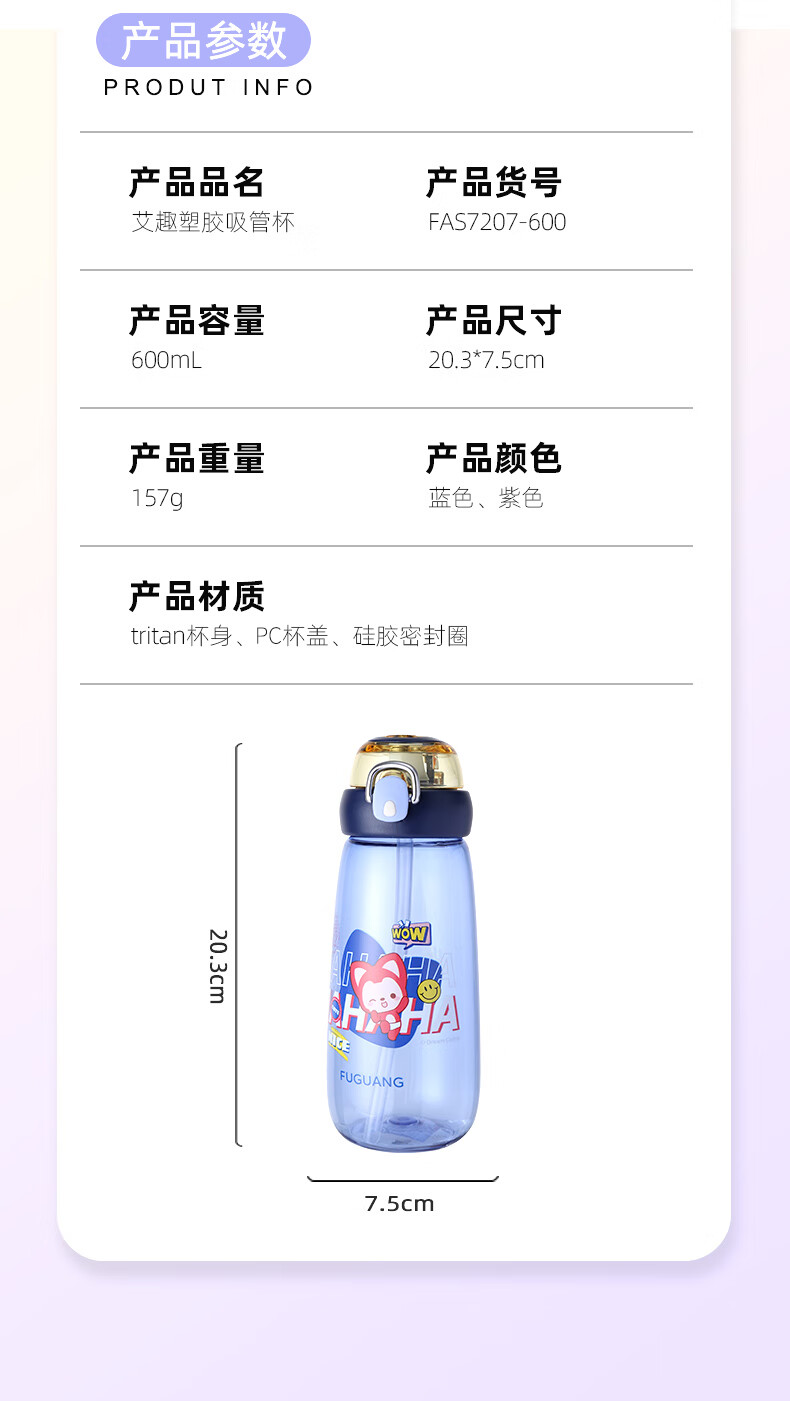 富光塑料杯儿童水杯吸管杯大容量tritan材质学生便携随手便携杯子 600ml蓝色