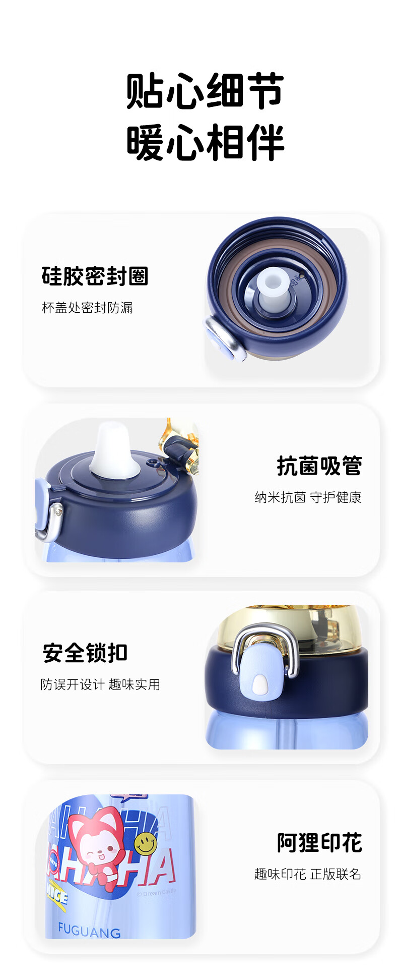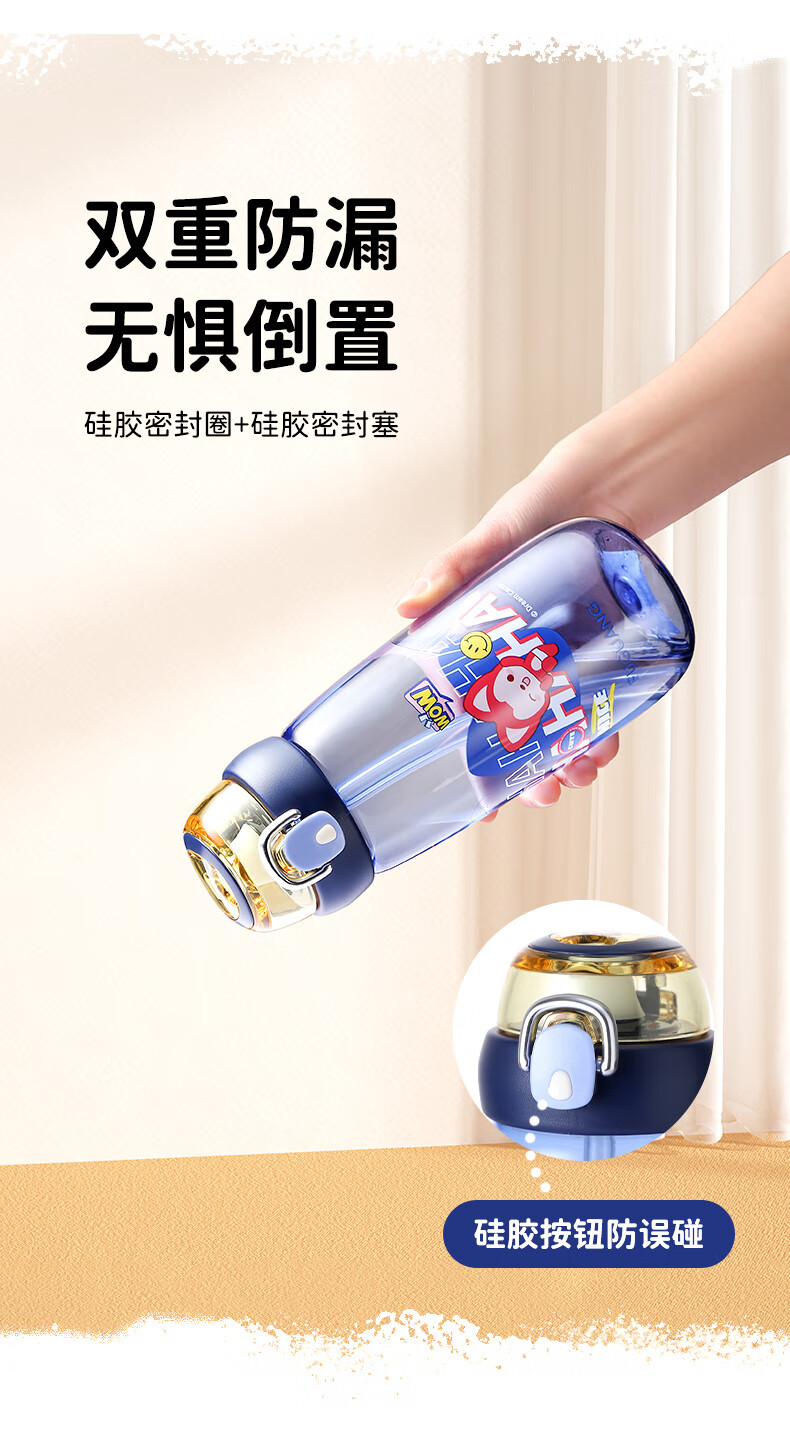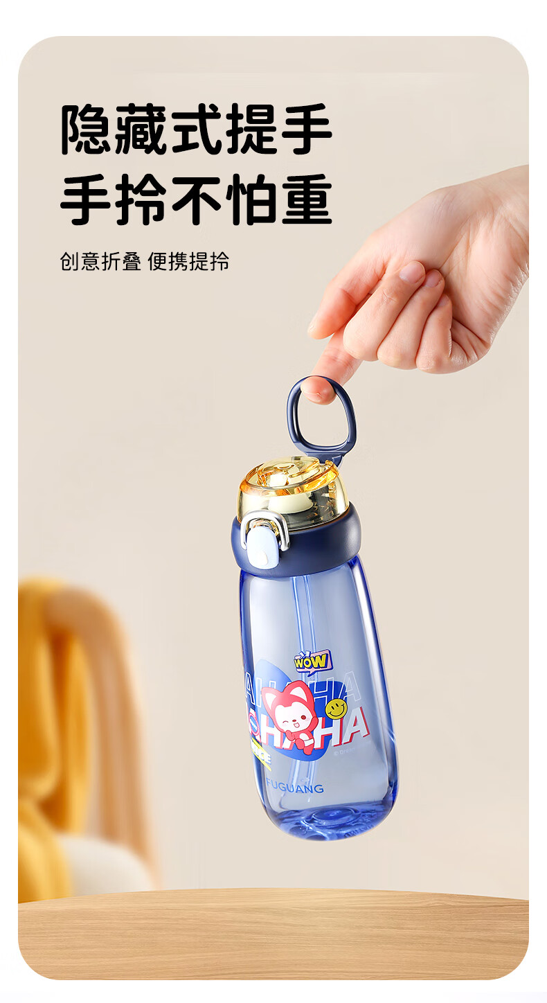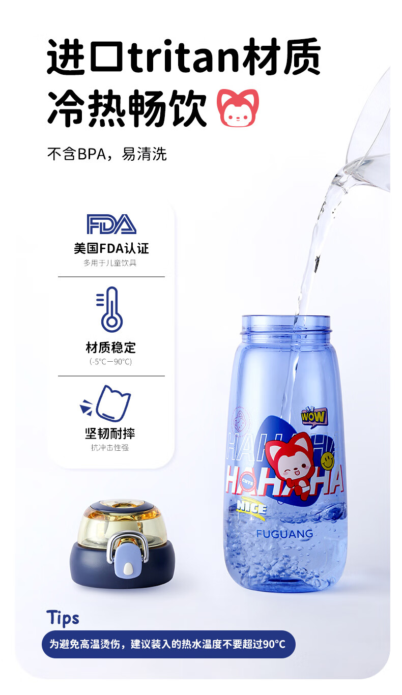 富光塑料杯儿童水杯吸管杯大容量tritan材质学生便携随手便携杯子 600ml蓝色