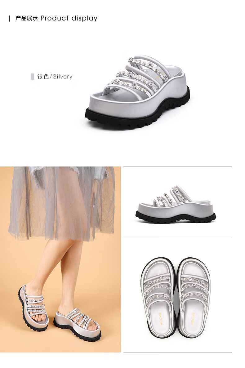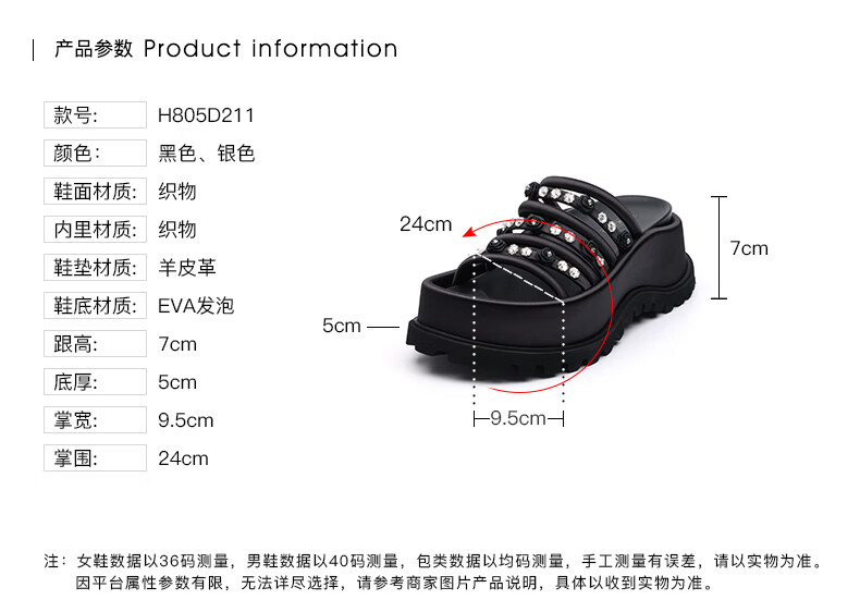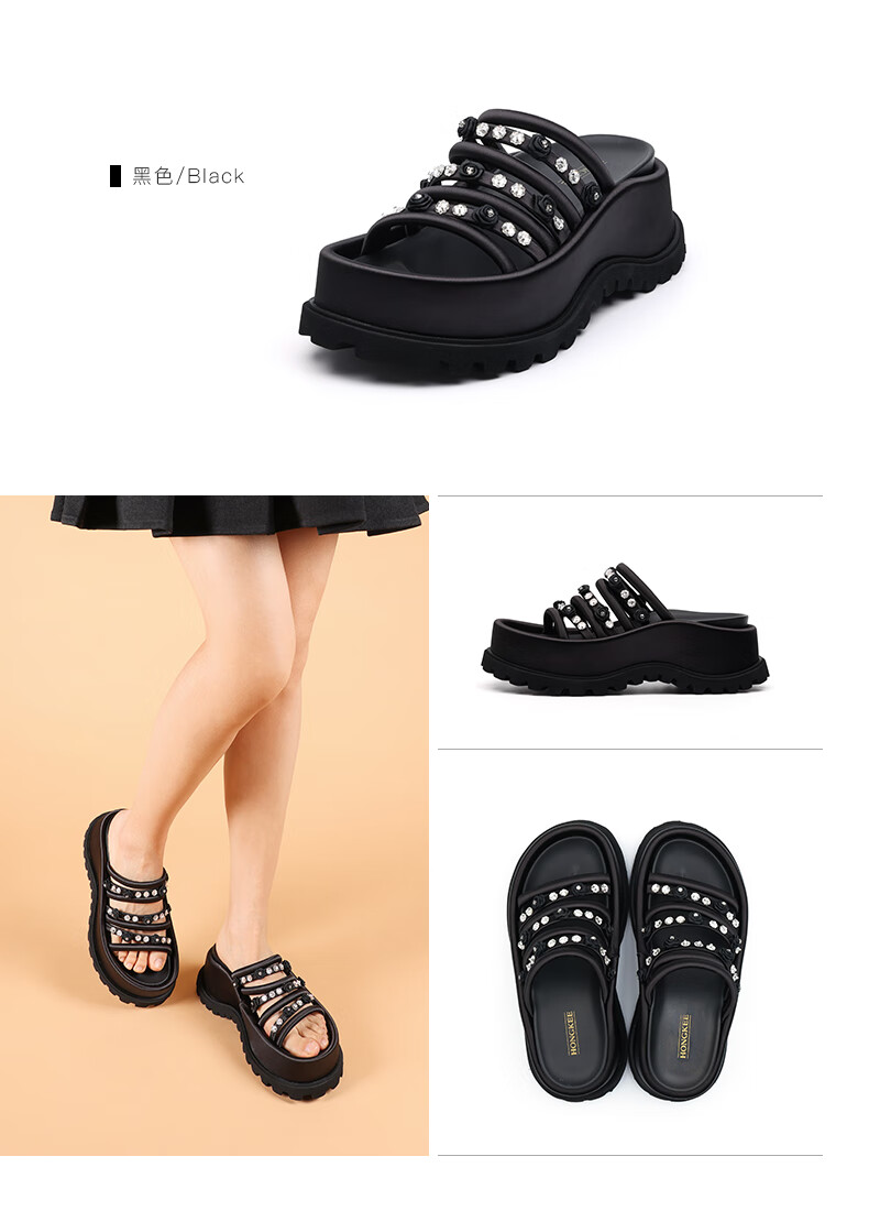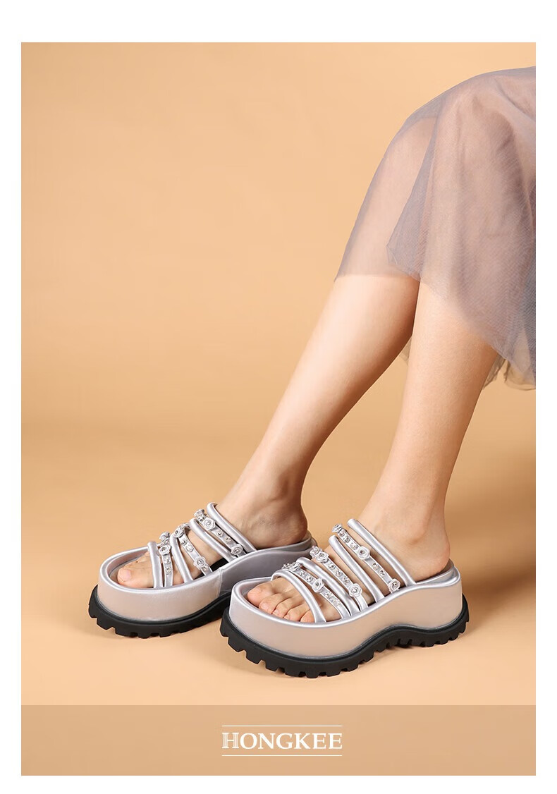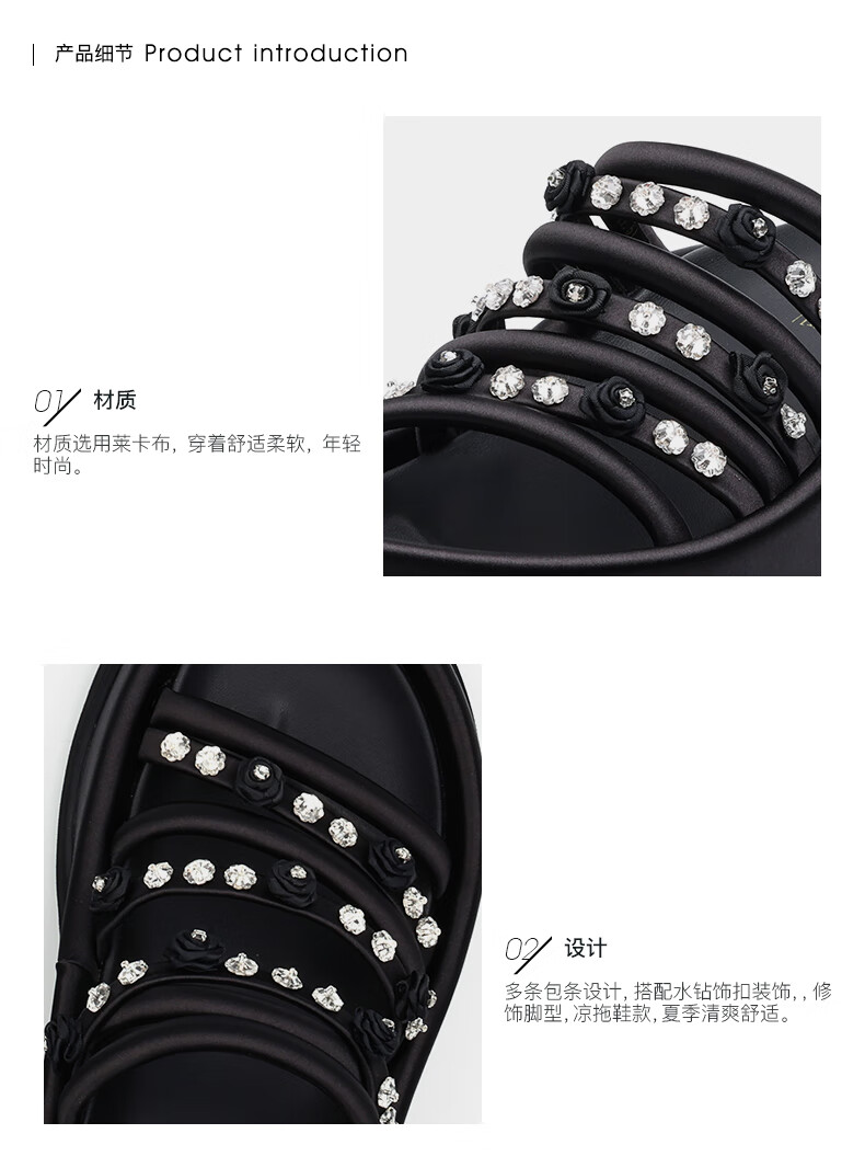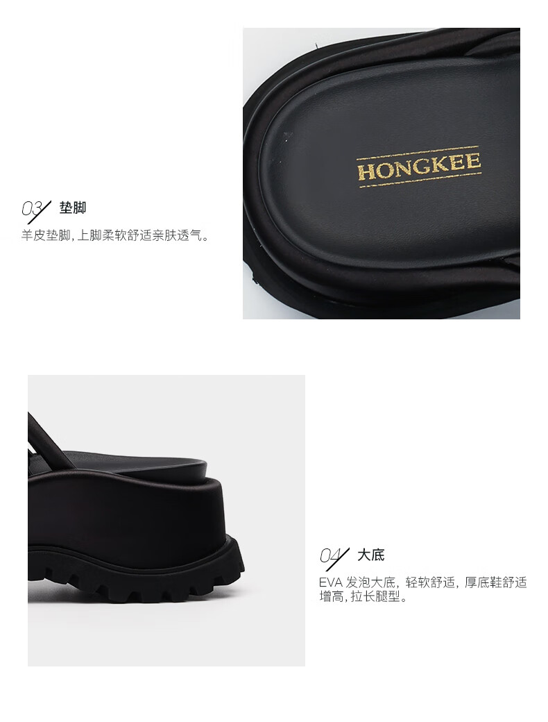 红科(HONGKEE)2025年夏季外穿露趾厚底凉拖水钻饰扣优雅时尚罗马凉鞋H805D211 黑色 39