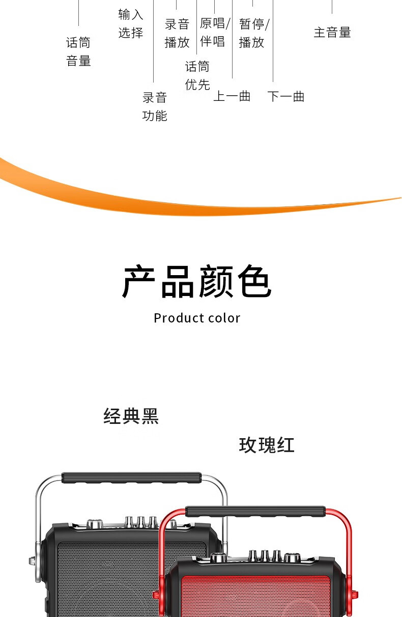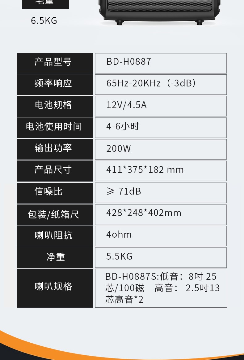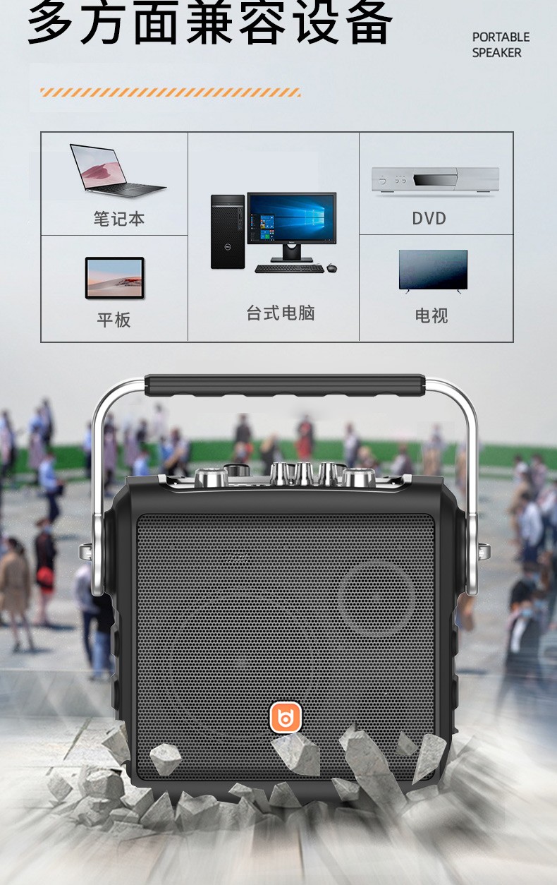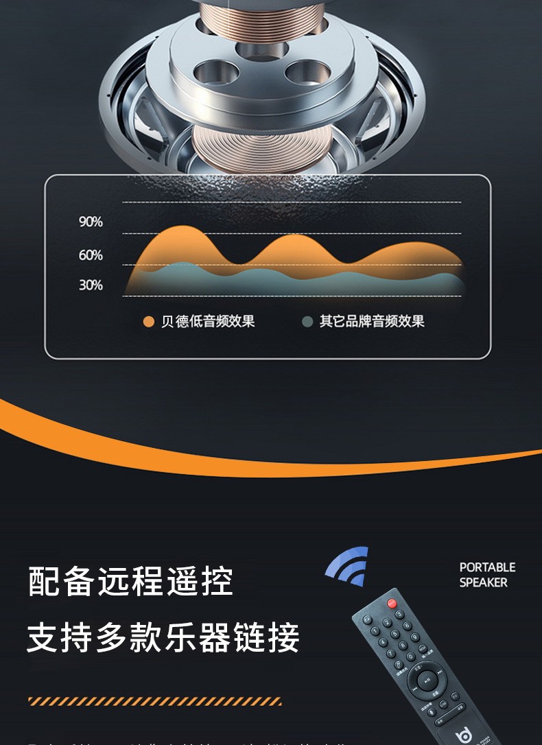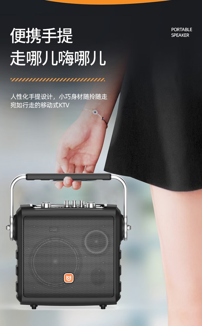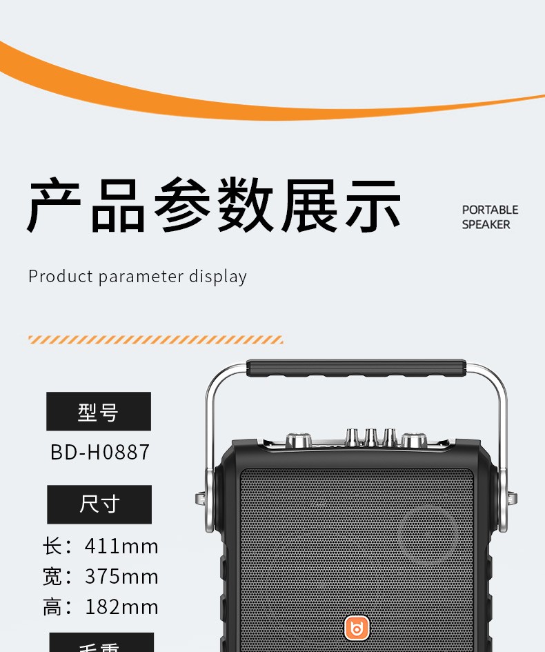 贝德手提广场舞音响户外K歌网红直播移动便携式蓝牙音箱大功率低音炮家用唱歌扩音播放器带话筒 BD-H0887C【黑+8寸+单调频麦】