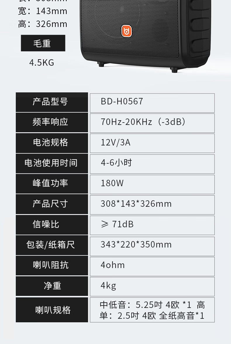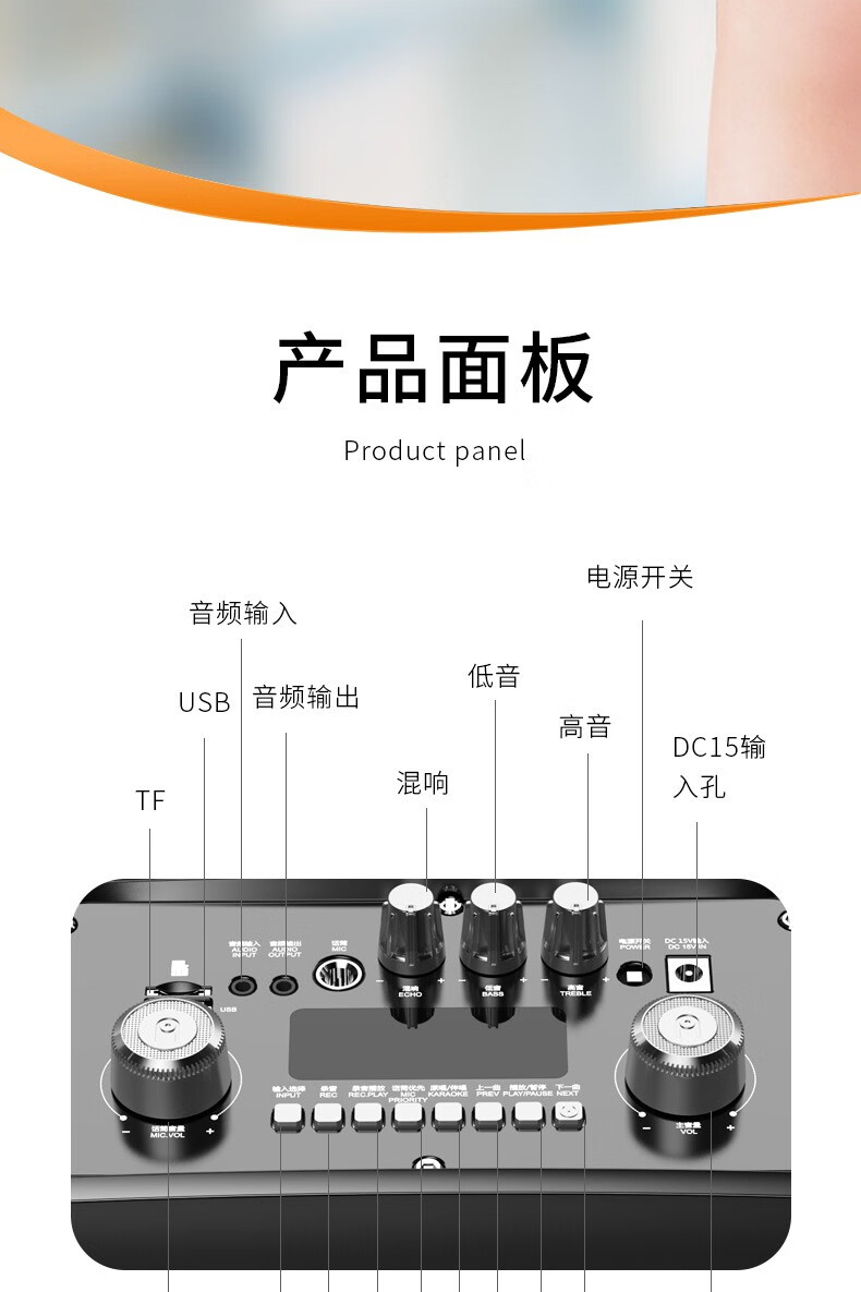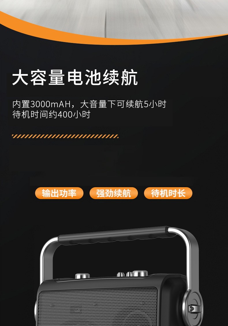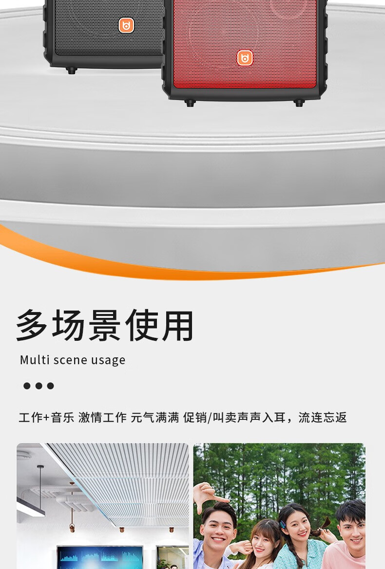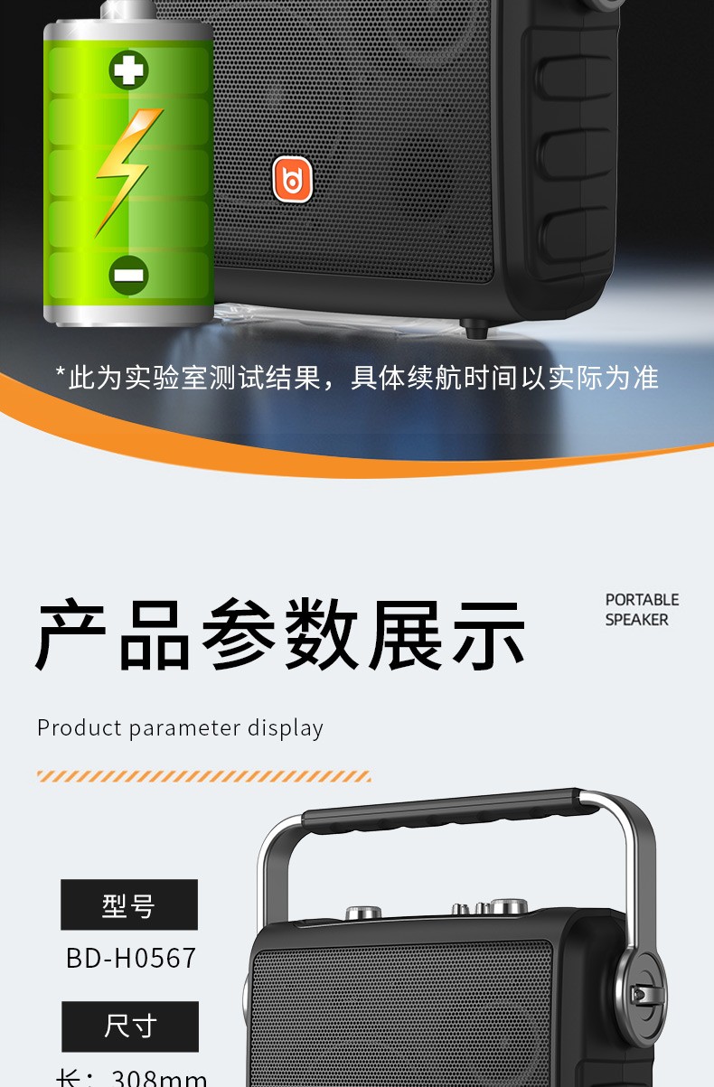 贝德手提广场舞音响户外K歌网红直播移动便携式蓝牙音箱大功率低音炮家用唱歌扩音播放器带话筒 BD-H0887C【黑+8寸+单调频麦】