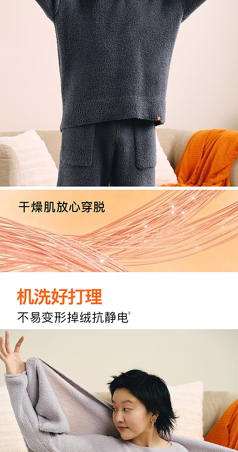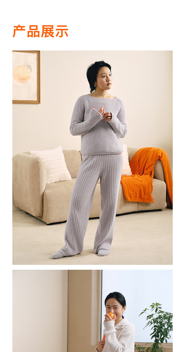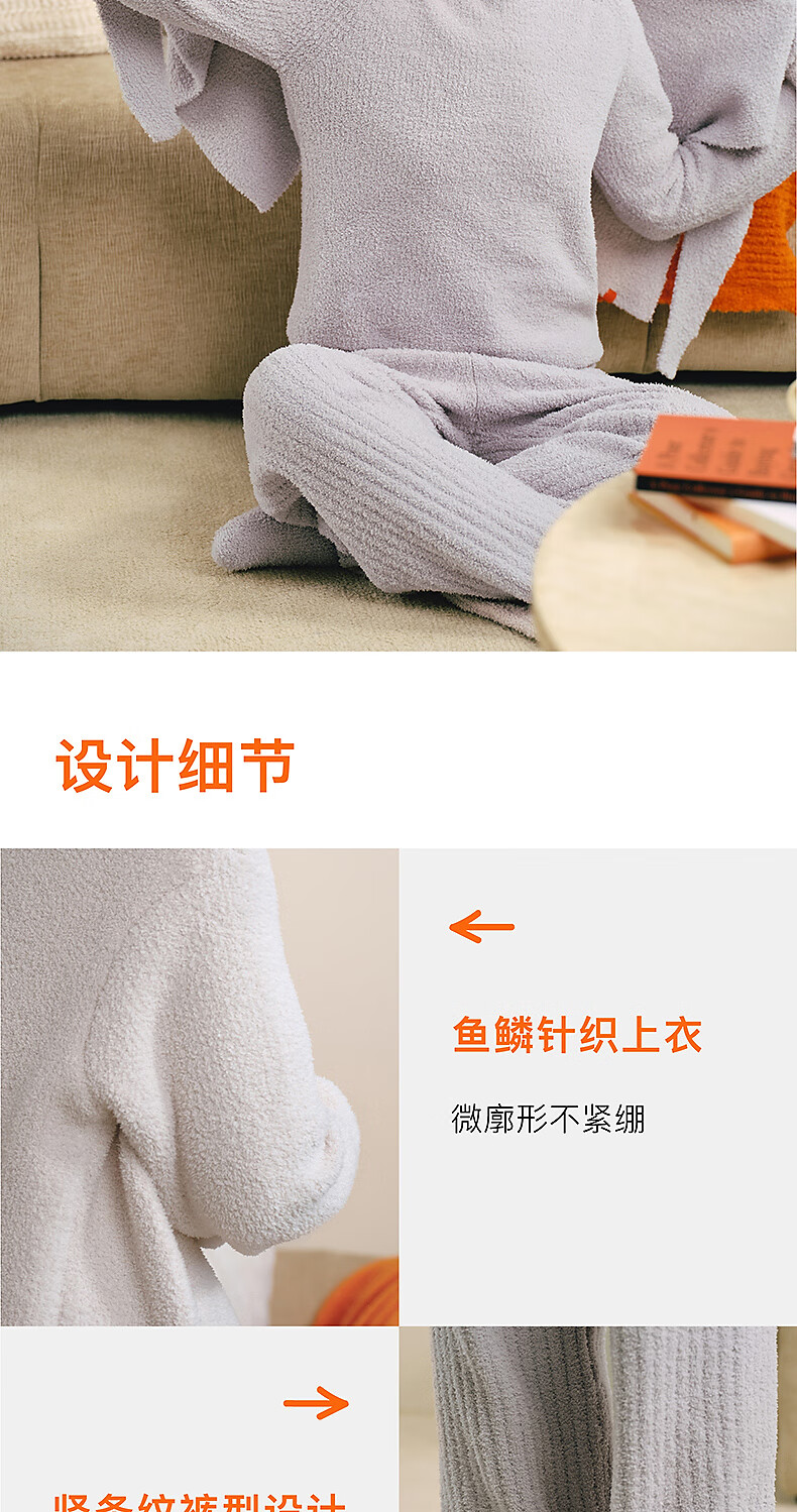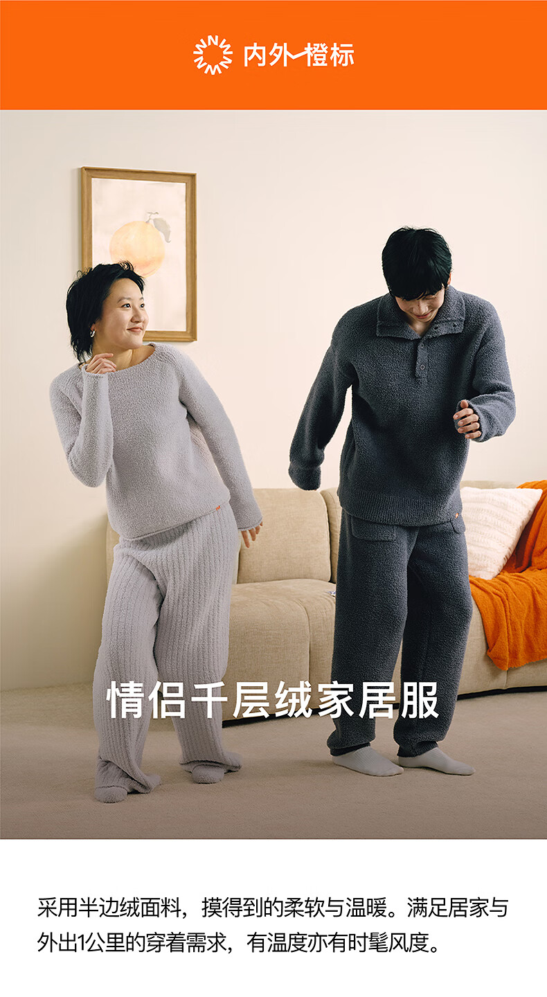 内外橙标情侣千层绒圆领高领睡衣家居服套装可外穿保暖半边绒 女士高领-桦木米 L (女120-130斤,男130-150斤)