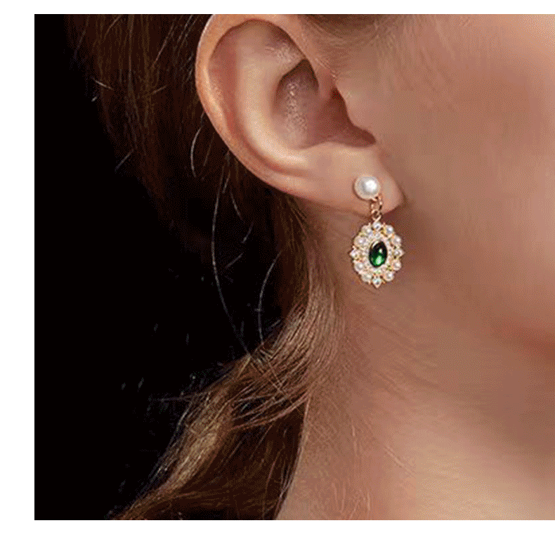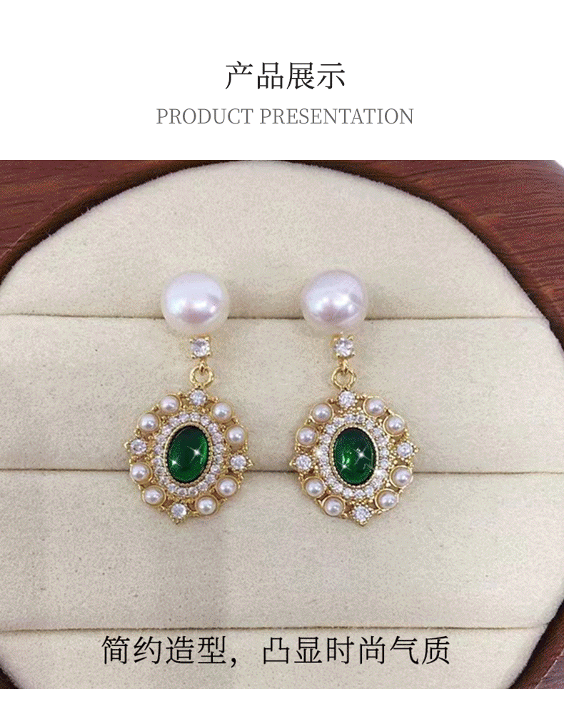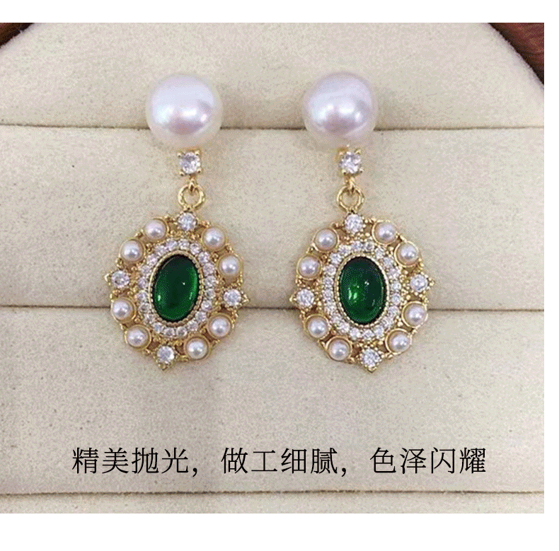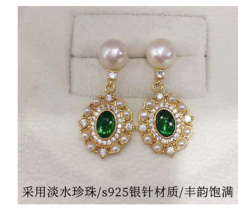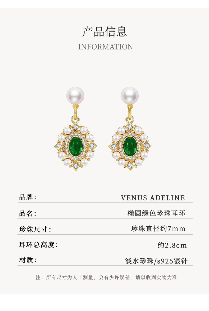 VENUS ADELINE淡水珍珠耳环女银针绿色耳饰秋冬高级感轻奢气质耳钉妈妈老婆耳坠 白色珍珠送女友妈妈闺蜜生日礼物 银针首饰长辈实用浪漫纪念日礼盒