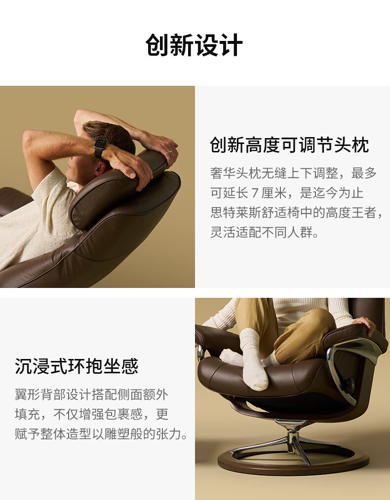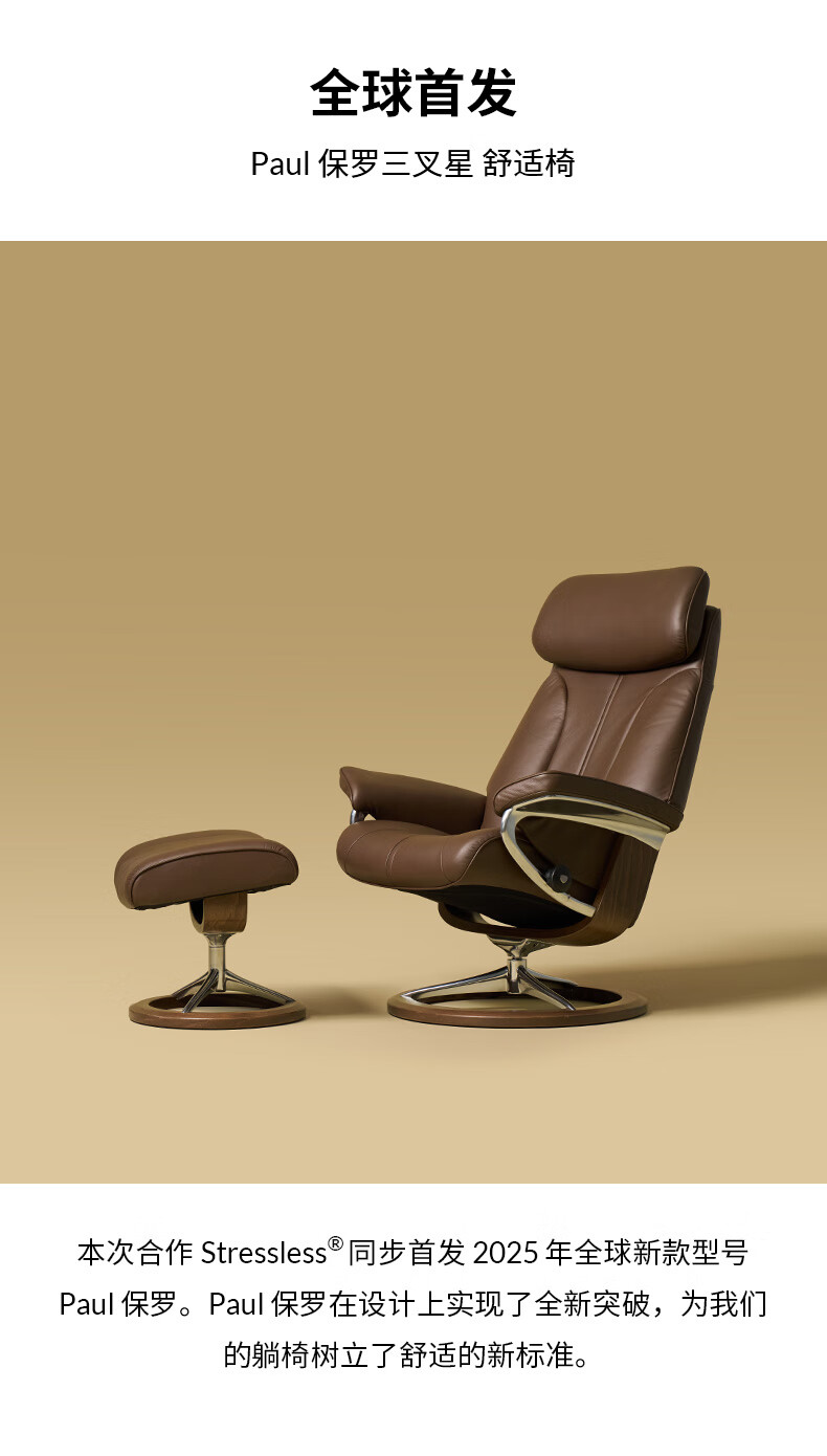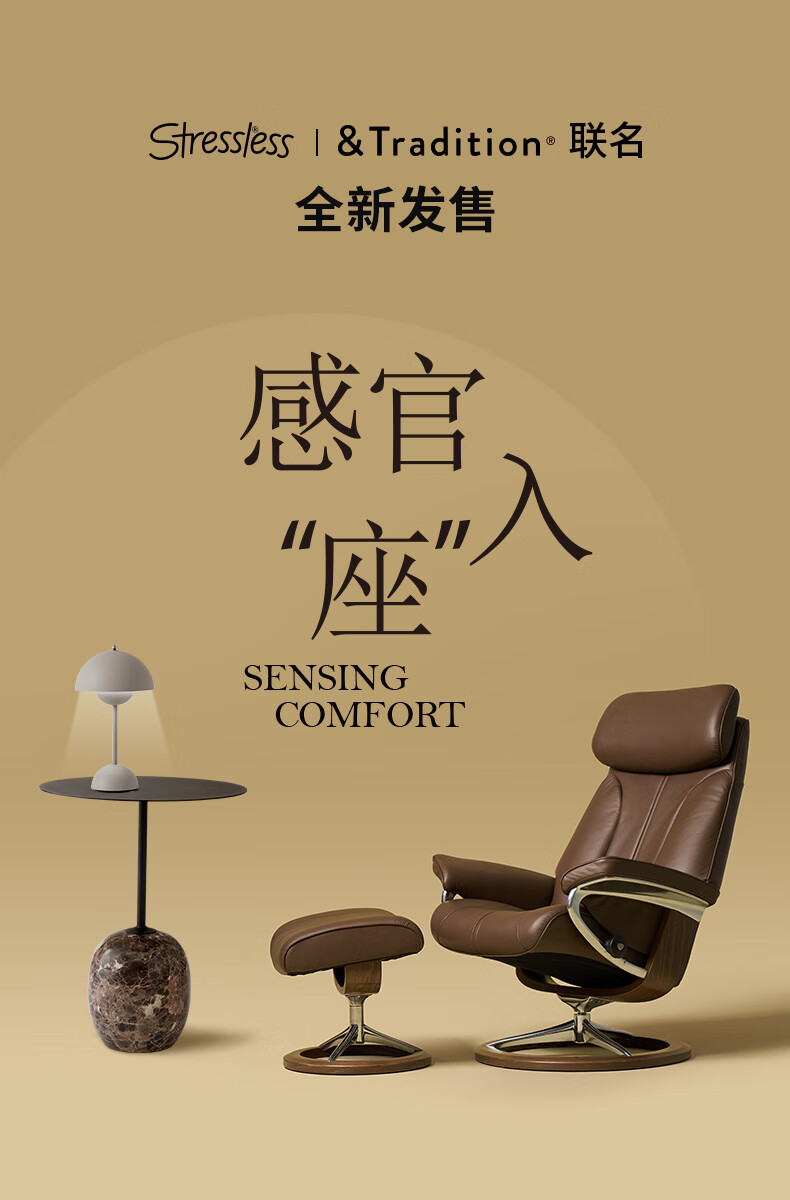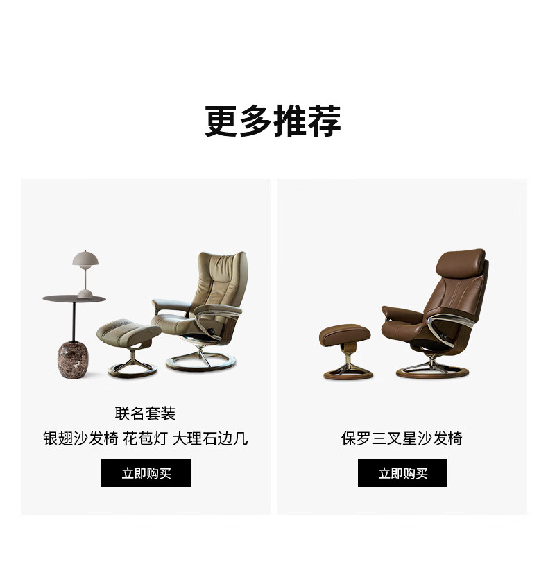 思特莱斯(Stressless)× ATD联名 Paul保罗沙发椅花苞灯大理石边几套装 保罗栗子色-花苞灯-大理石边几