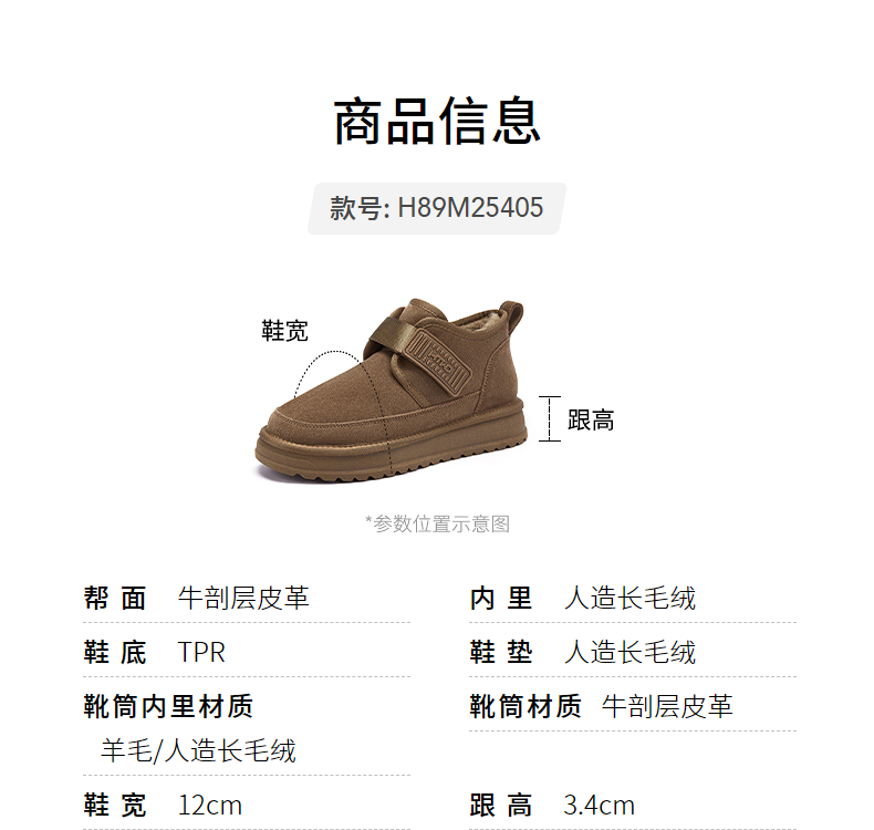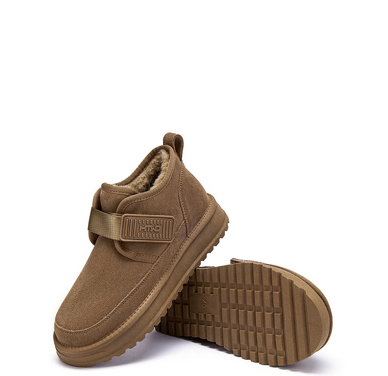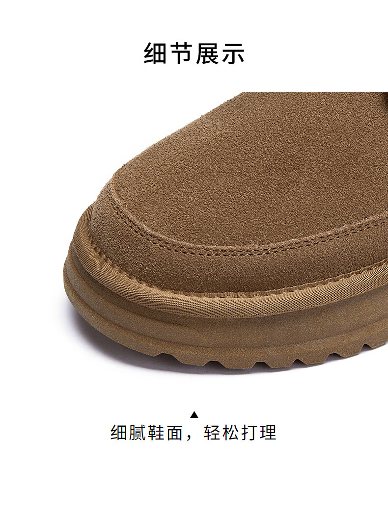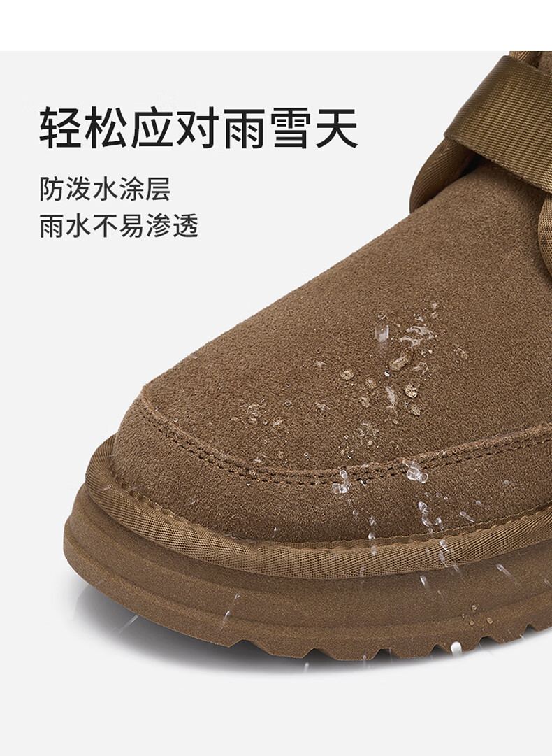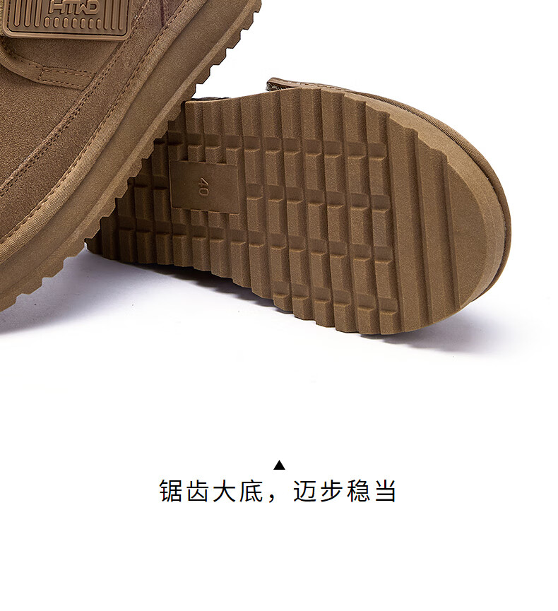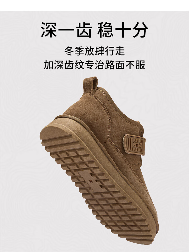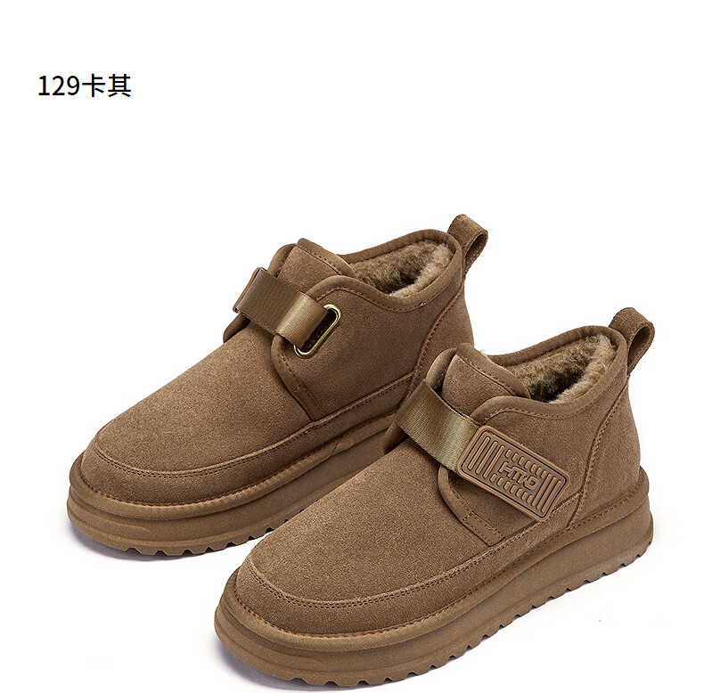 热风【商场同款】男鞋2025年冬季新款保暖加绒复古雪地靴厚底休闲靴子 129卡其 38