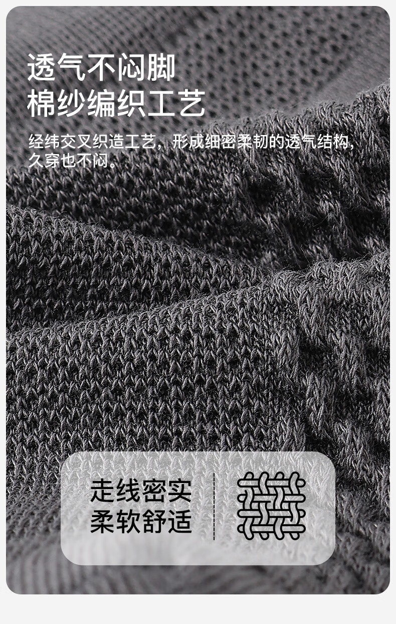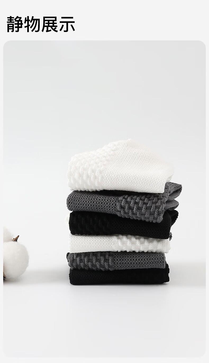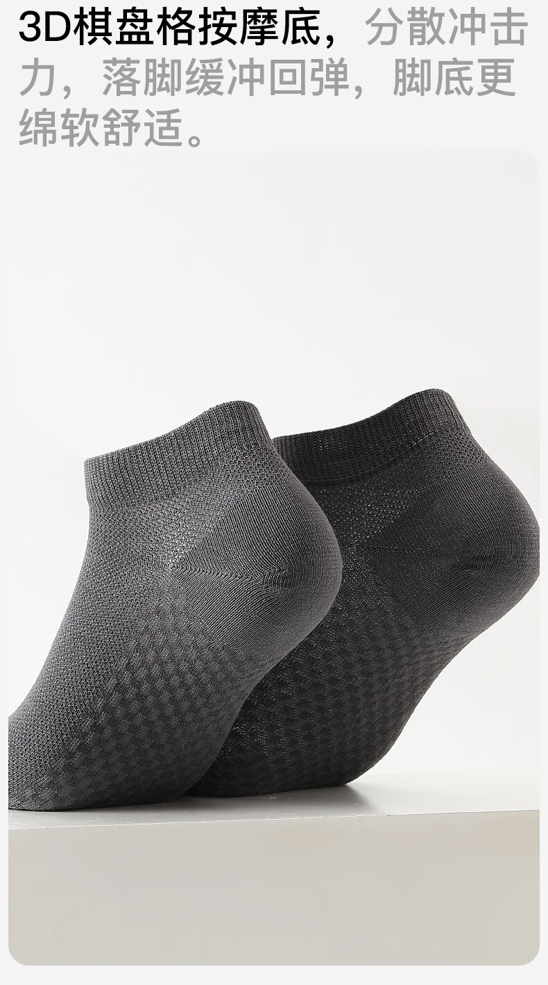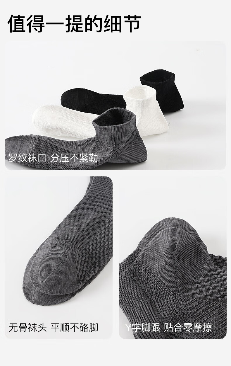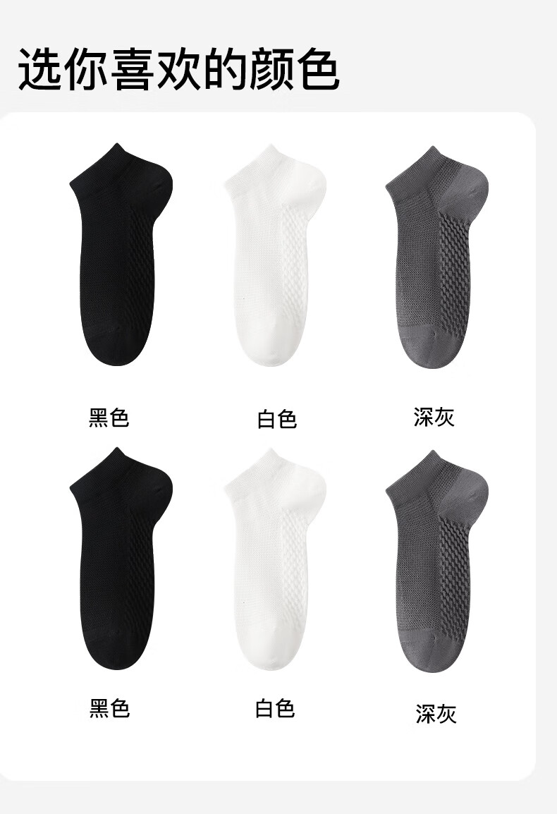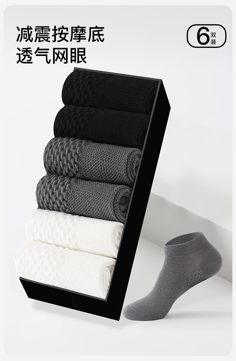 芬腾短袜男2025透气网眼6双装按摩底袜子男棉袜男士休闲运动袜款舒适 黑/黑/白/白/深灰/深灰 6双 均码