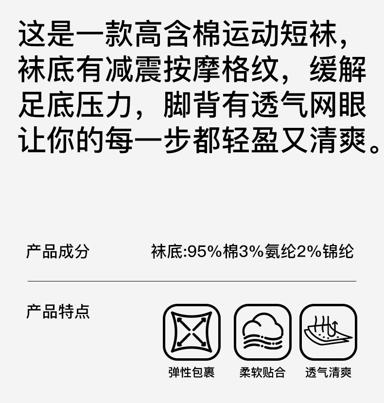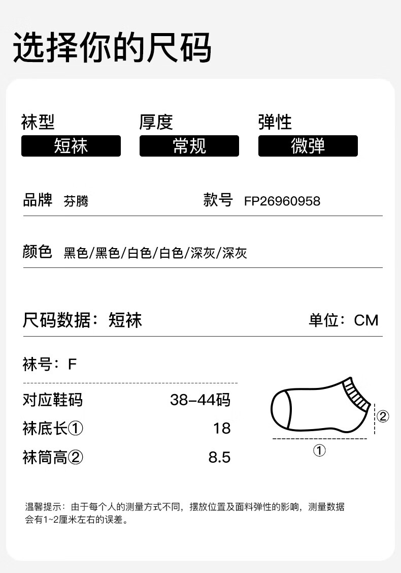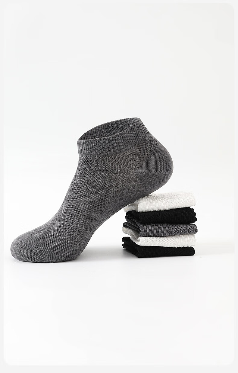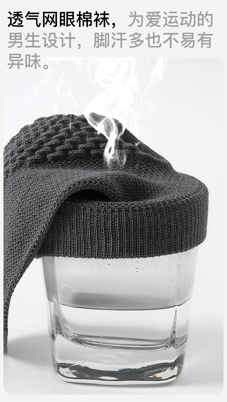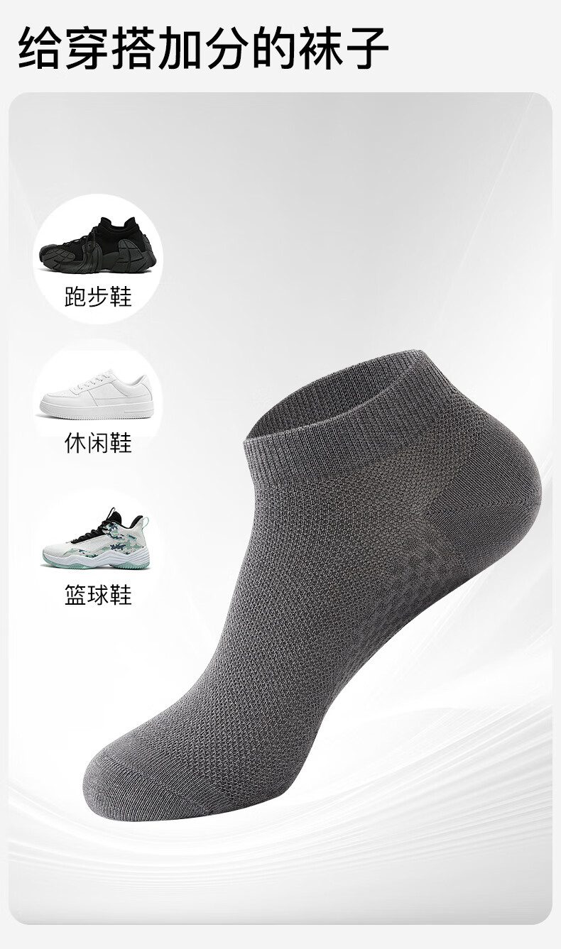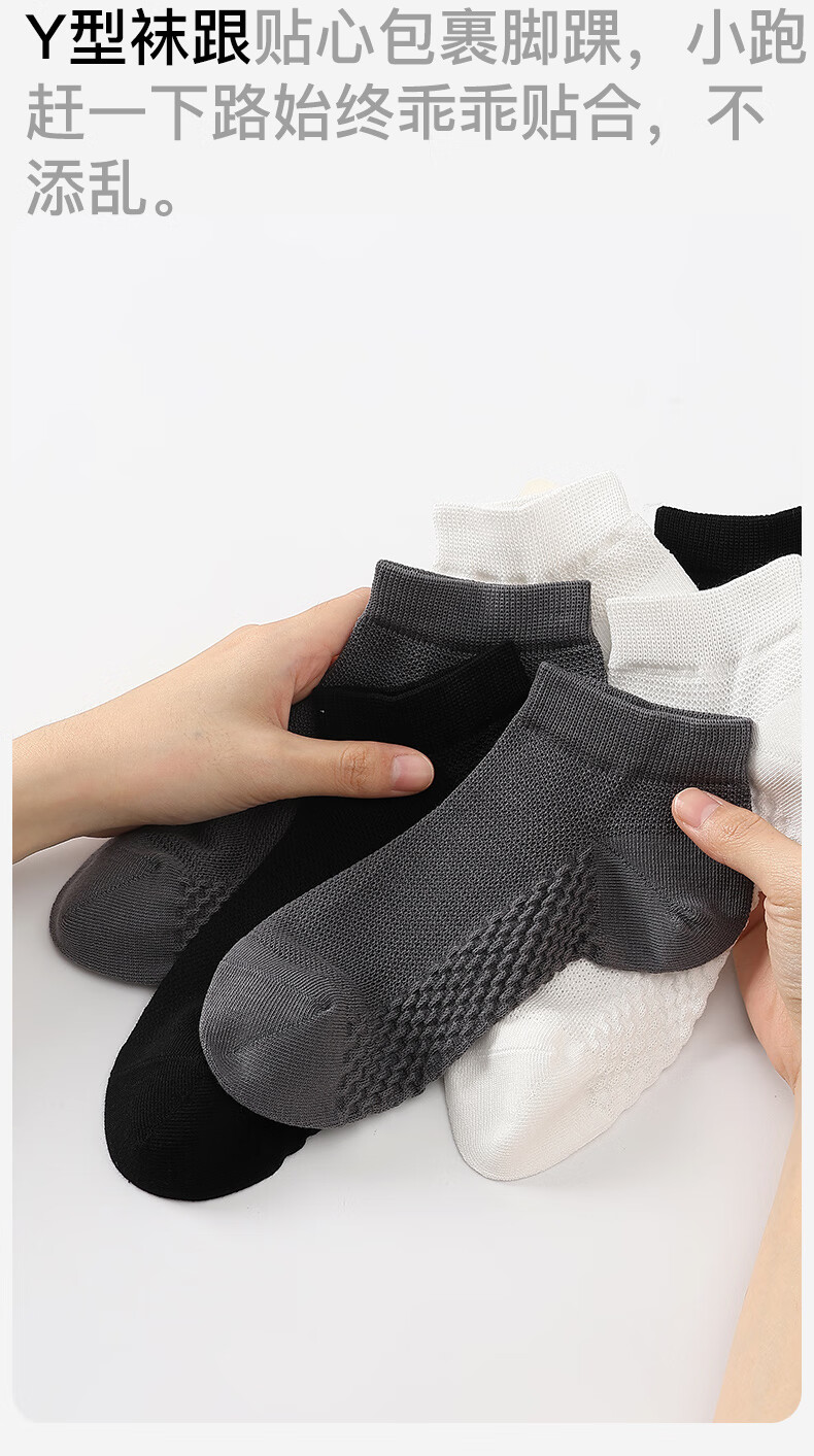 芬腾短袜男2025透气网眼6双装按摩底袜子男棉袜男士休闲运动袜款舒适 黑/黑/白/白/深灰/深灰 6双 均码