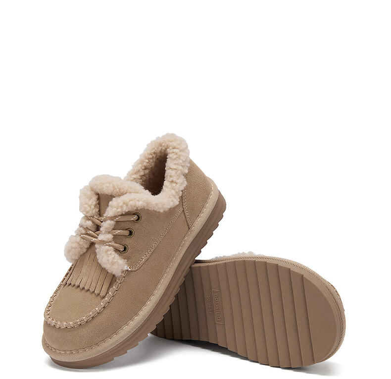热风雪地靴加绒毛毛鞋女士2025年冬季新款加厚保暖百搭纯色舒适棉鞋女 02棕色 35