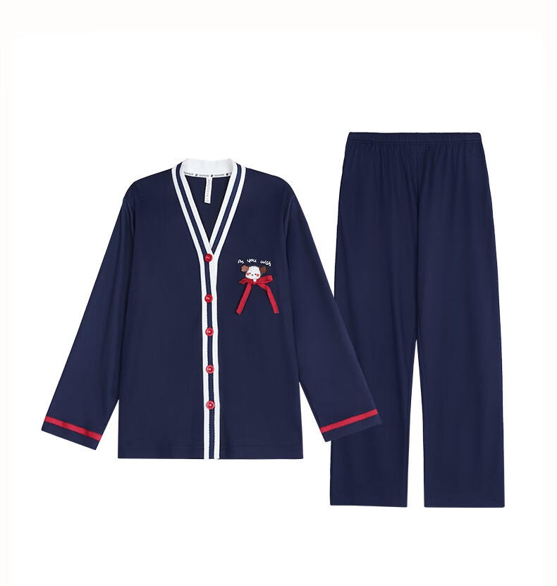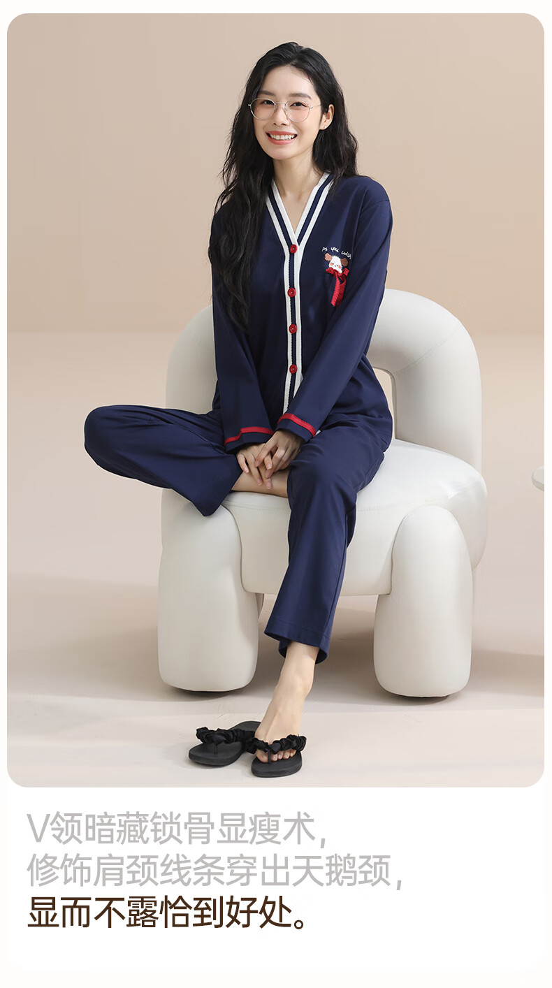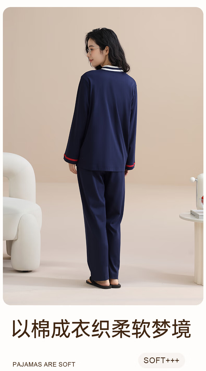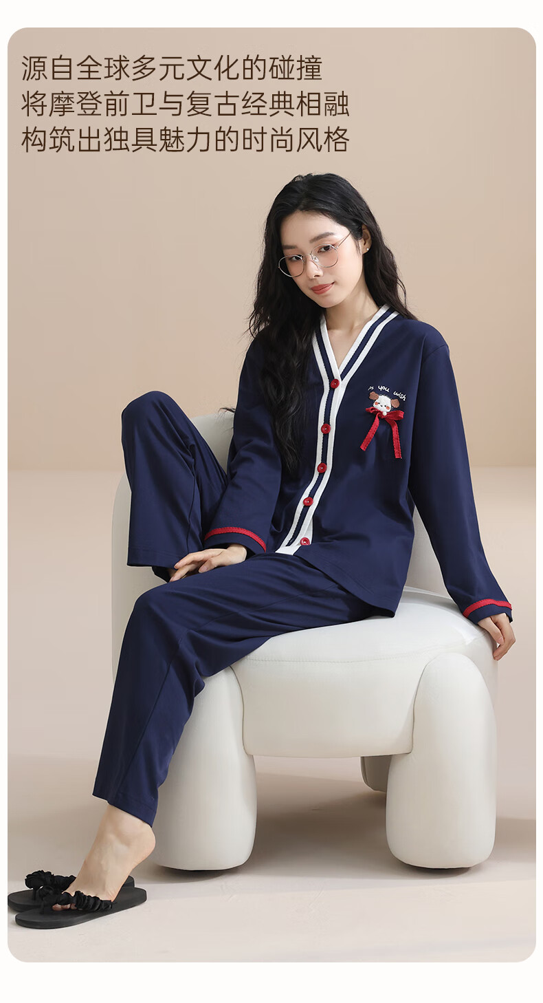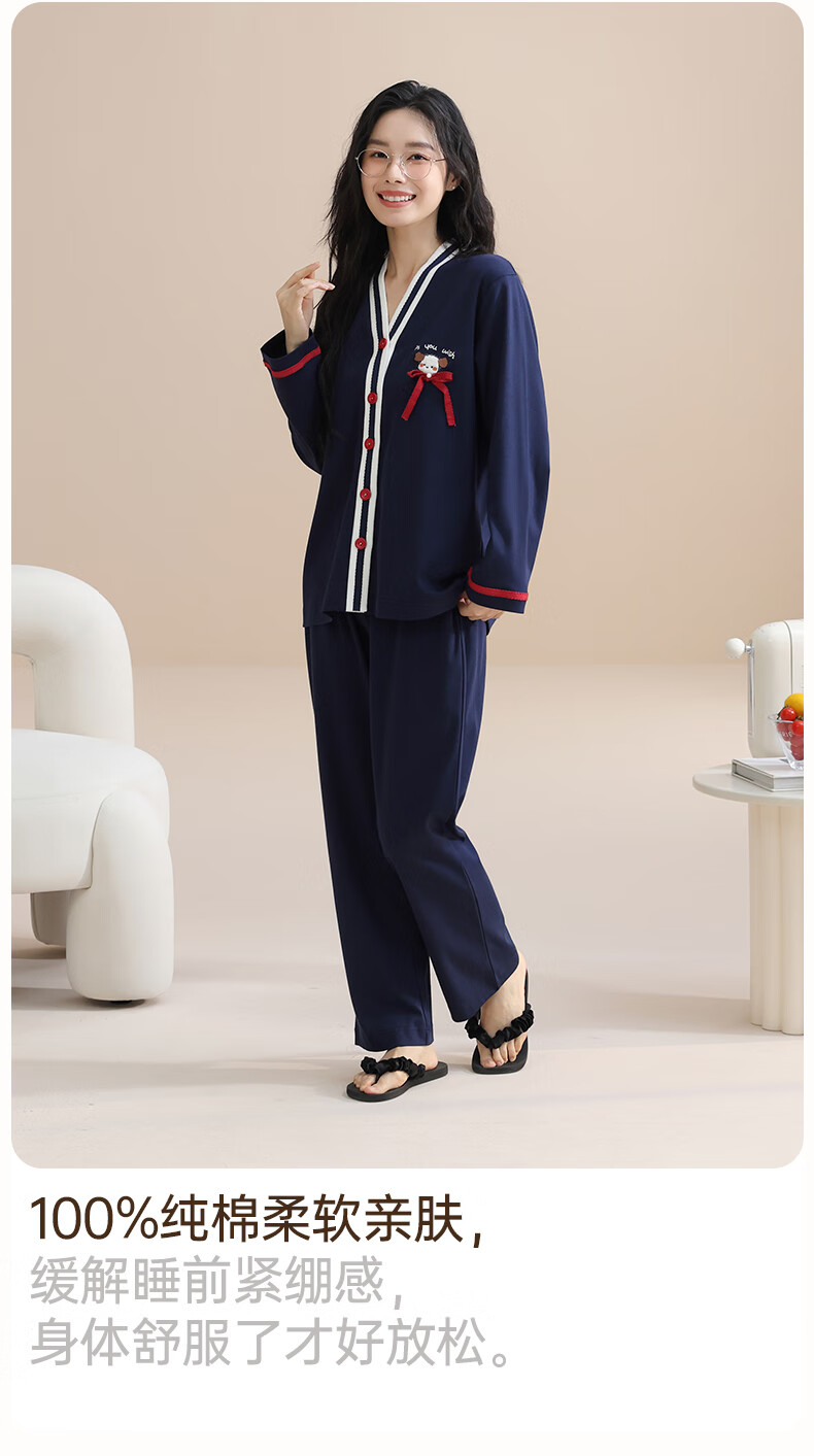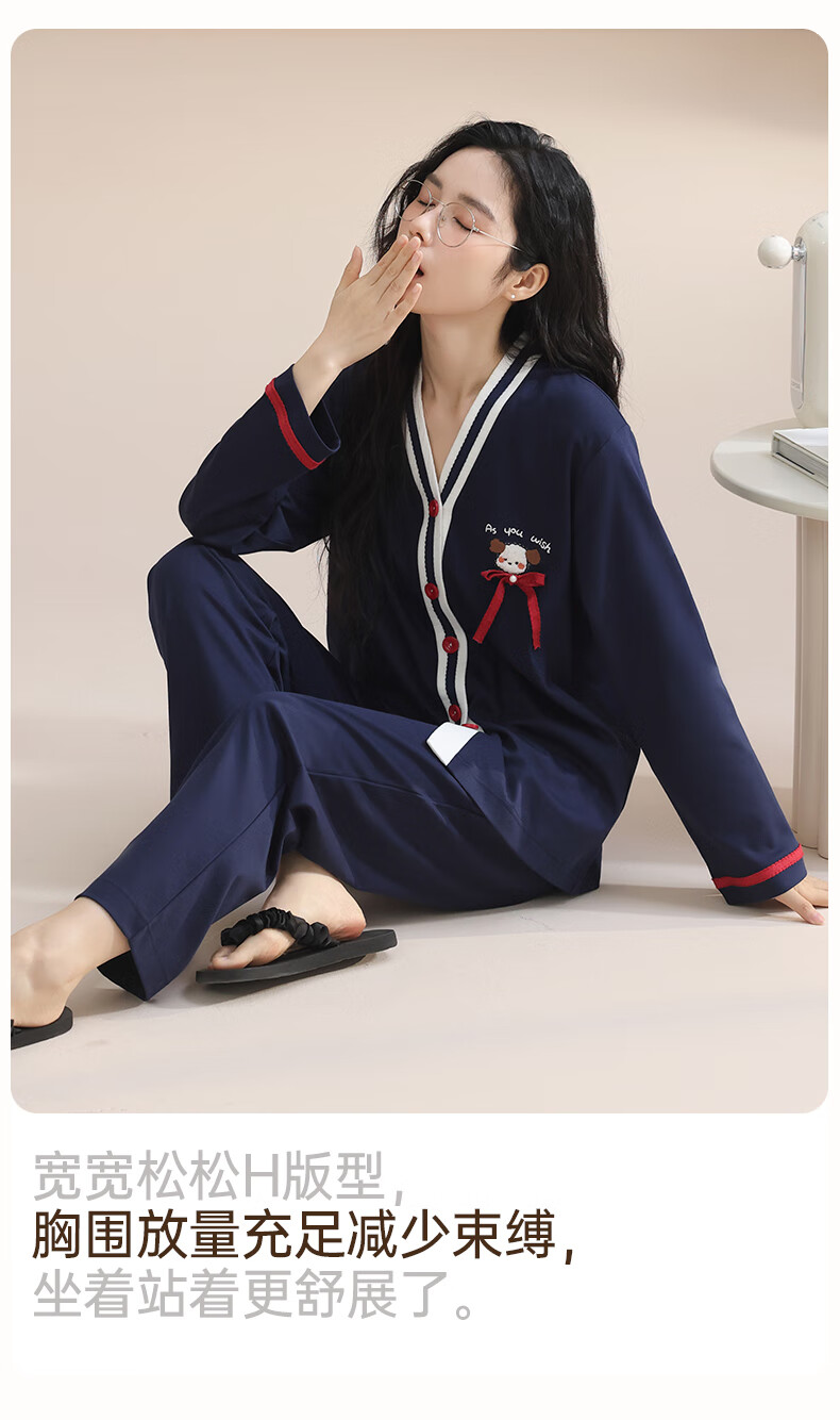玛伦萨100%纯棉睡衣女春秋季可外穿2025新款柔软透气长袖长裤女士家居服 黑色 M