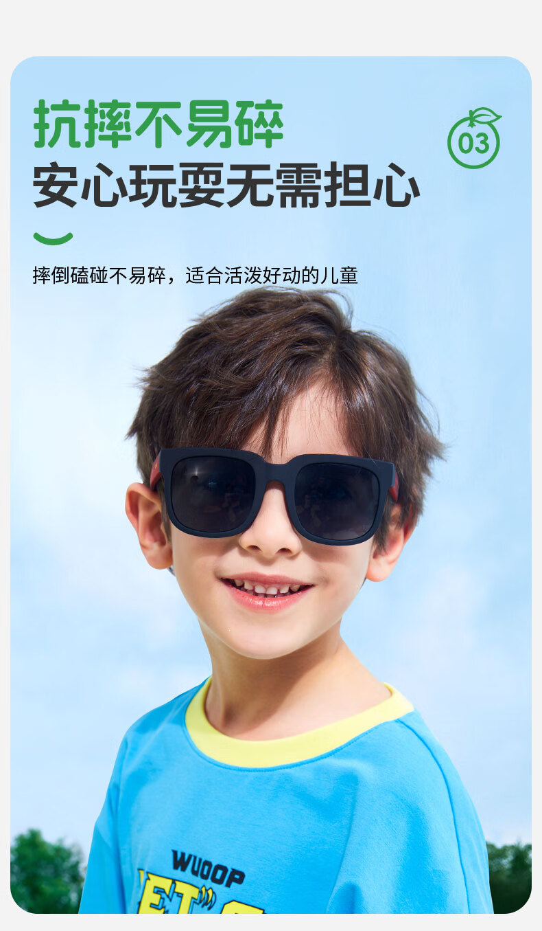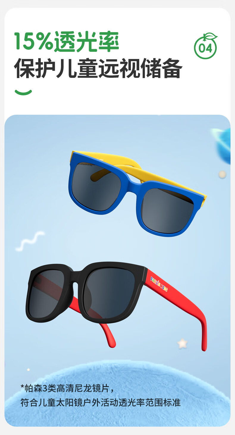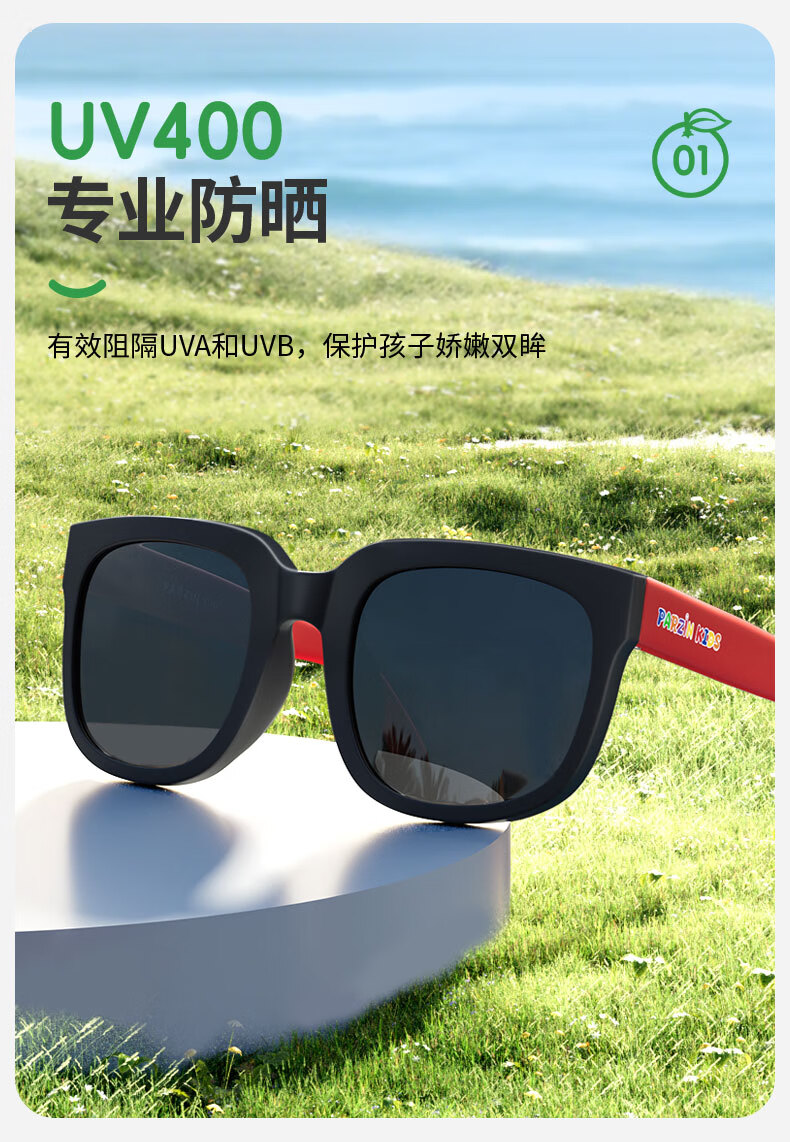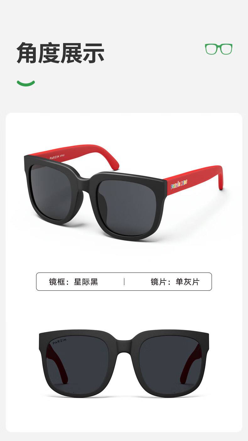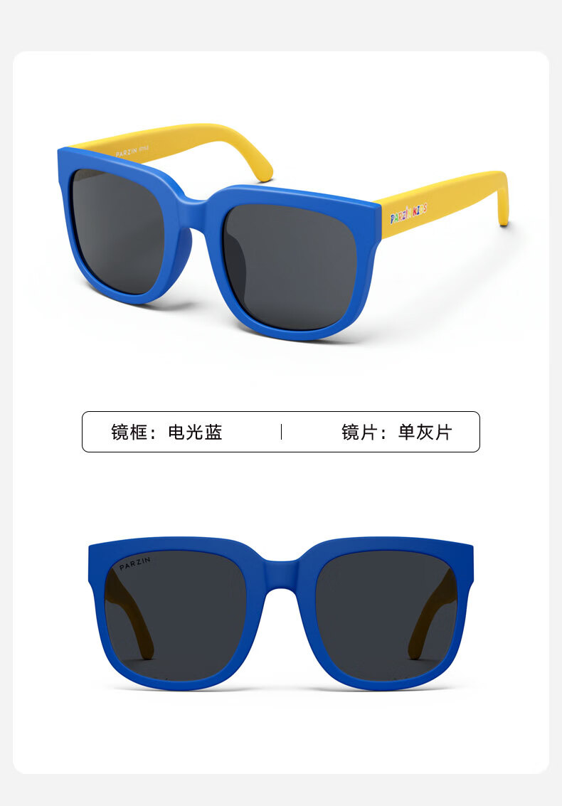 PARZIN KIDS儿童太阳镜 时尚方框男女童时尚防晒眼镜防紫外线墨镜6-10岁21030