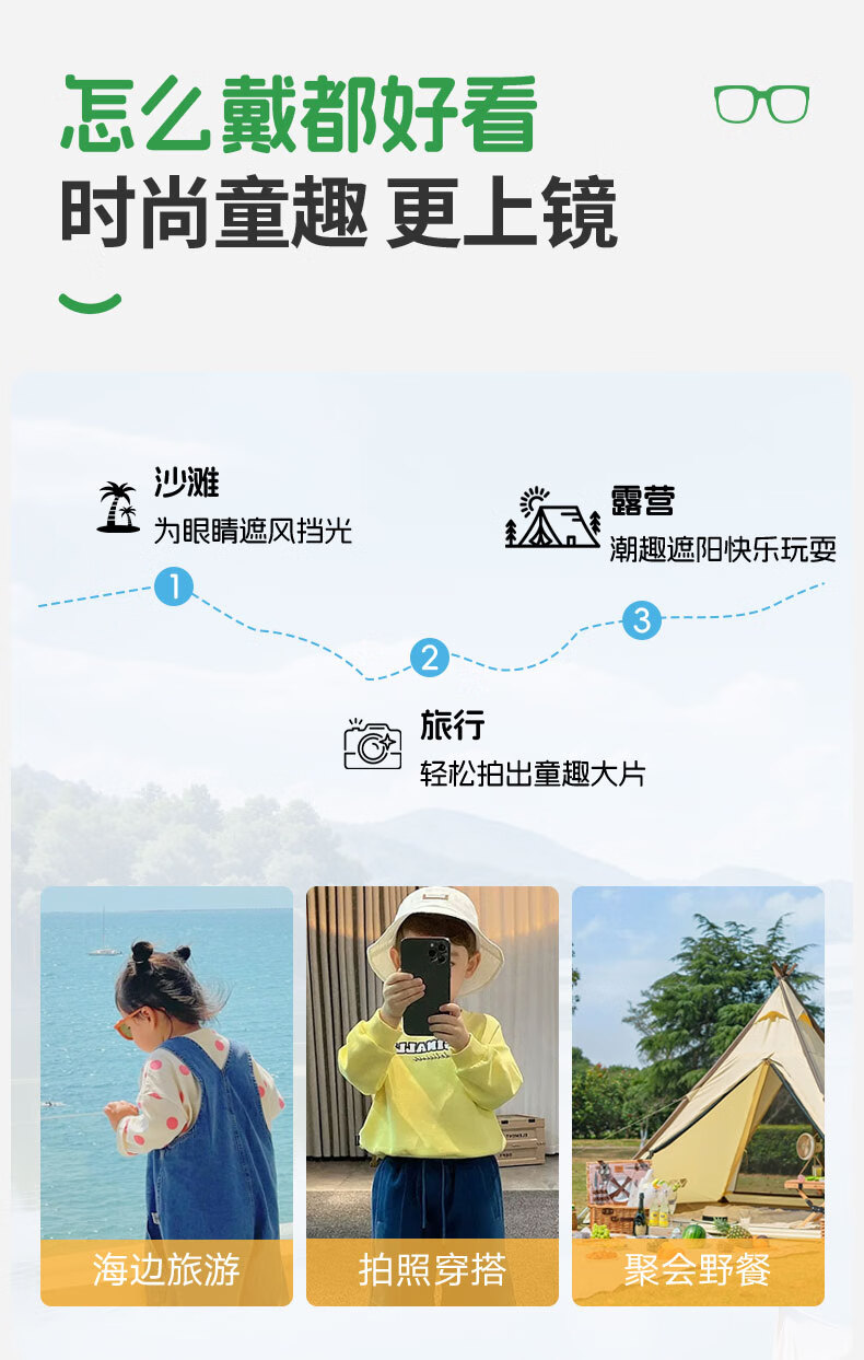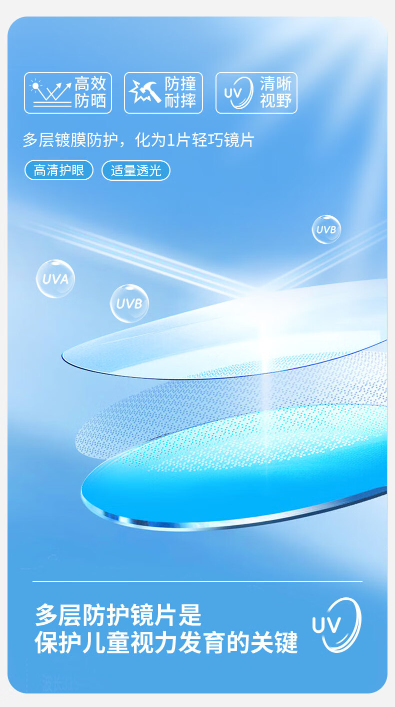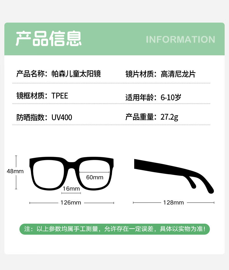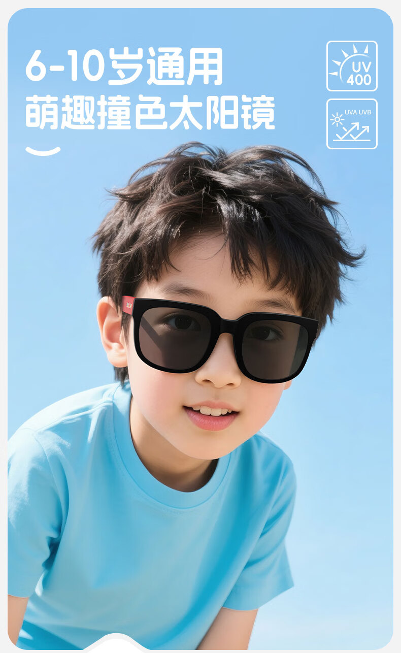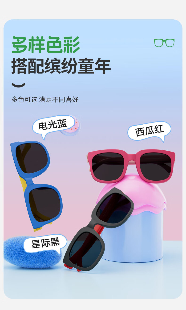 PARZIN KIDS儿童太阳镜 时尚方框男女童时尚防晒眼镜防紫外线墨镜6-10岁21030