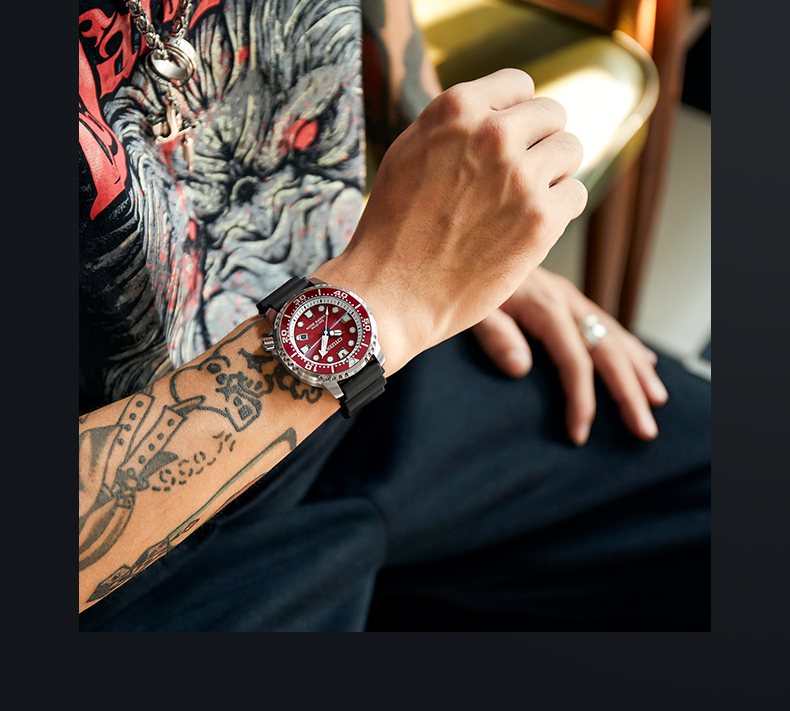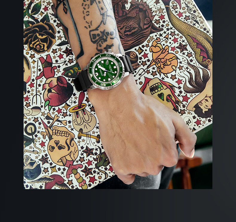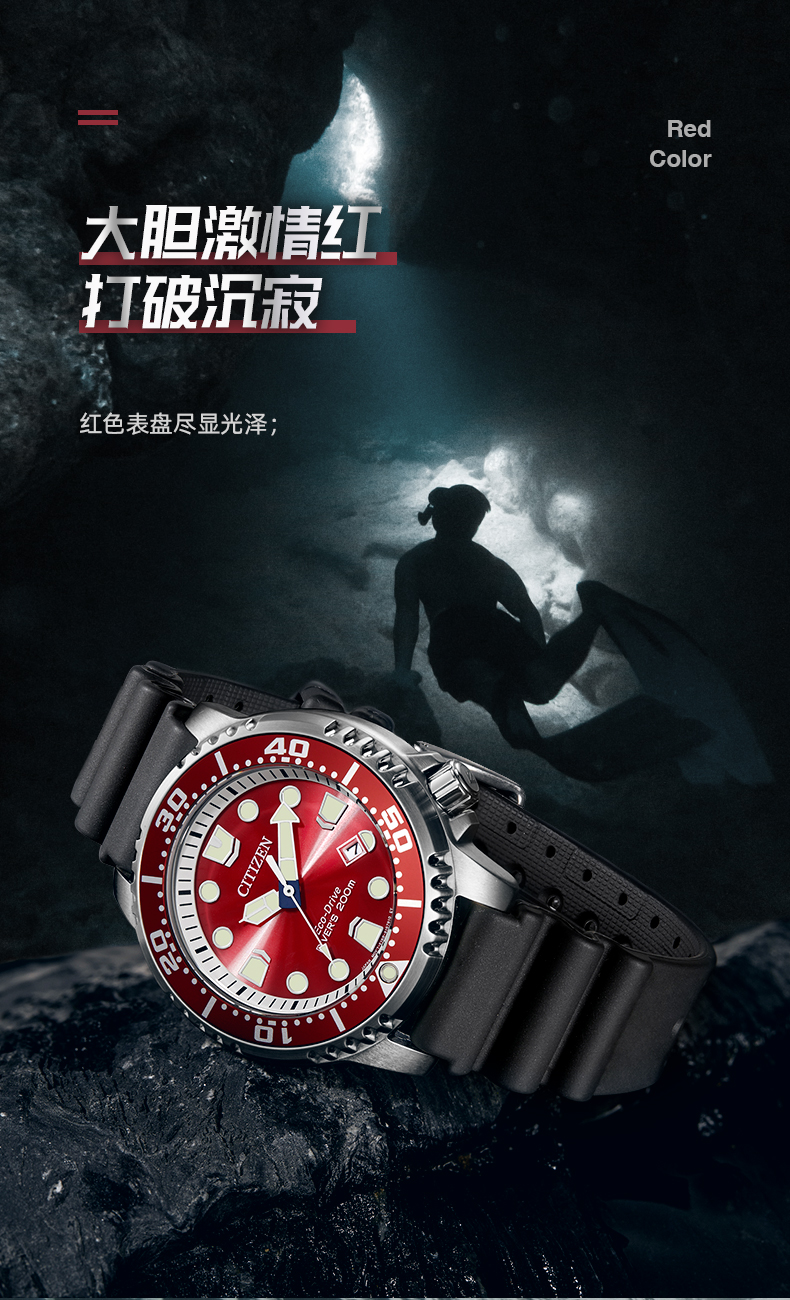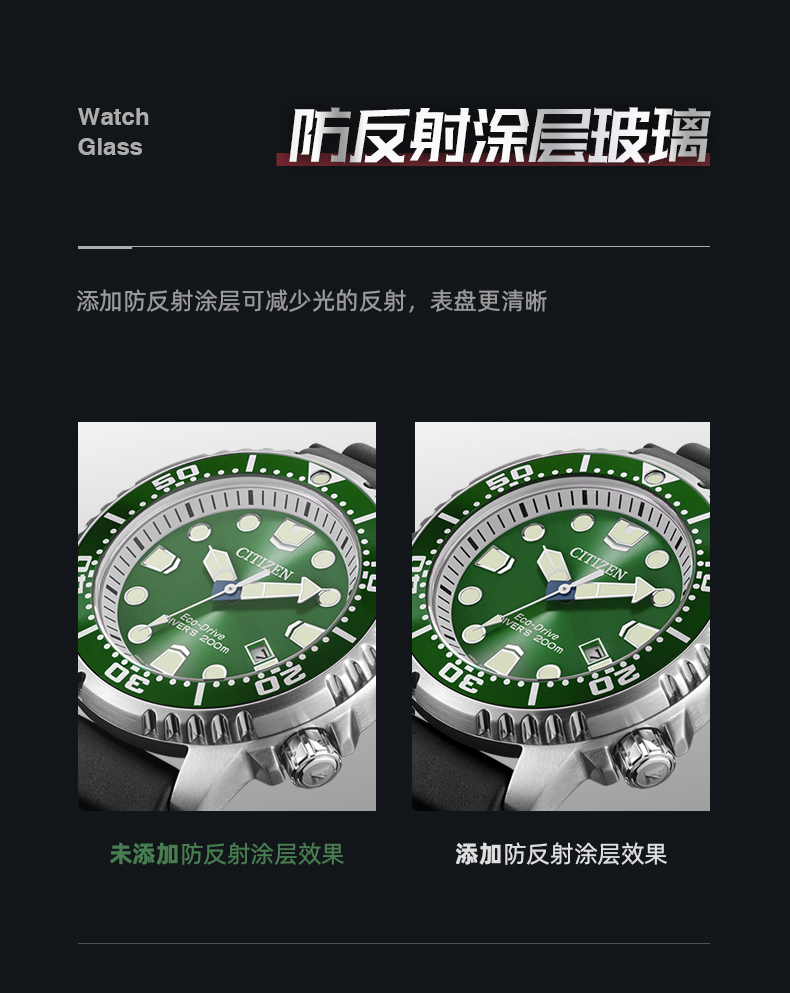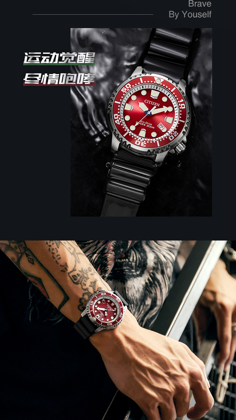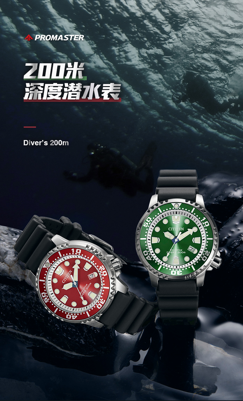 西铁城(CITIZEN)手表男日韩表绿水鬼光动能日显PU带运动送礼物男友BN0158-18X