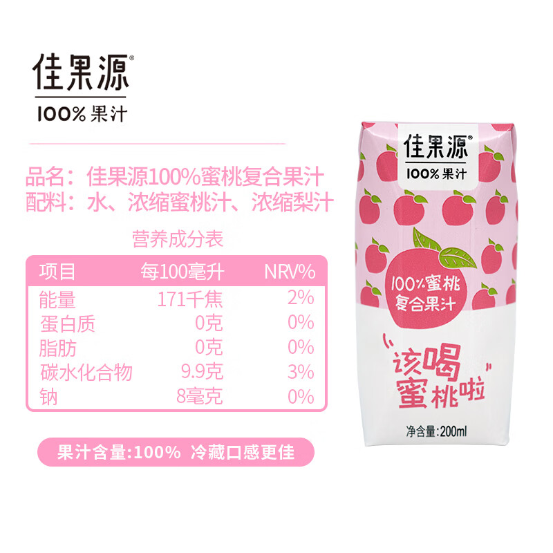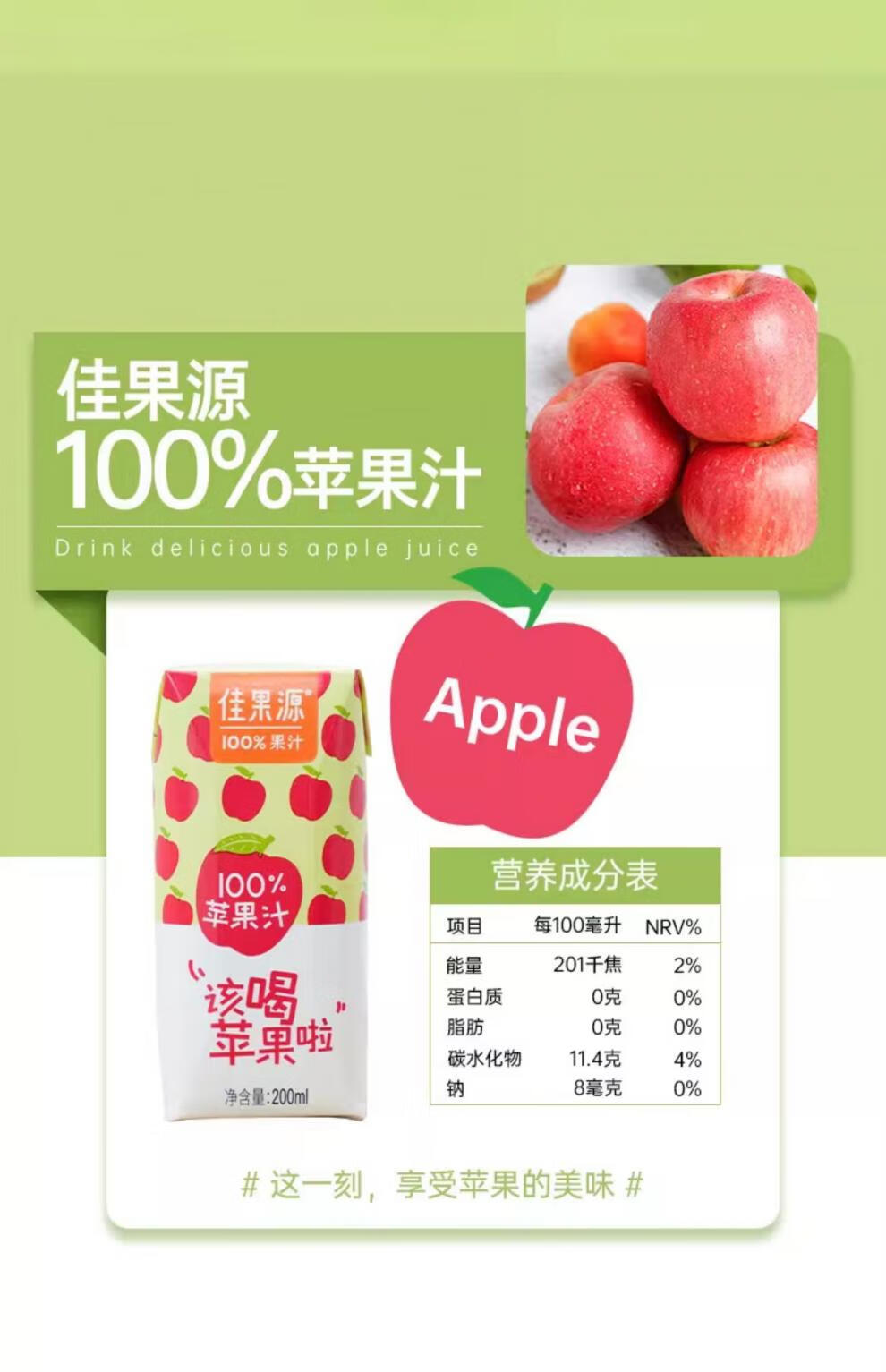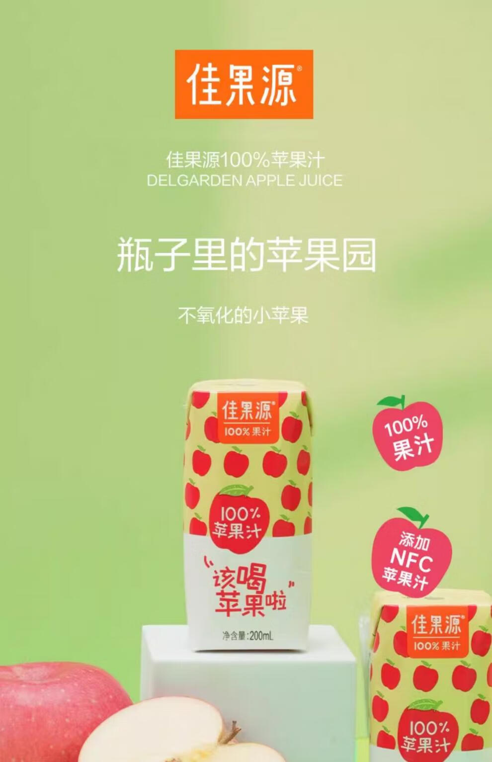 佳果源橙汁200ml24盒饮料整箱蜜桃复合果汁苹果汁零脂肪饮品 整箱特惠苹果汁200ml*24盒