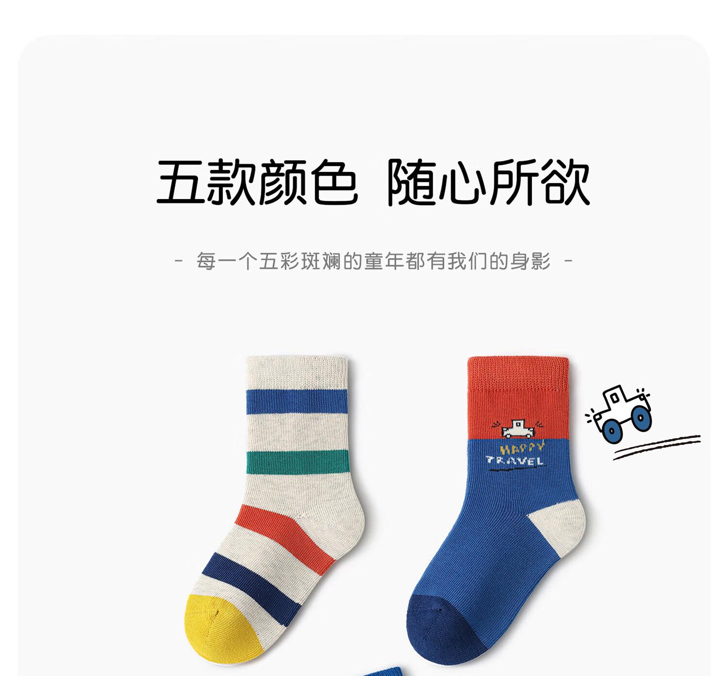 斑比儿童袜子春秋薄款中大童棉袜男孩宝宝秋冬无骨中筒袜子 BB2356 秋冬款儿童袜子 5双 3-5岁 建议脚码21-26码【16-18】