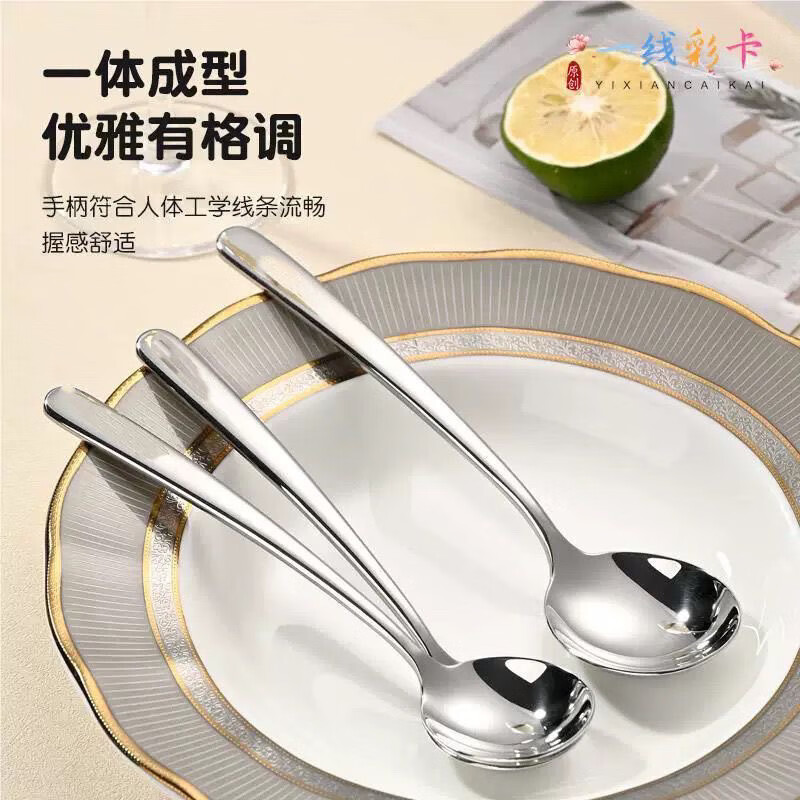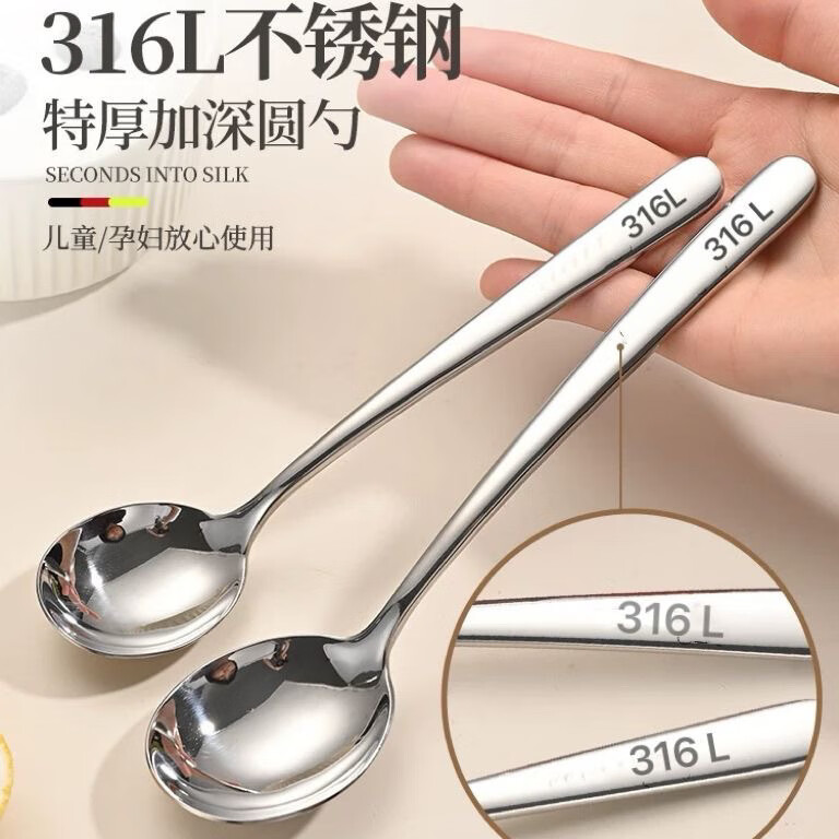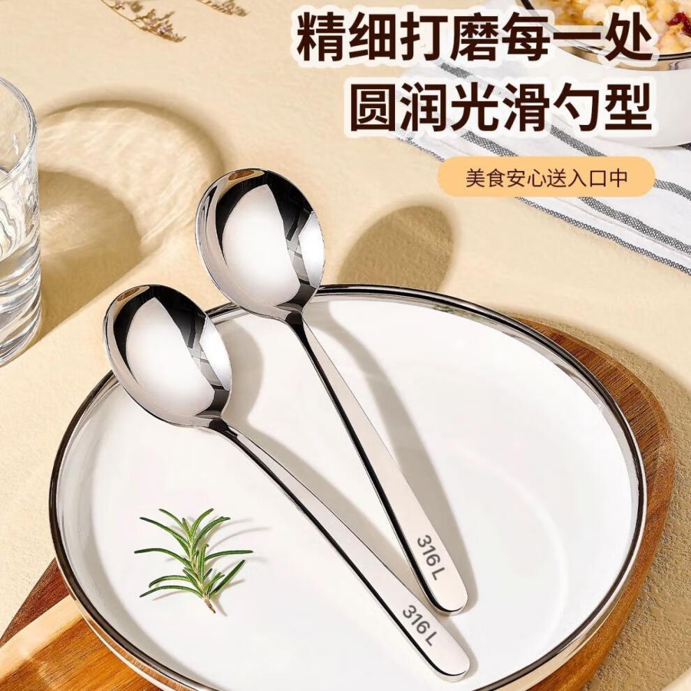 卡洛乐316不锈钢勺子食品级长柄圆勺西餐勺汤勺汤匙调羹吃饭勺 316L【认准德国进口】拖圆勺 【特厚材质】-【大号1支】