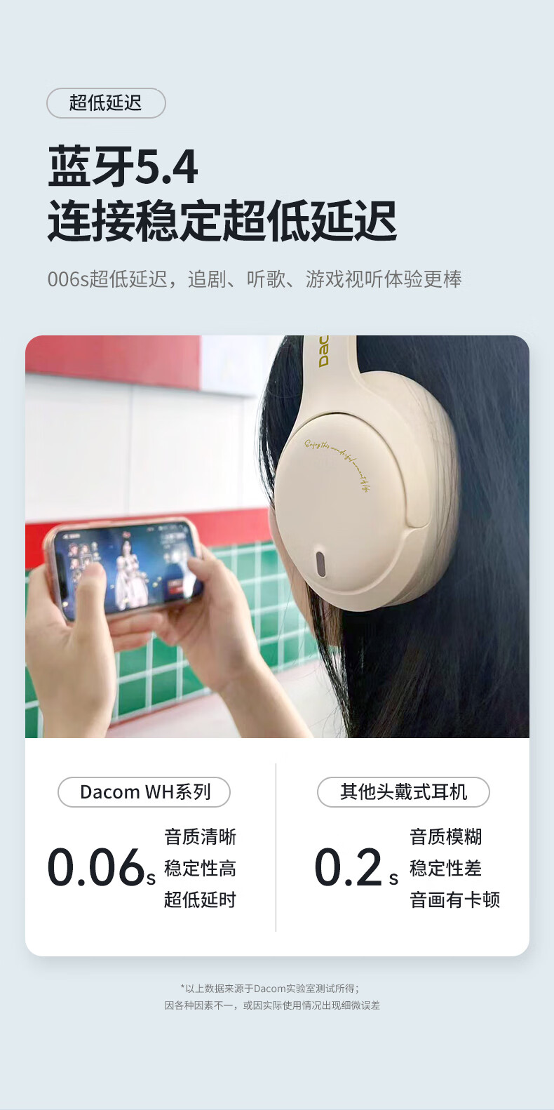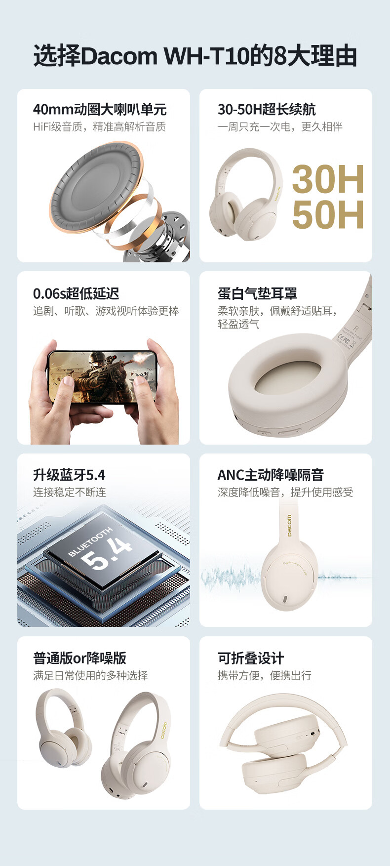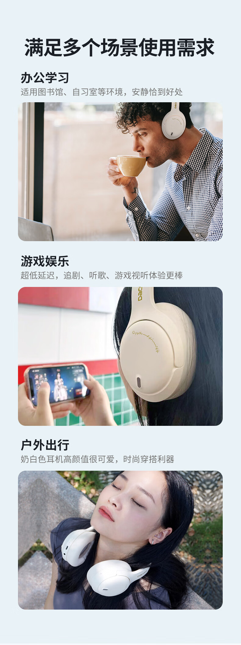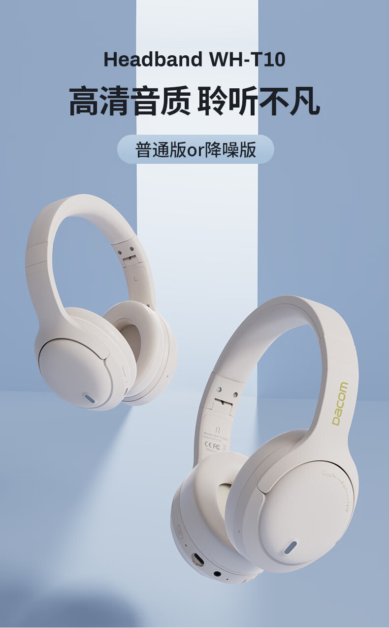 dacom WH-T10【2024超级新品】头戴式蓝牙耳机无线降噪耳麦电竞游戏低延迟高颜值男女款两用适用索尼