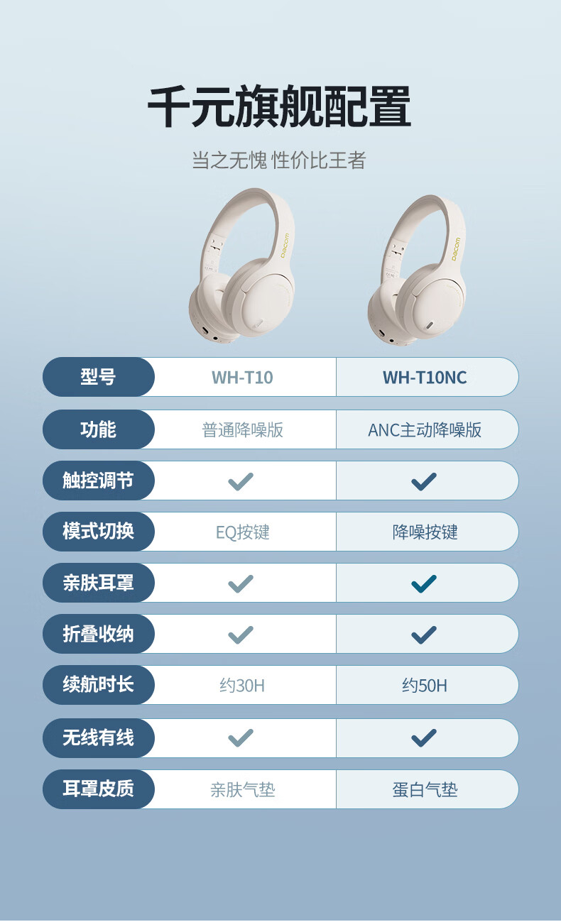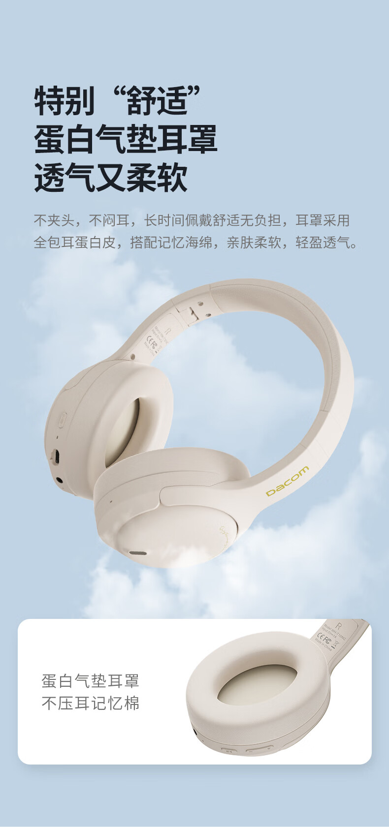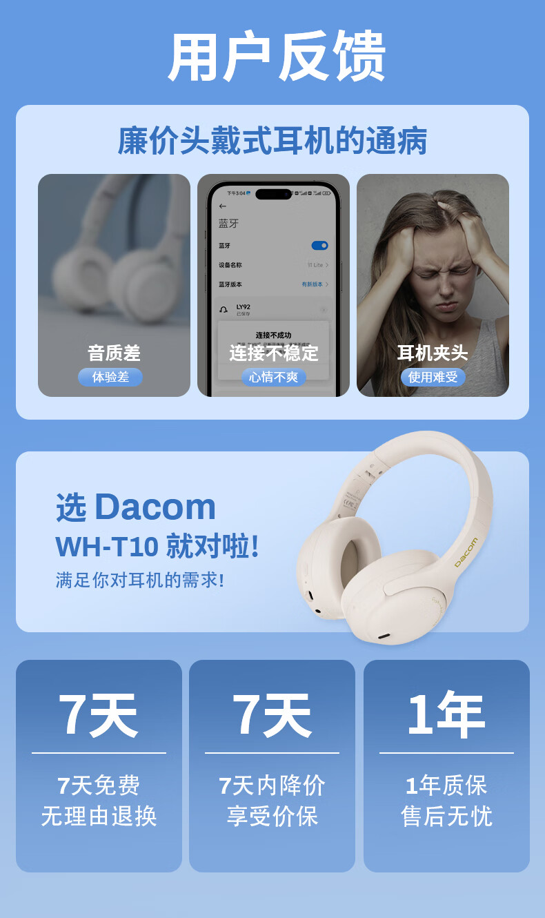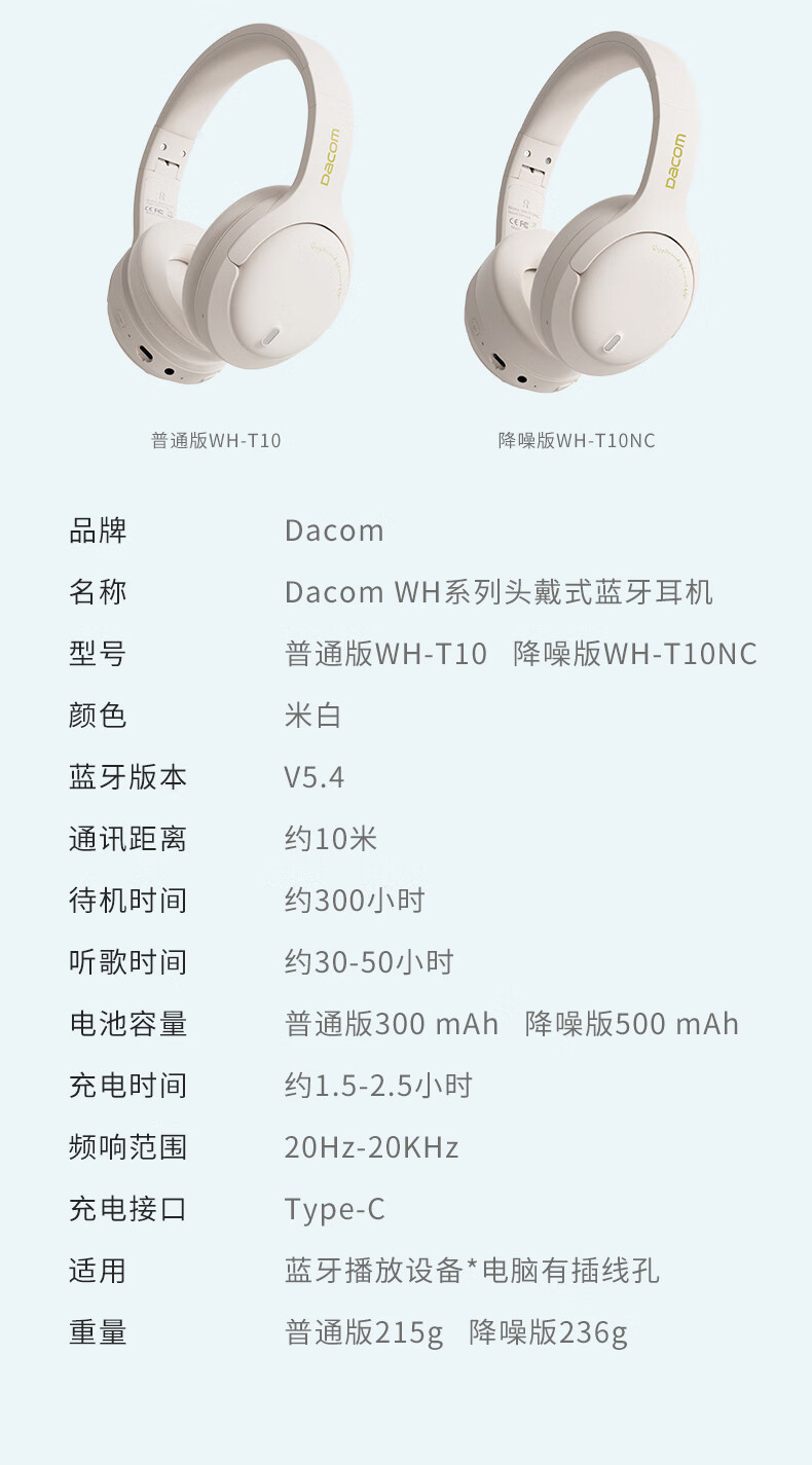 dacom WH-T10【2024超级新品】头戴式蓝牙耳机无线降噪耳麦电竞游戏低延迟高颜值男女款两用适用索尼