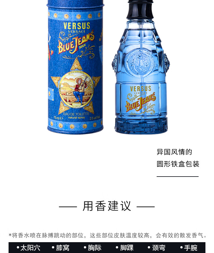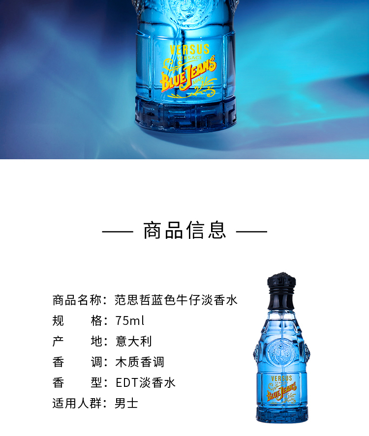 范思哲(VERSACE)蓝色牛仔可乐男士淡香水75ml 木质香调 轻奢生日礼物女送礼自营