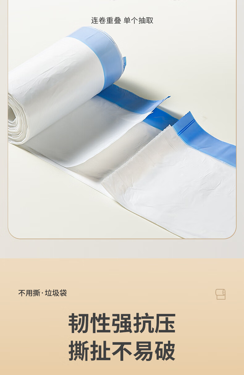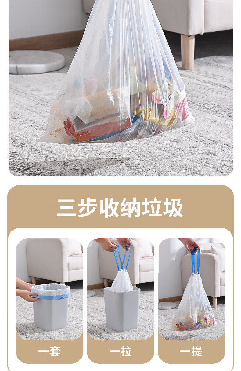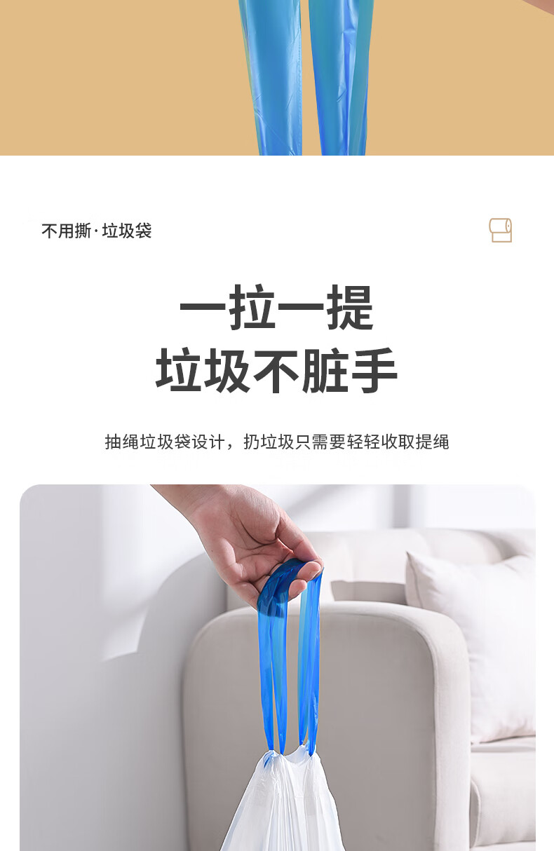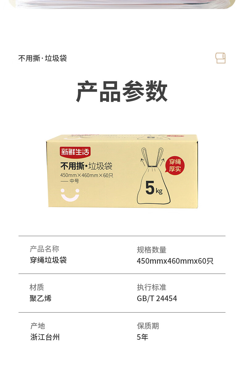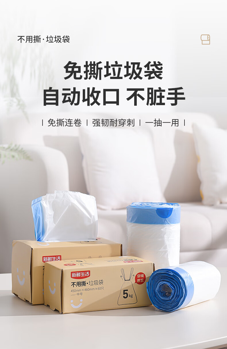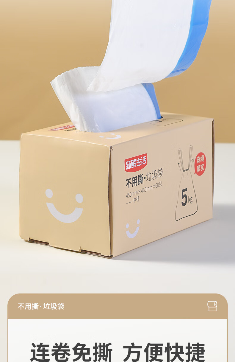 新鲜生活免撕垃圾袋450mm*460mm*60只穿绳中号加厚厨房办公室宿舍家用塑料
