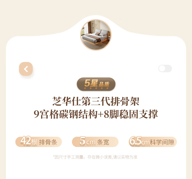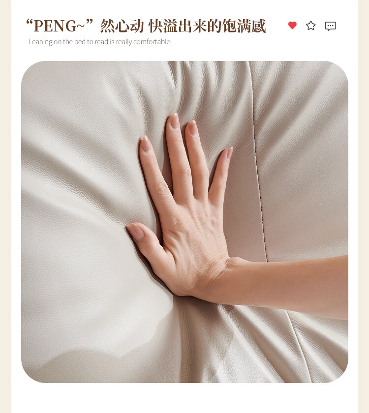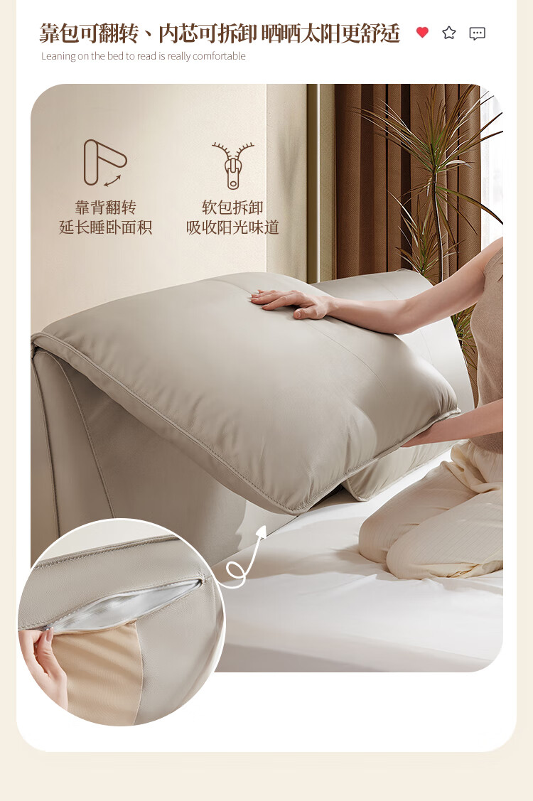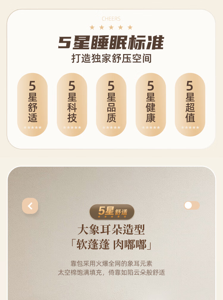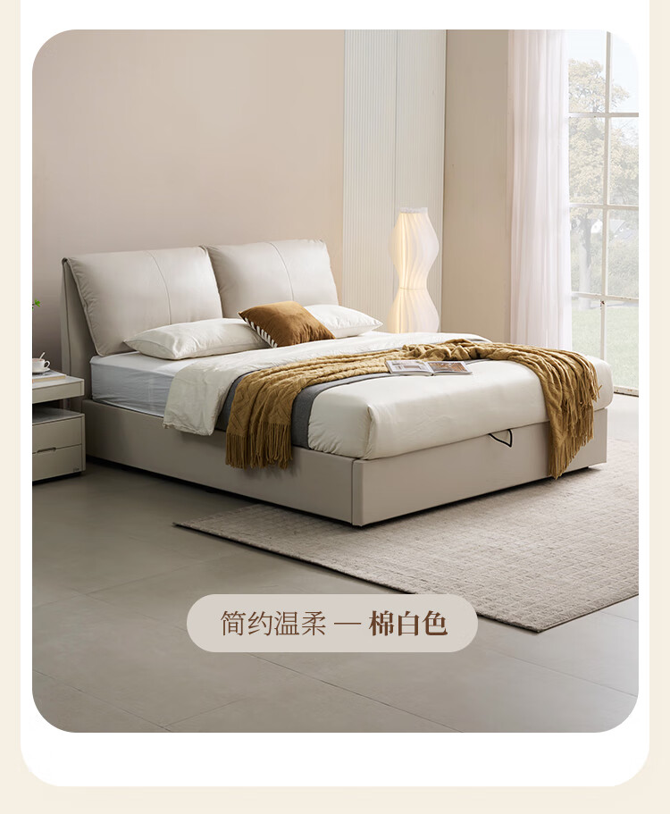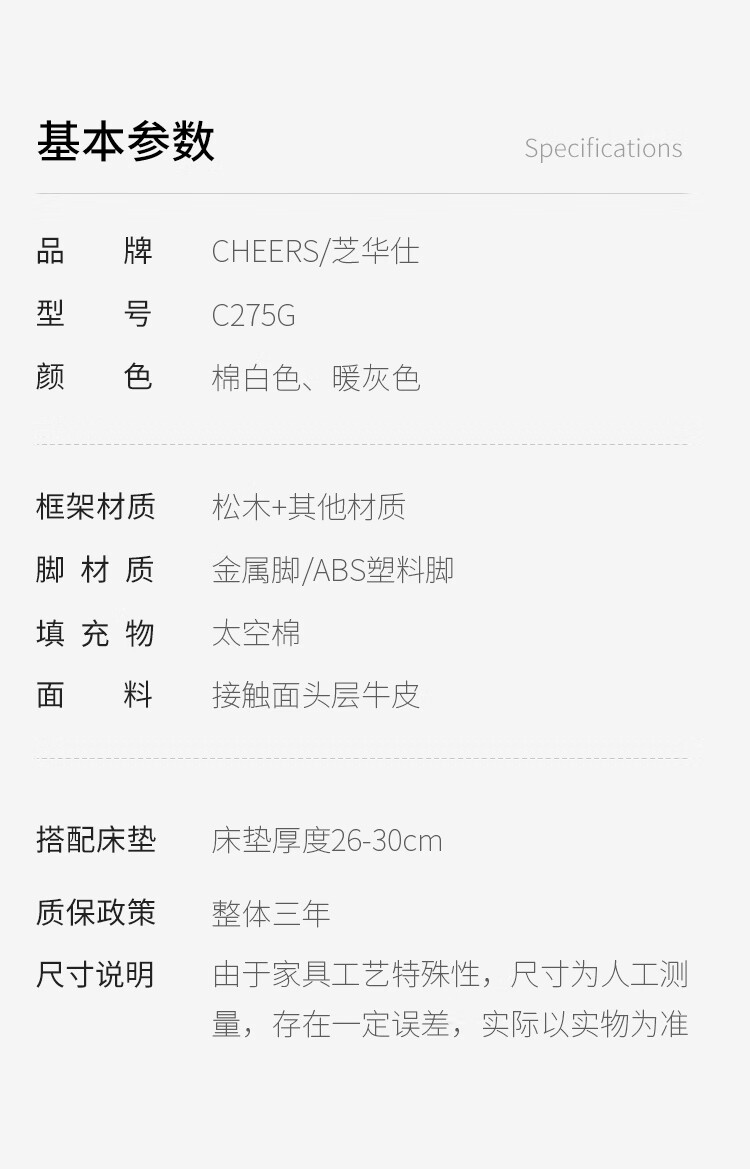 芝华仕(CHEERS)五星皮床现代奶油风双人床主卧室大象耳朵软包带床垫C275G白1.8m